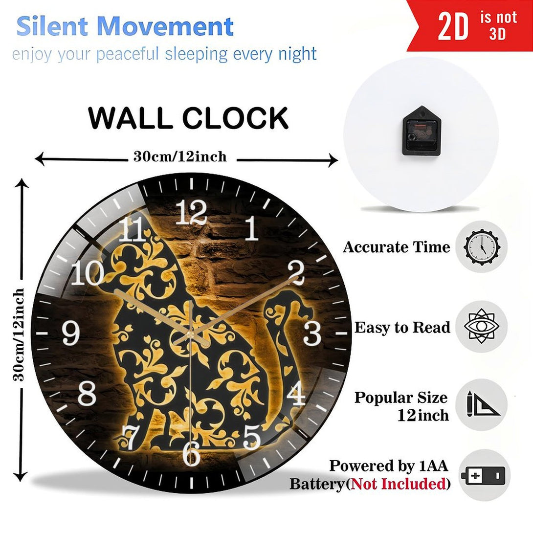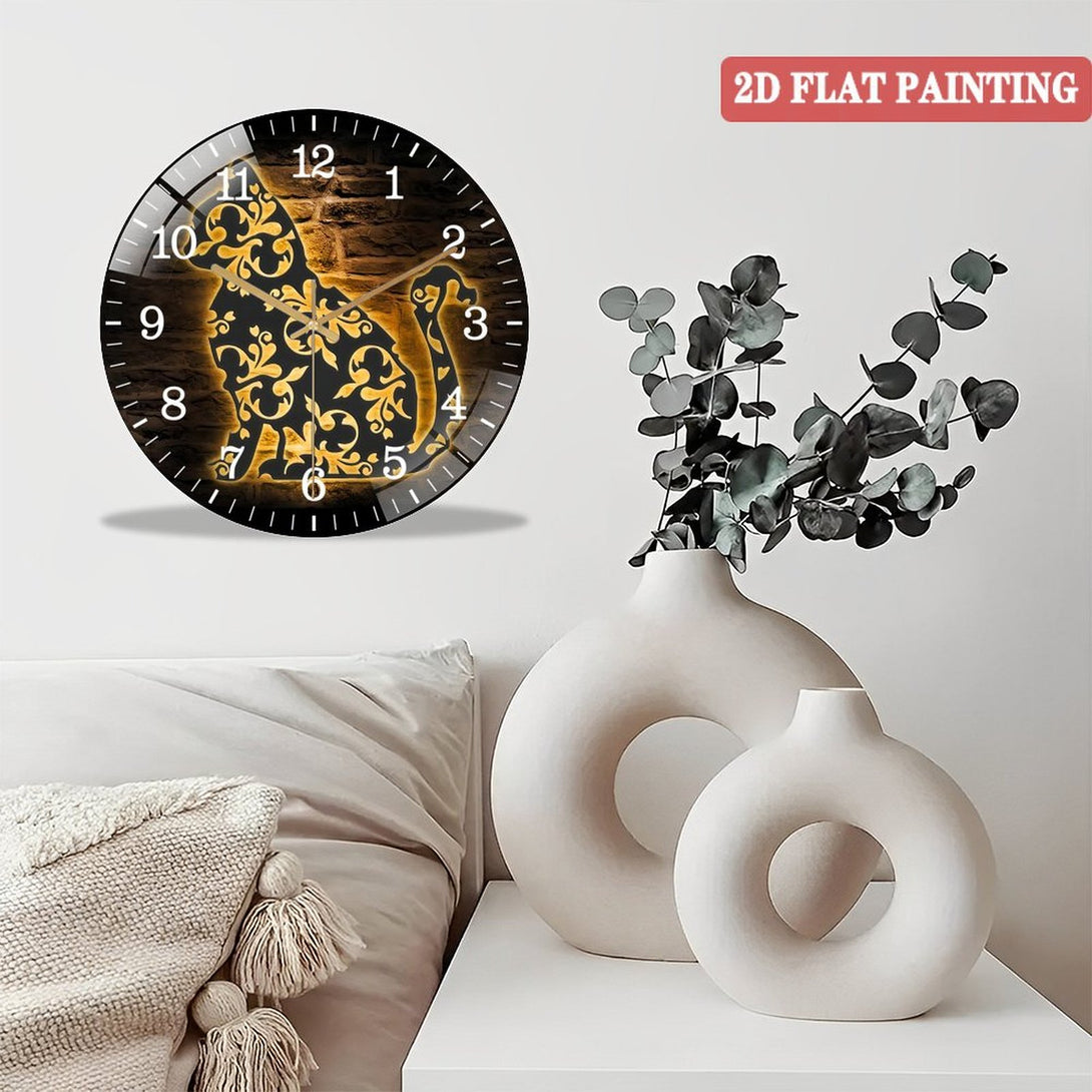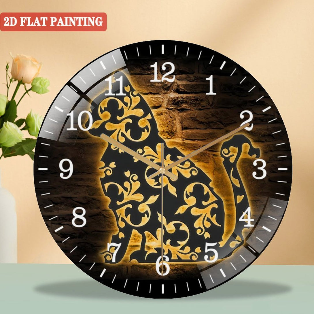 Mandala Floral Cat Glass Wall Clocks, Floral Kitten Glass Wall Clocks, Home Decor Cat Lover Kid Nursery Decoration Hanging Door Birthday Xmas