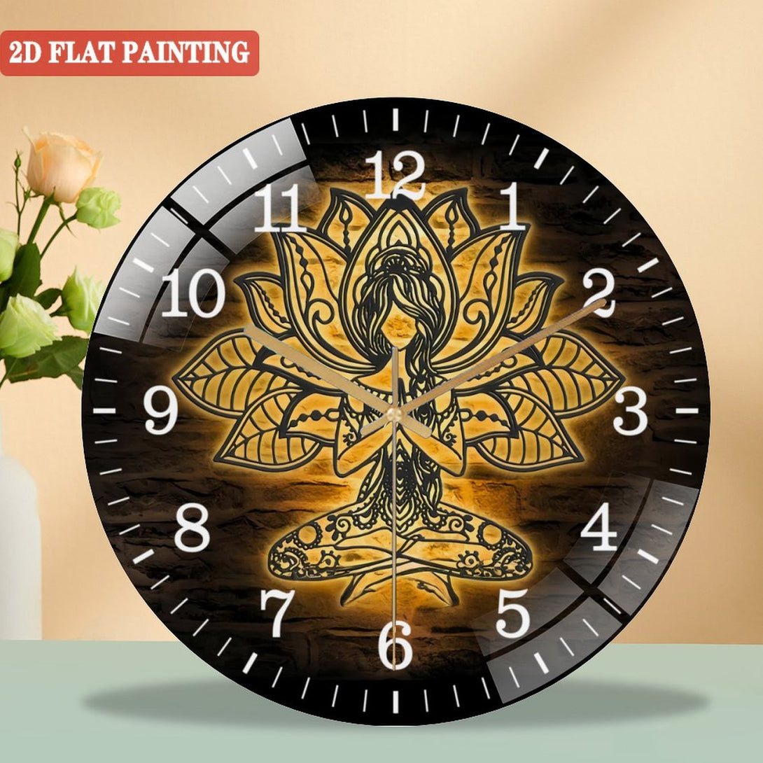 Mandala Yoga Girl Glass Wall Clocks, Yoga Glass Wall Clocks,Home Decor Yoga Room Decoration Hanging Door Xmas Gift