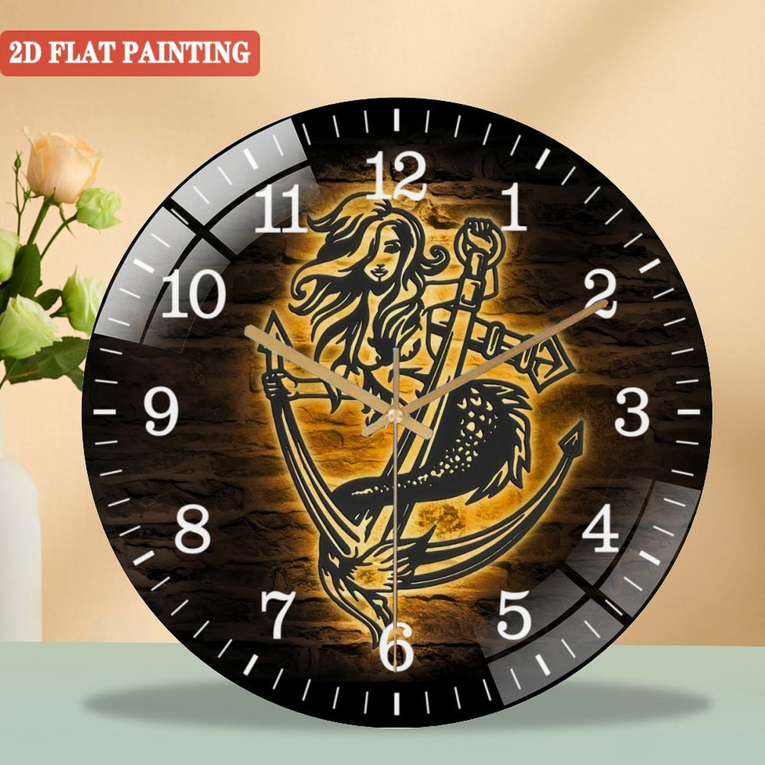 Mermaid Girl Fish Tail Boat Anchor Glass Wall Clocks,Mermaid Glass Wall Clocks,Home Decor Kid Nursery Decoration Xmas Birthday Housewarming