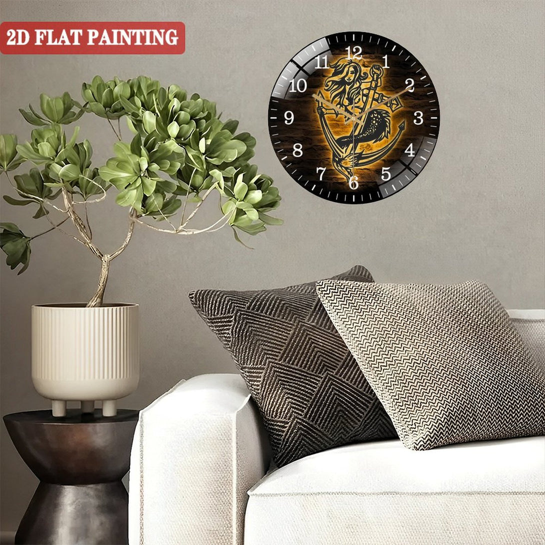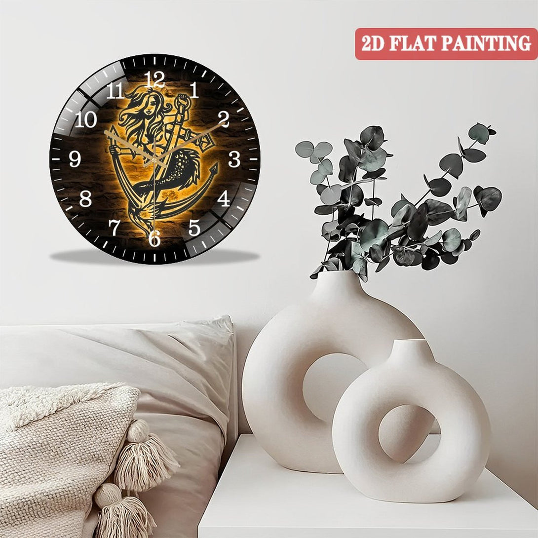 Decor Wall Clocks: Mermaid Girl Fish Tail Boat Anchor Glass Wall Clocks,Mermaid Glass Wall Clocks,Home Decor Kid Nursery Decoration Xmas Birthday Housewarming Style 12×12inch(30×30cm)
