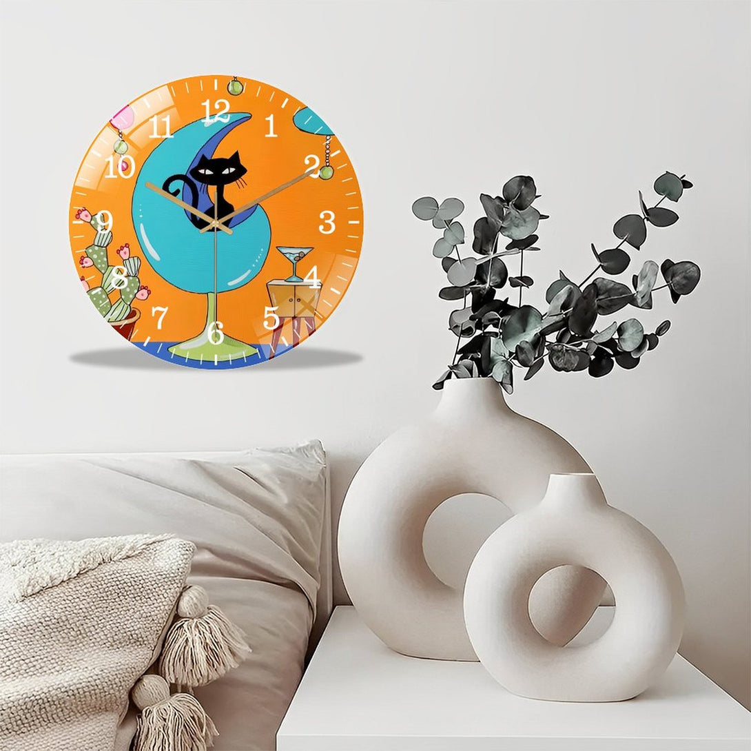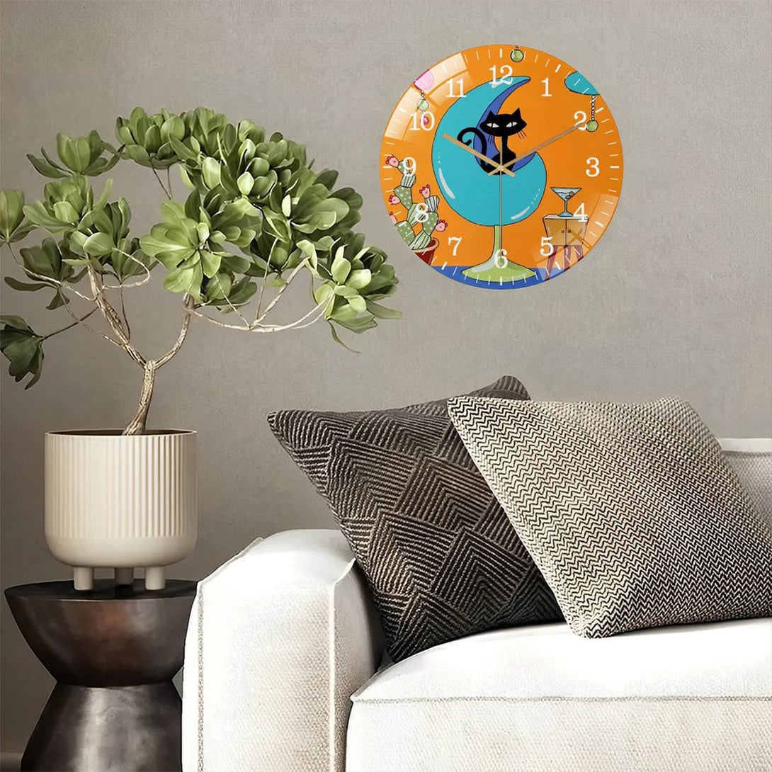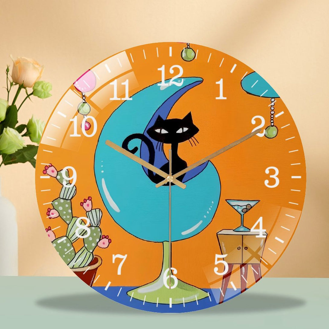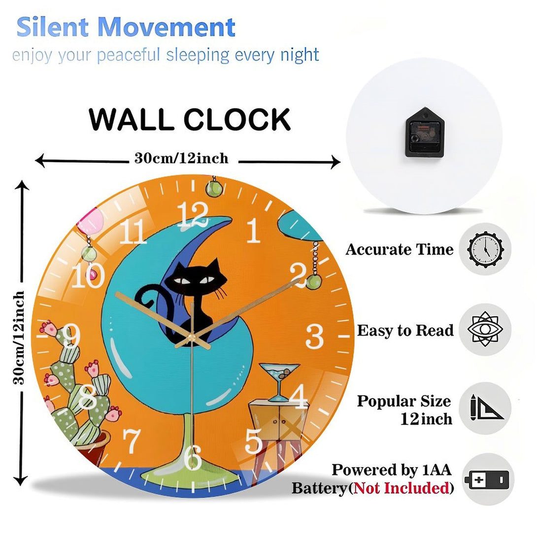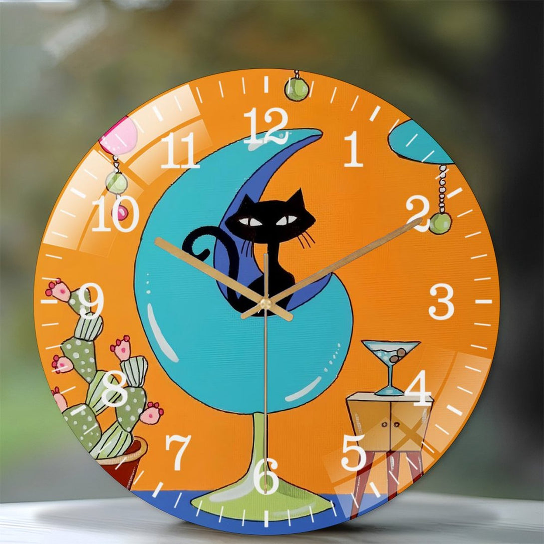 Mid Century Modern Cat Black Cat Glass Wall Clock, Atomic Kitty Art Wall Clock, Art for Cat Lovers Decor Wall Clock for Homes, Bars, Offices, Man Caves, Garages, And Living Rooms. Als,12×12inch(30×30cm)