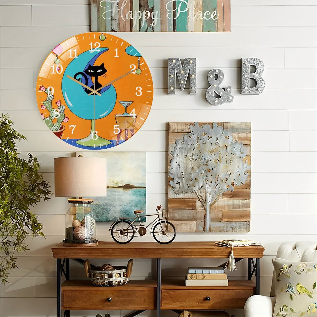 Decor Wall Clocks: Mid Century Modern Cat Black Cat Glass Wall Clock, Atomic Kitty Art Wall Clock, Art for Cat Lovers Decor Wall Clock for Homes, Bars, Offices, Man Caves, Garages, And Living Rooms.