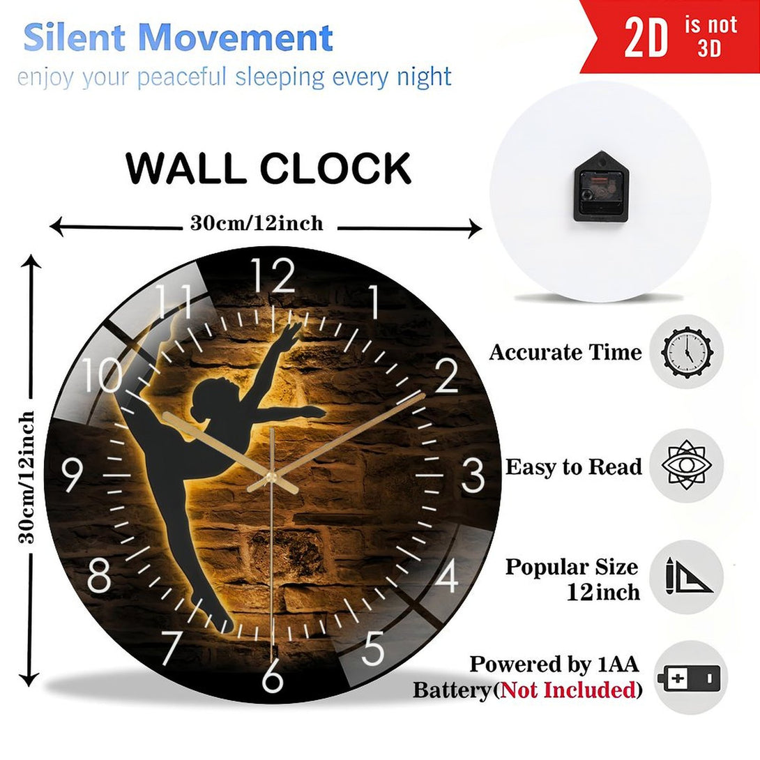 Decor Wall Clocks: Modern Dance Glass Wall Clocks, Girl Ballet Dancing Glass Wall Clocks, Home Decor Dancer Kids Nursery Decoration Birthday Style 12×12inch(30×30cm)