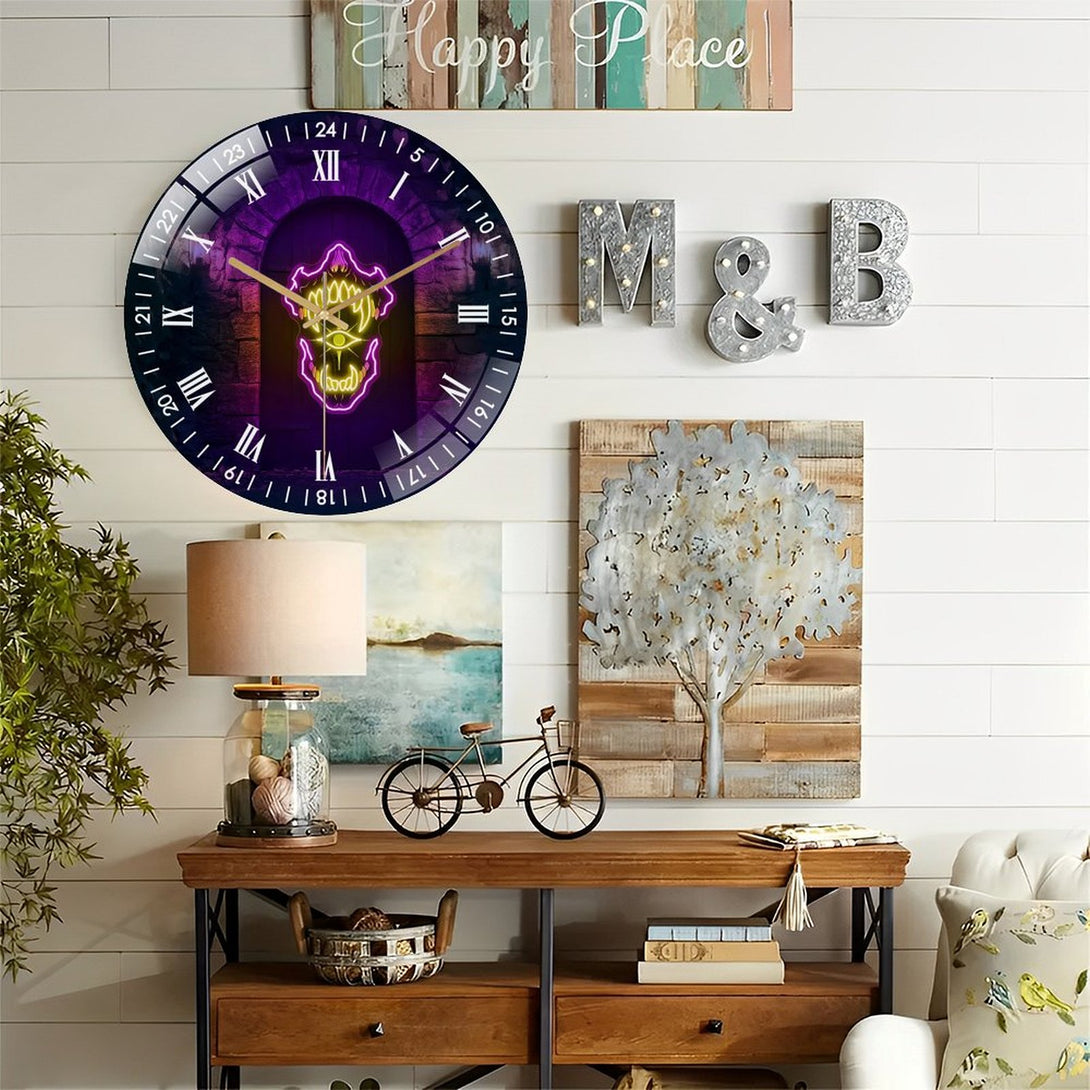 Decor Wall Clocks: Monster Mouth Glass Wall Clock,Halloween Haunted House Game Room Decor Wall Clock, for Homes, Bars, Offices, Man Caves, Garages, And Living Rooms. Hallo-ween Gift .Also Makes A Grea