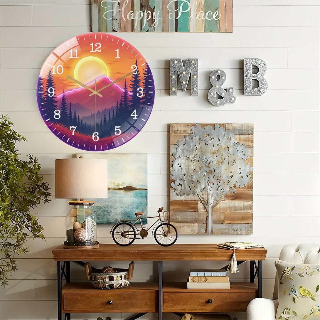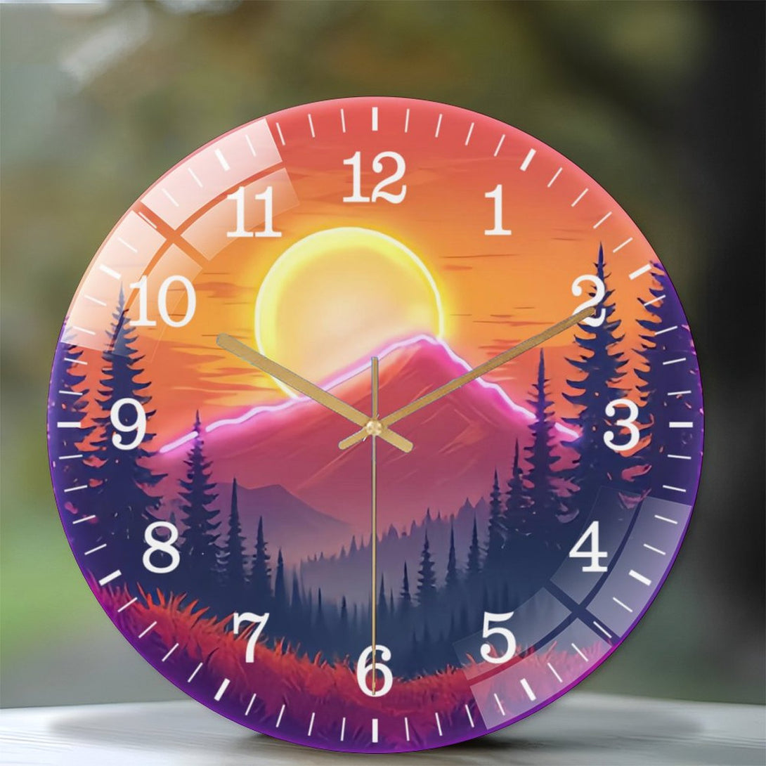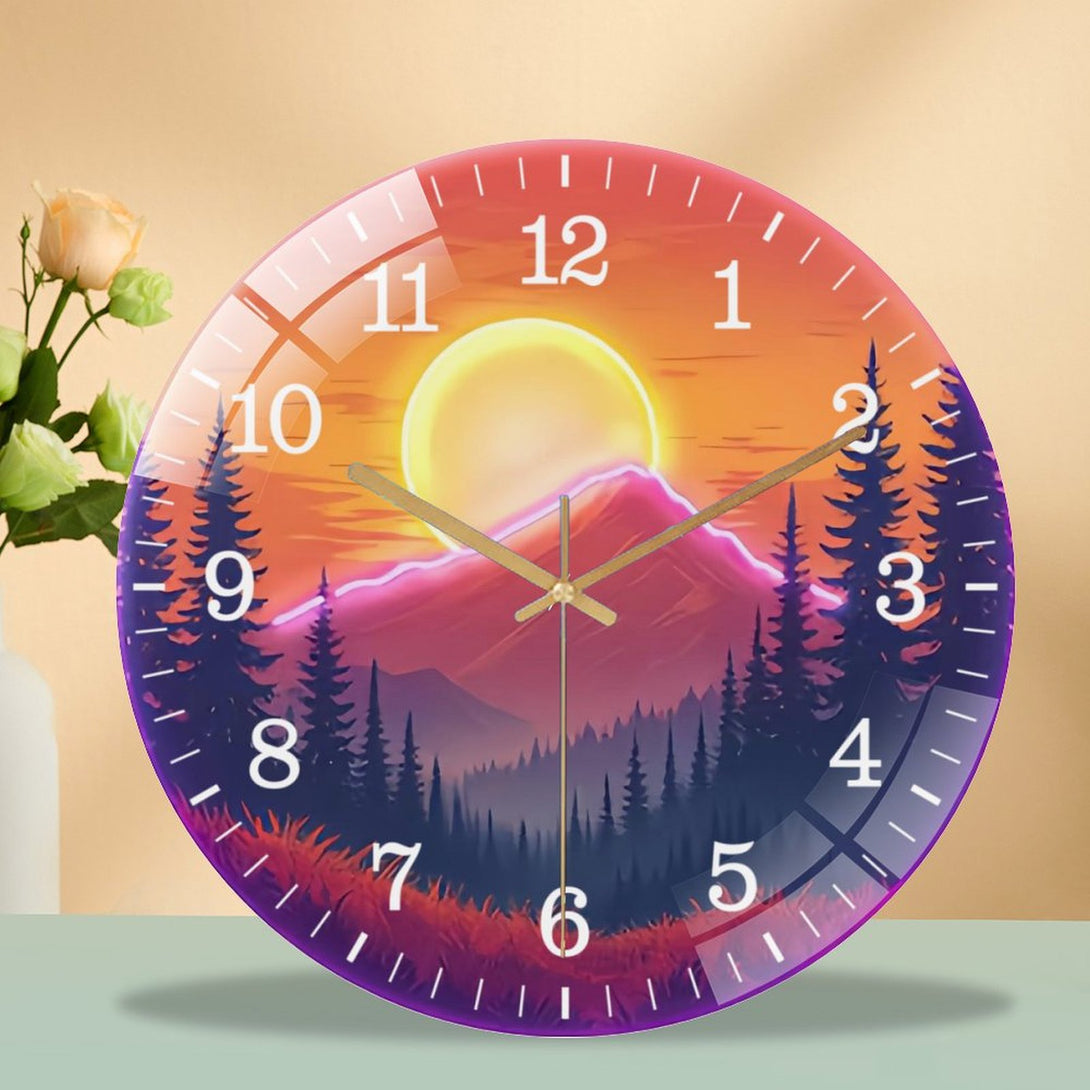 Mountain Sunset Glass Wall Clocks, Sunset Wall Clock for Homes, Bars, Offices, Man Caves, Garages, And Living Rooms. for Gift Home Wall Decor.