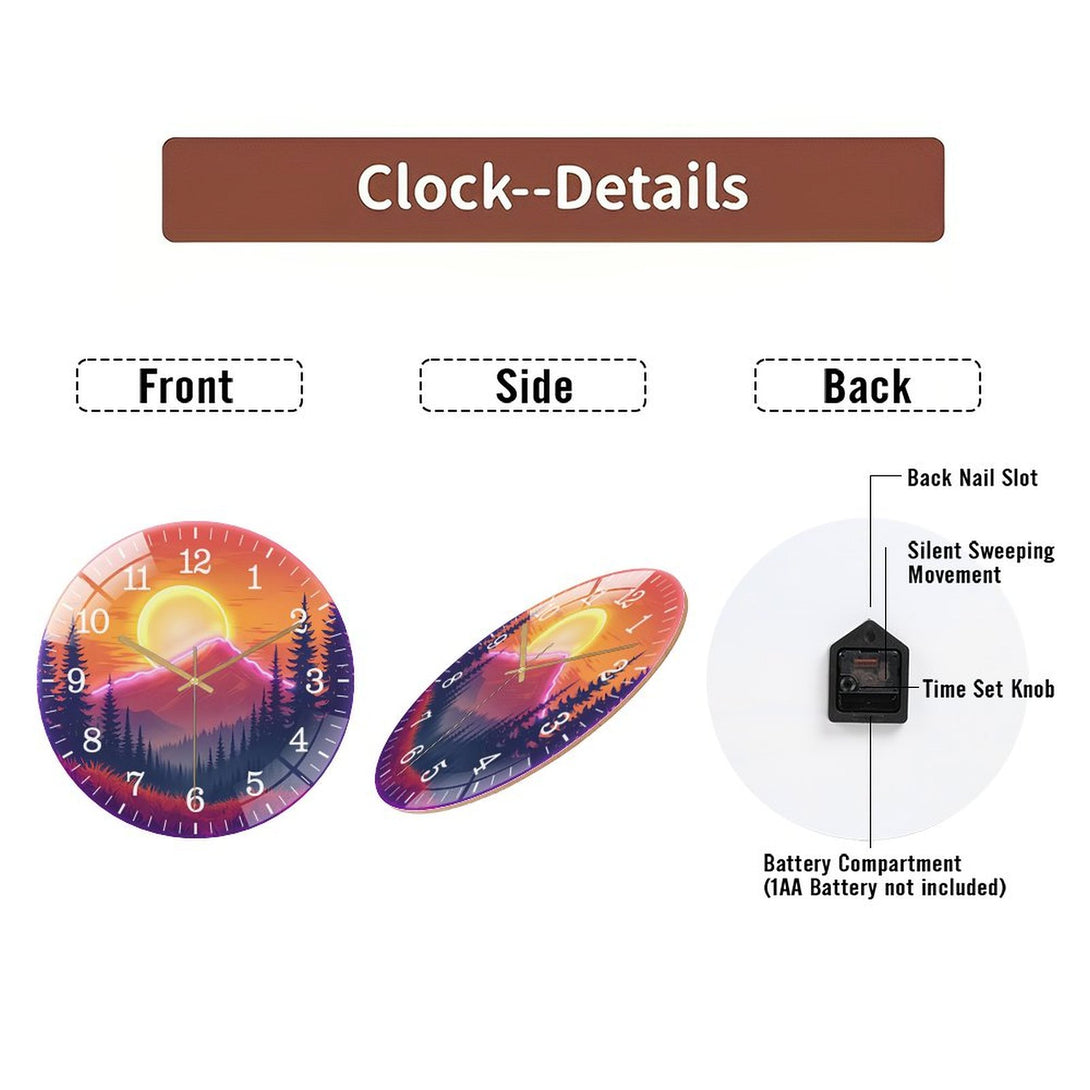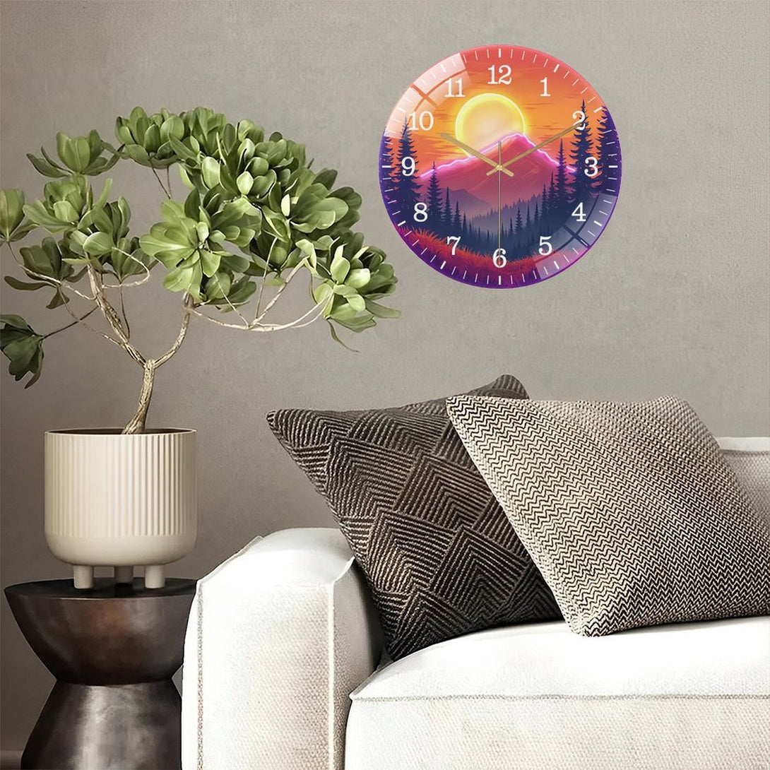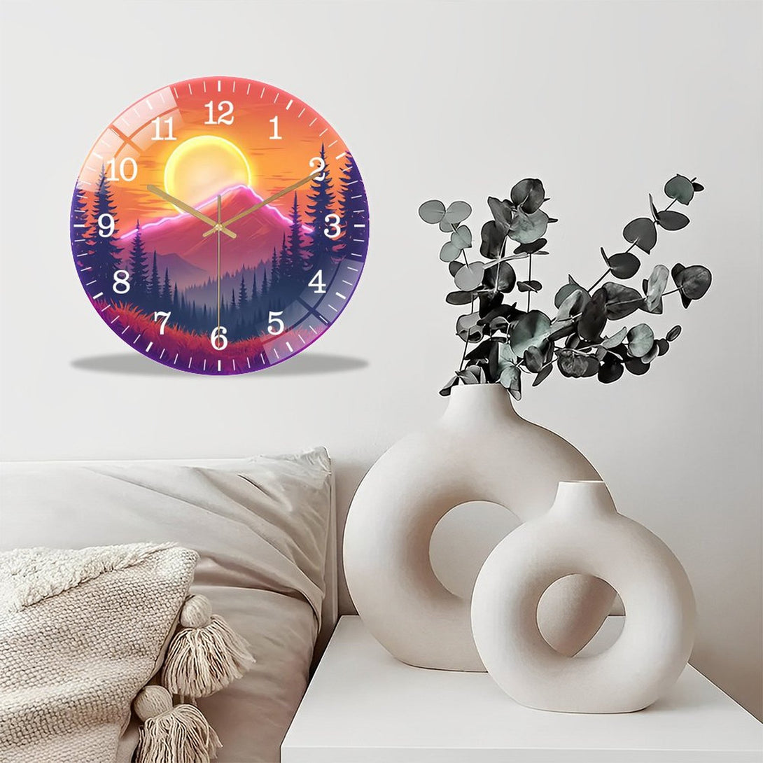 Mountain Sunset Glass Wall Clocks, Sunset Wall Clock for Homes, Bars, Offices, Man Caves, Garages, And Living Rooms. for Gift Home Wall Decor.