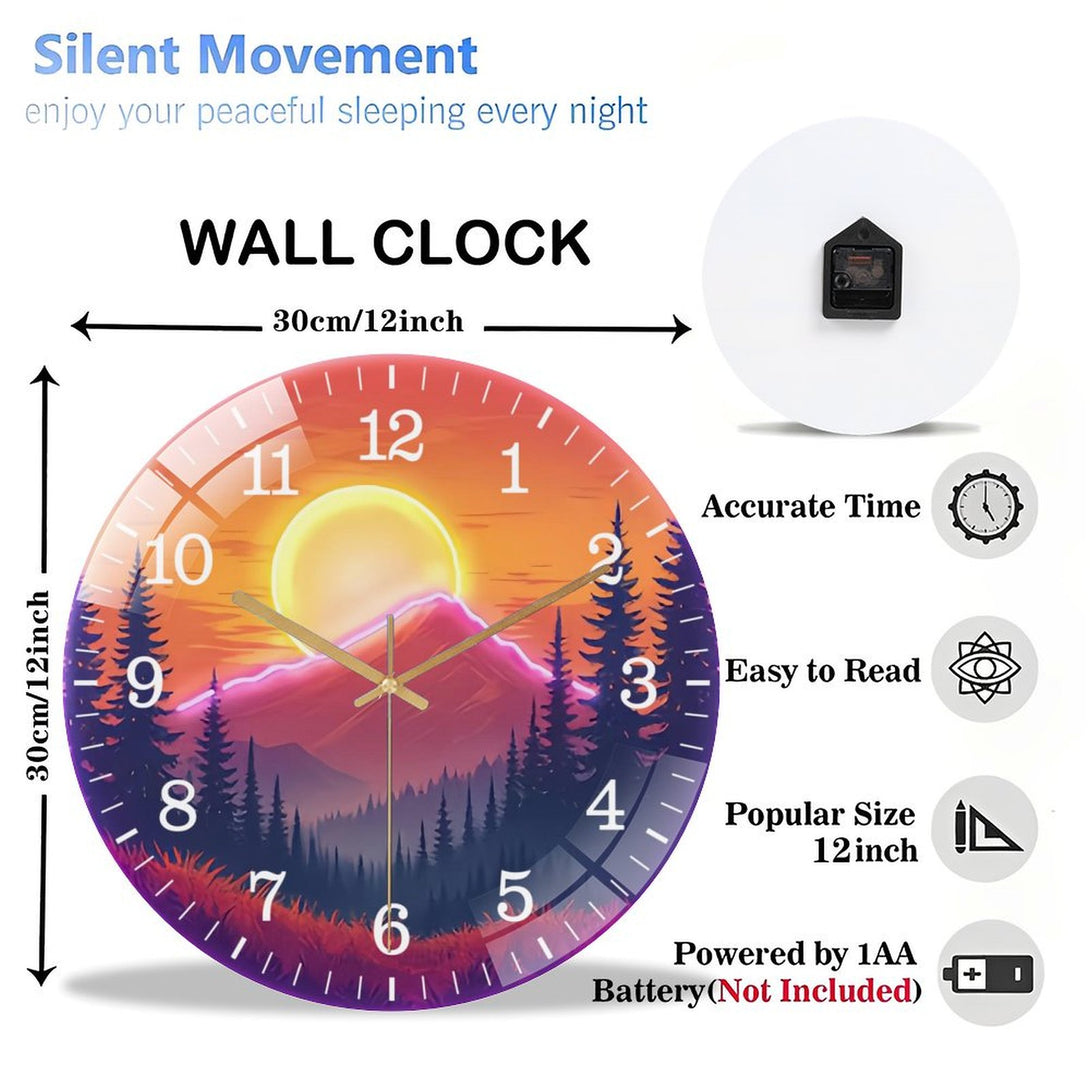 Decor Wall Clocks: Mountain Sunset Glass Wall Clocks, Sunset Wall Clock for Homes, Bars, Offices, Man Caves, Garages, And Living Rooms. for Gift Home Wall Decor. Style 12×12inch(30×30cm)