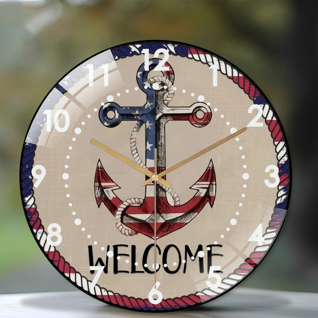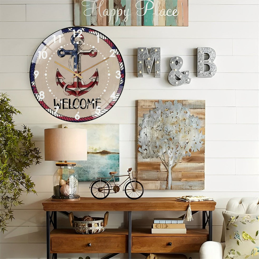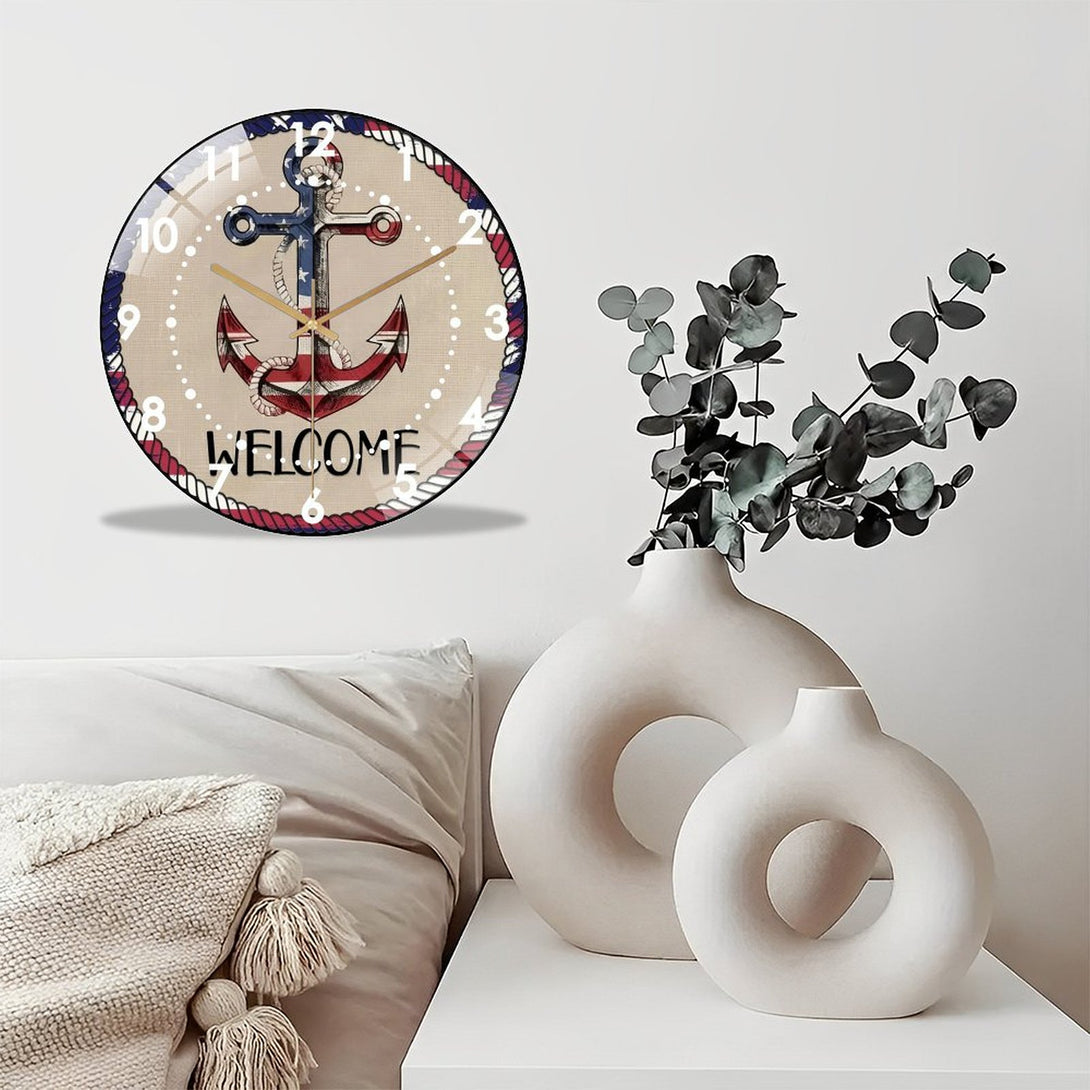 Nautical An-chor Glass Wall Clock, Ocean Decor Wall Clock for Homes, Bars, Offices, Man Caves, Garages, And Living Rooms.,12×12inch(30×30cm)