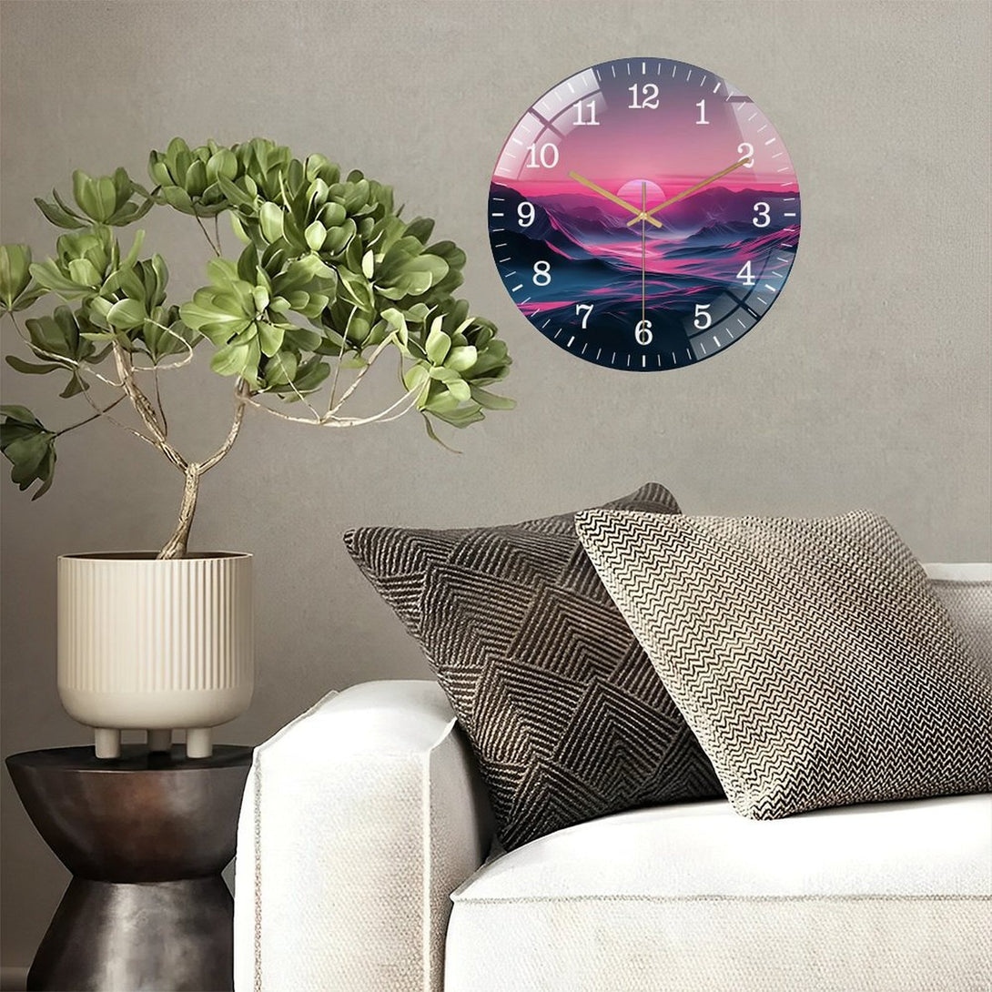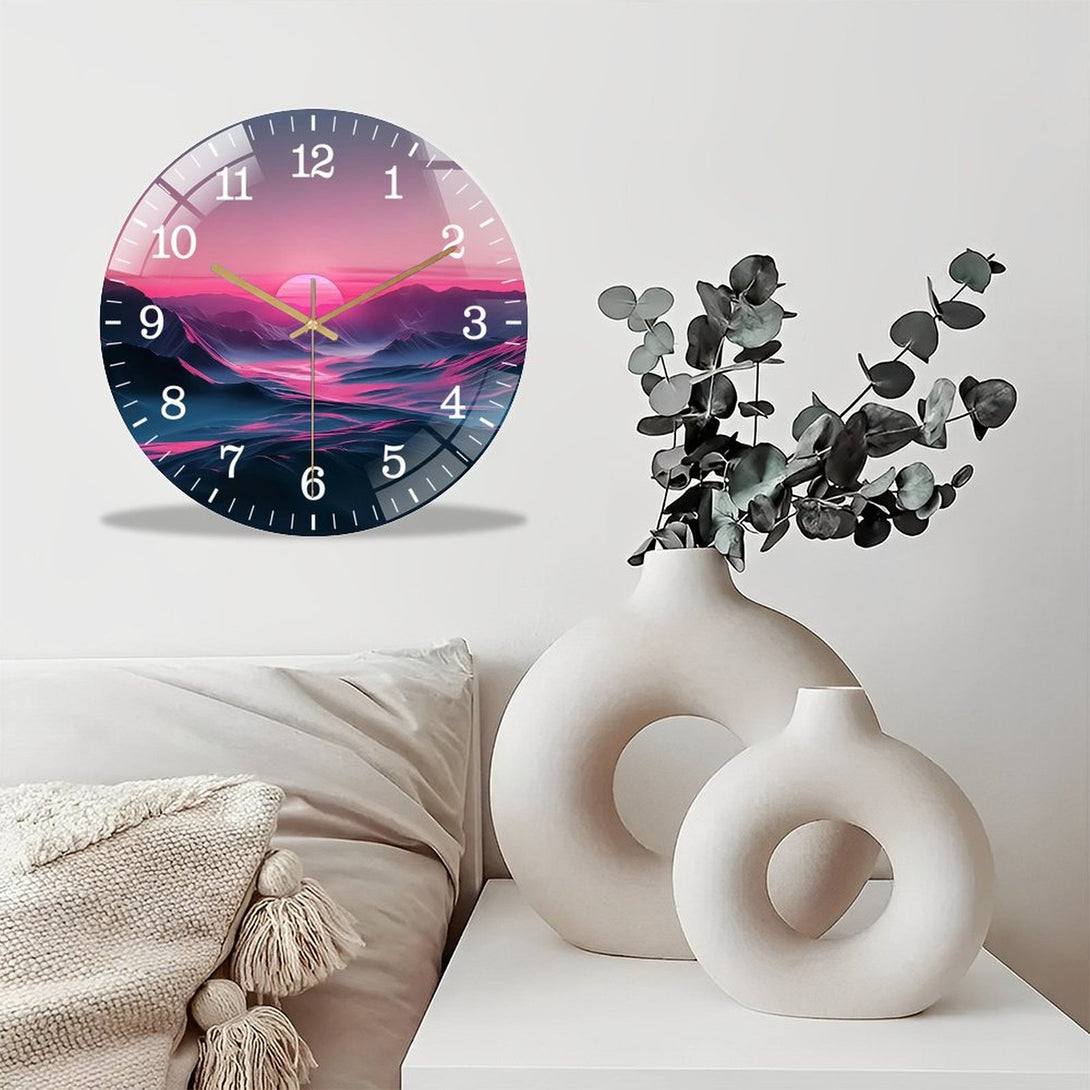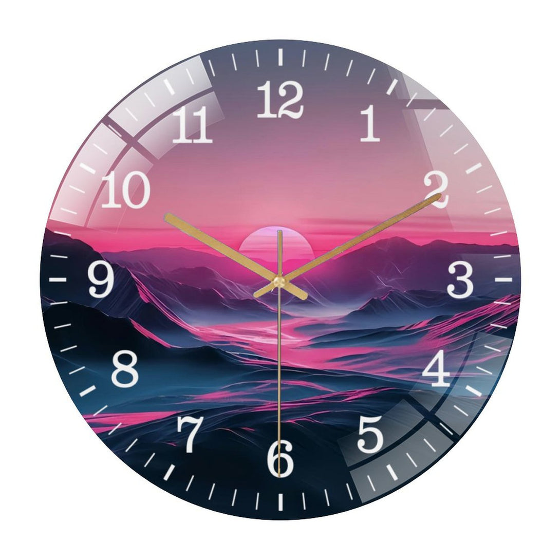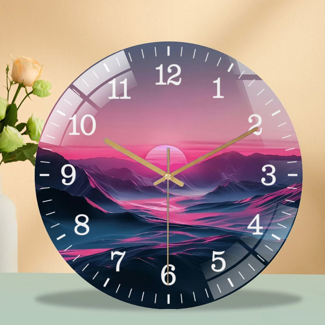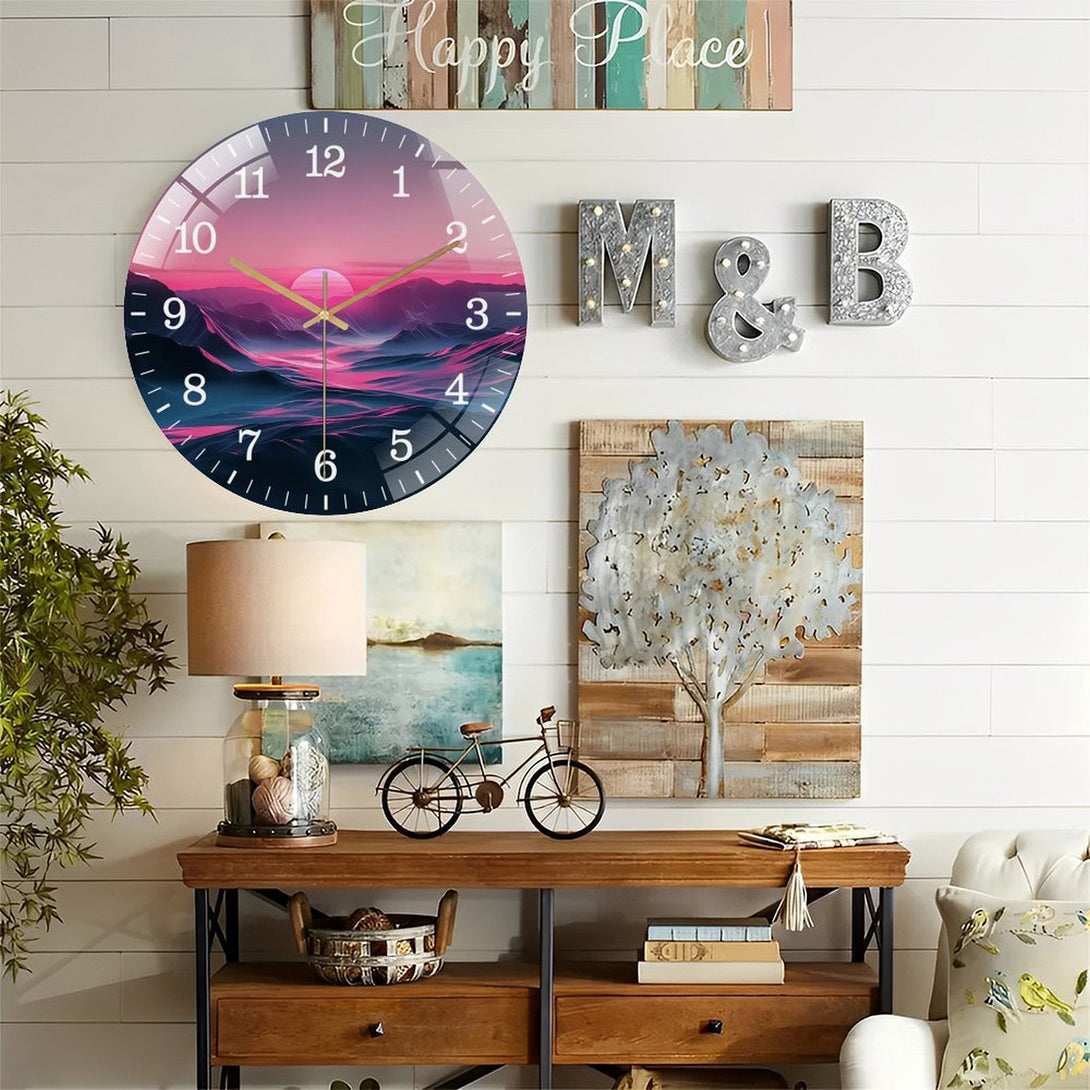 Neon Mountains Glass Wall Clock, Landscape Painting Decor Wall Clock for Homes, Bars, Offices, Man Caves, Garages, And Living Rooms. for Gift Home Wall Decor.