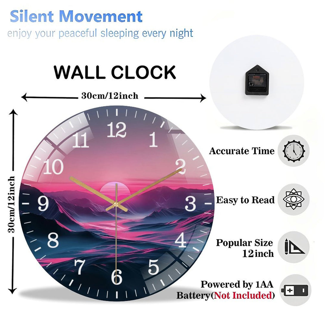 🕚[Silent Ticking Wall Clock] This glass wall clock features a silent ticking mechanism that accurately tells the time, allowing you to enjoy a peaceful rest. The precise quartz movement ensures accurate timekeeping. 🕚[High-Definition Printing] Utilizing UV high-definition printing technology, this clock boasts rich colors, delicate patterns, and a resistance to fading.