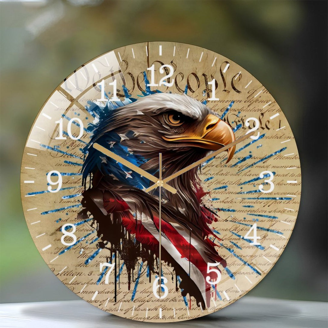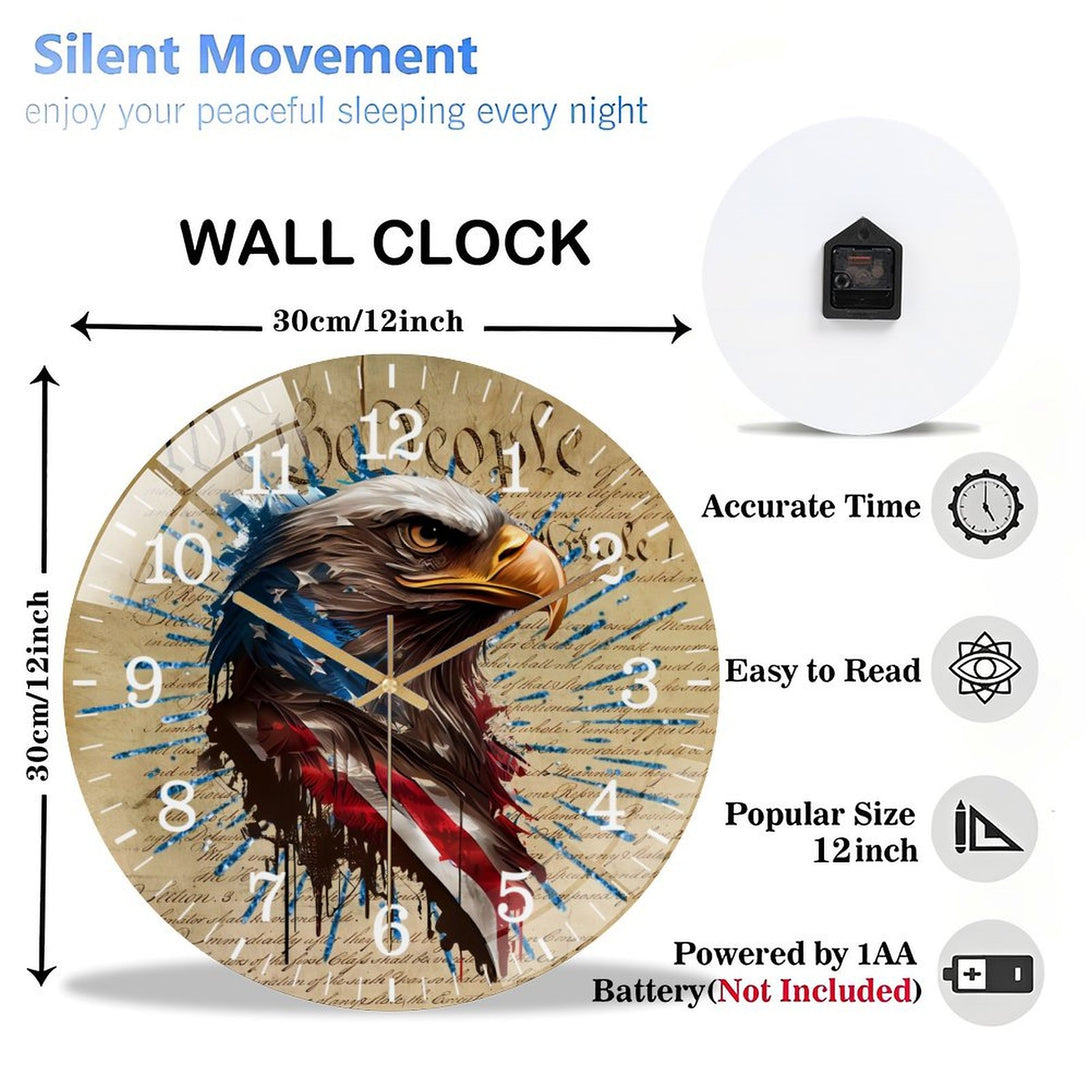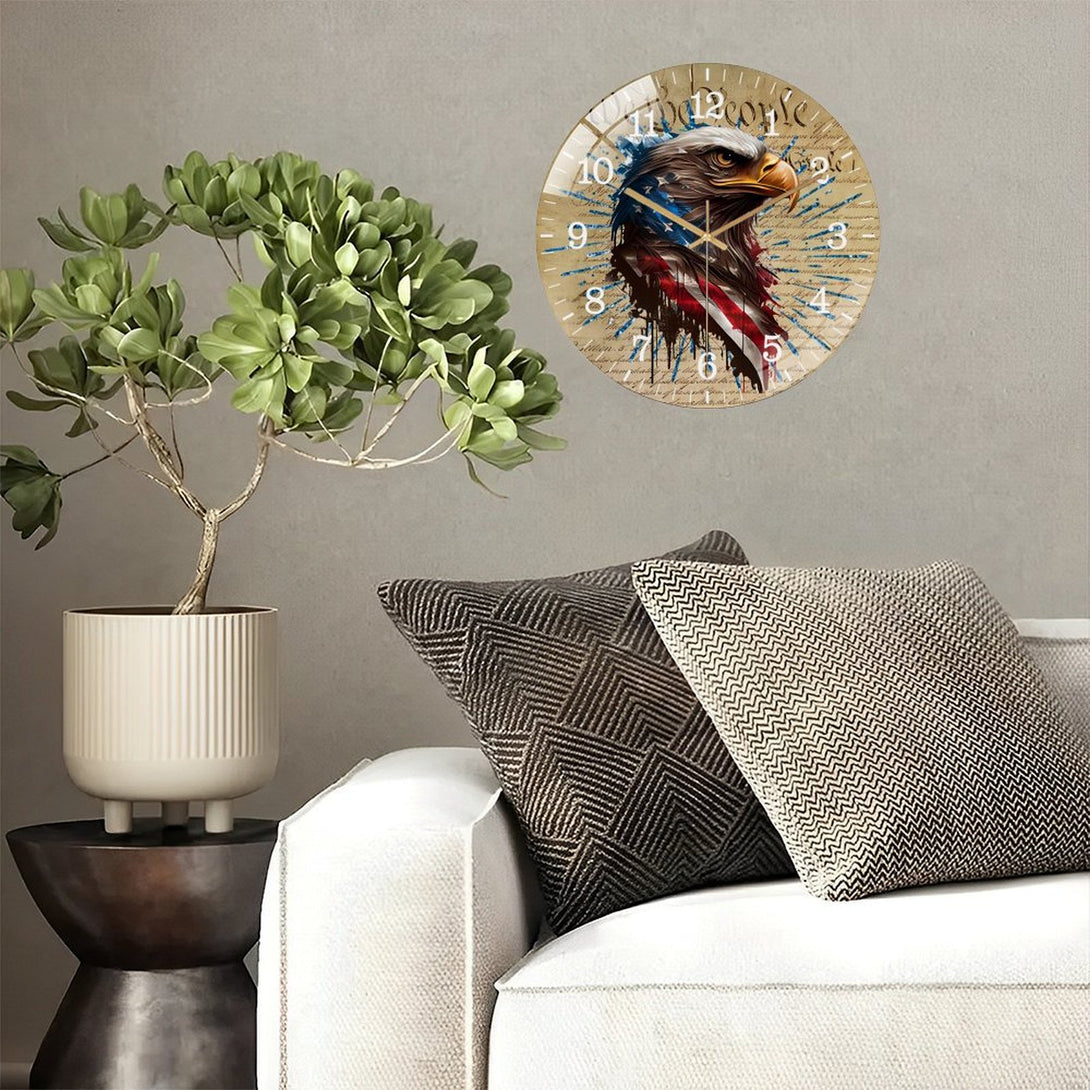 Patriotic Eagle Round Glass Wall Clock ,home Decor Wall Clock for Homes, Bars, Offices, Man Caves, Garages, And Living Rooms. Also Makes A Great Gift.,12×12inch(30×30cm)