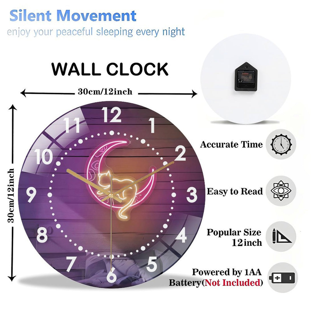 Pink Moon And Cat Glass Wall Clock,Witchy Vibes Cat LoversDecor Wall Clock, for Homes, Bars, Offices, Man Caves, Garages, And Living Rooms. Hallo-ween Gift .Also Makes A Grea.,12×12inch(30×30cm)