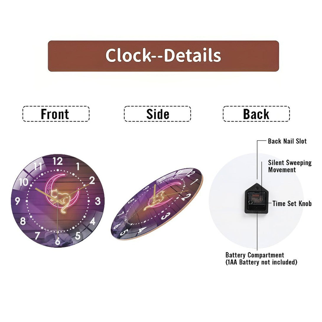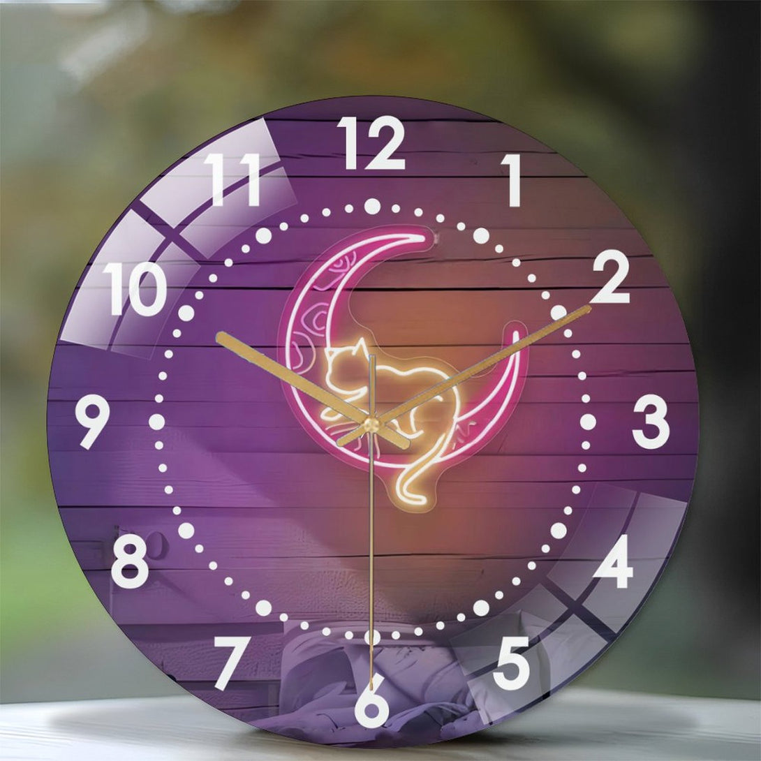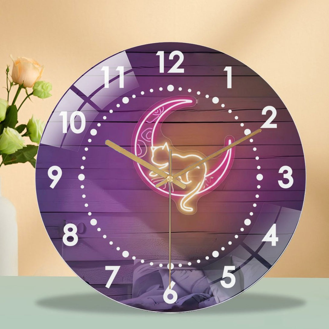 Decor Wall Clocks: Pink Moon And Cat Glass Wall Clock,Witchy Vibes Cat LoversDecor Wall Clock, for Homes, Bars, Offices, Man Caves, Garages, And Living Rooms. Hallo-ween Gift .Also Makes A Grea.