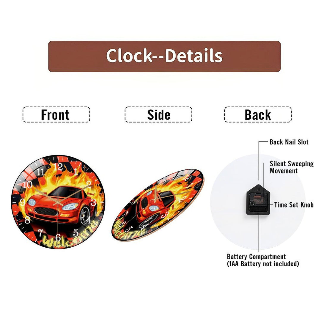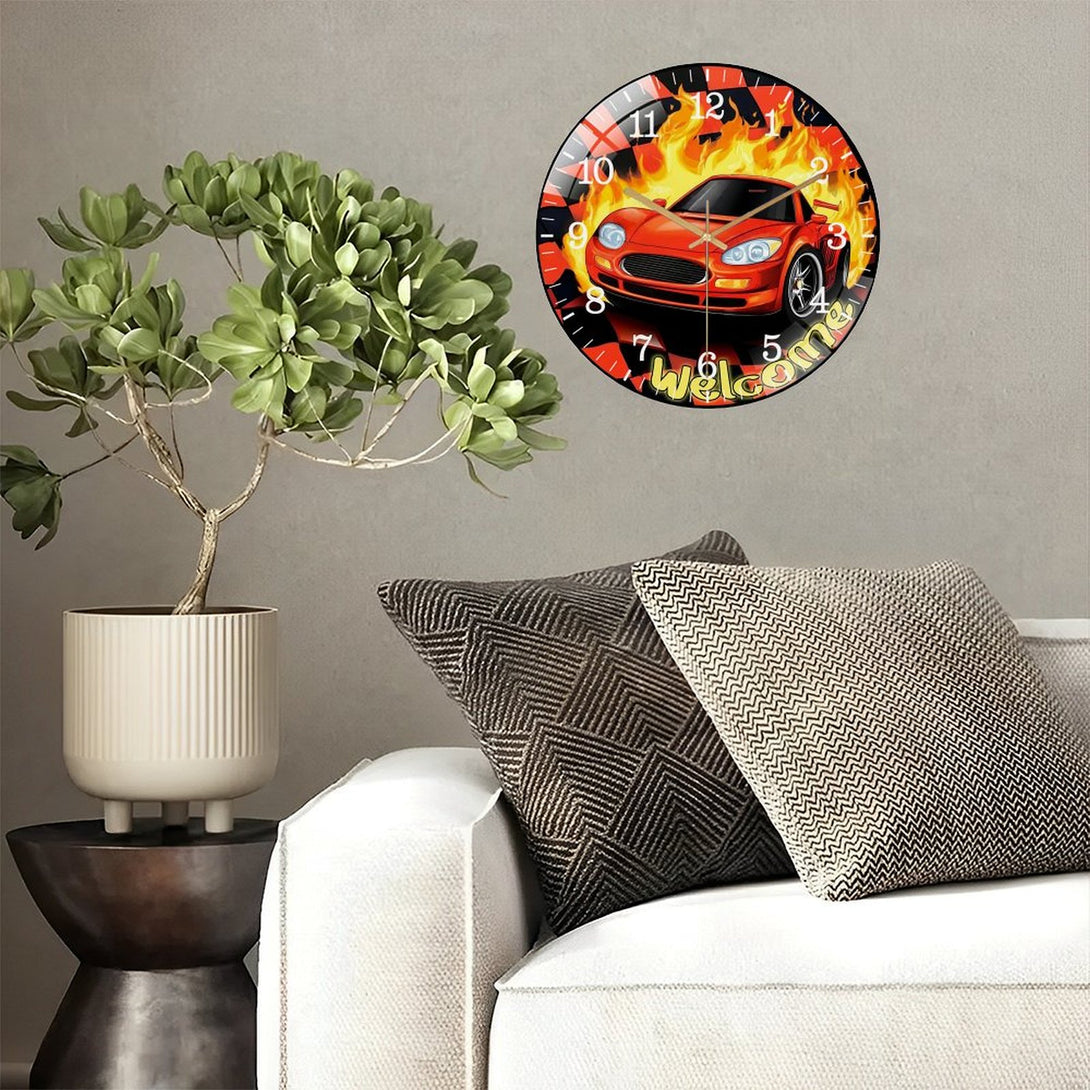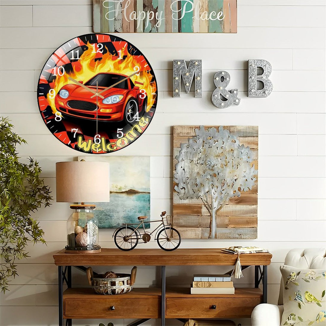 Decor Wall Clocks: Race Car Glass Wall Clock, Race Day Start Your Engines Decor Wall Clock for Homes, Bars, Offices, Man Caves, Garages, And Living Rooms .Also Makes A Great Gift.