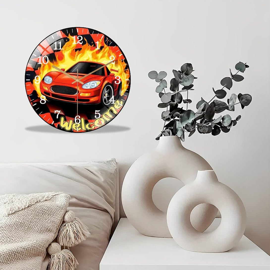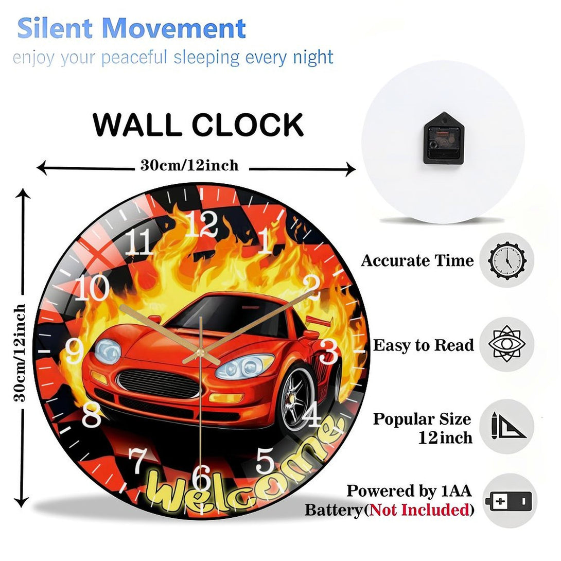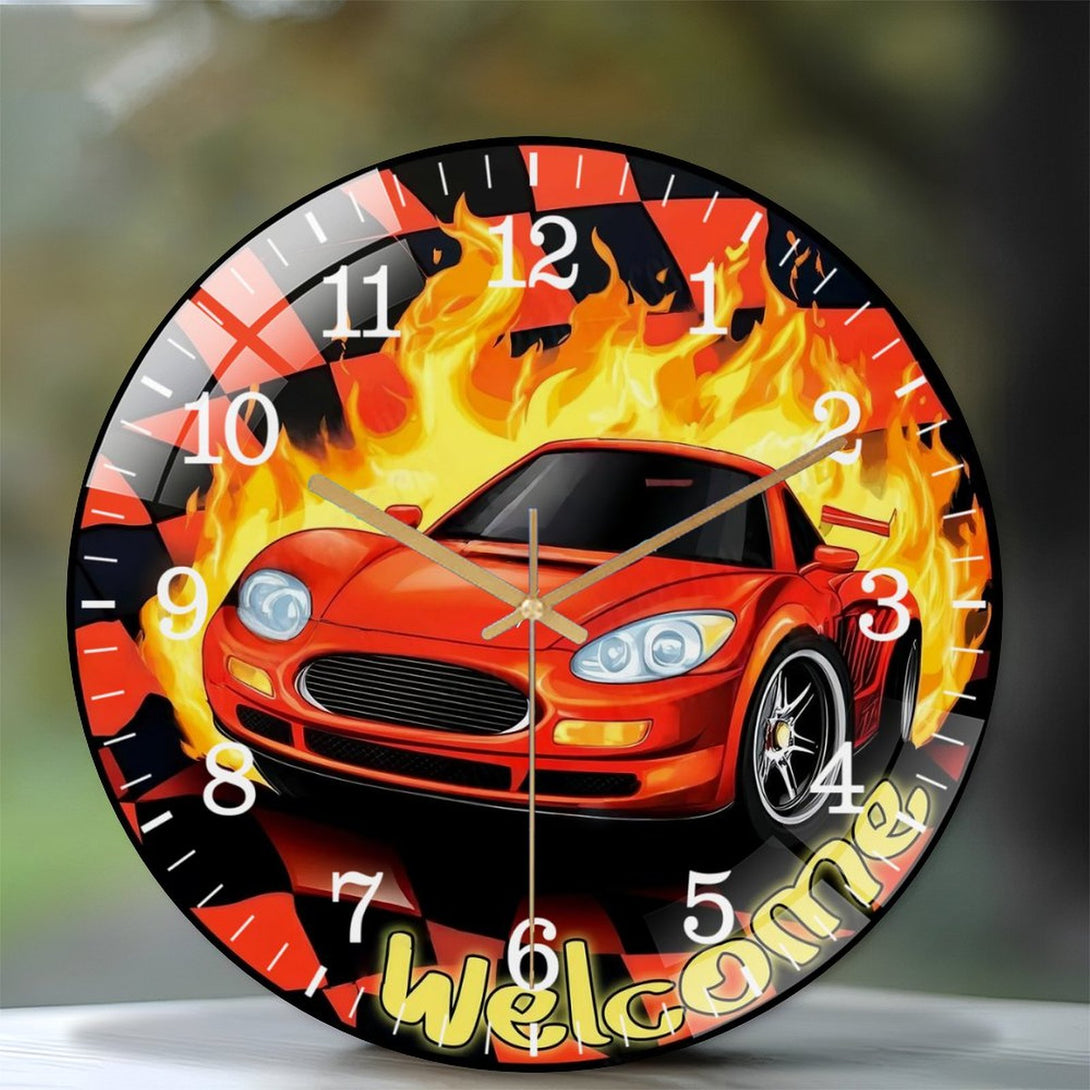 Race Car Glass Wall Clock, Race Day Start Your Engines Decor Wall Clock for Homes, Bars, Offices, Man Caves, Garages, And Living Rooms .Also Makes A Great Gift.,12×12inch(30×30cm)