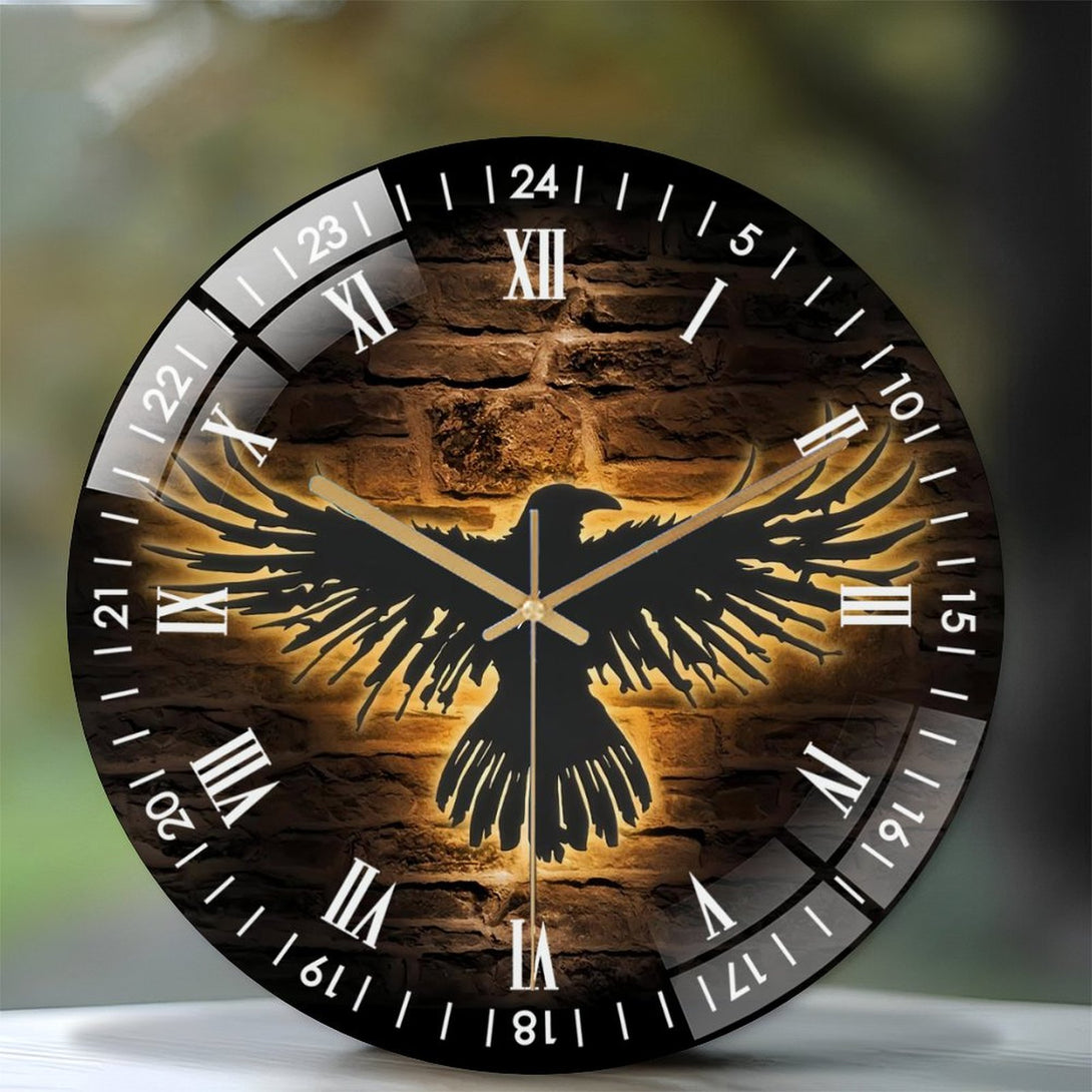 Raven Glass Wall Clock,Black Horror Bird Decoration Wall Clock, for Homes, Bars, Offices, Man Caves, Garages, And Living Rooms. Halloween Nursery Decoration Man Cave Housewarming Birthday,12×12inch(30×30cm)