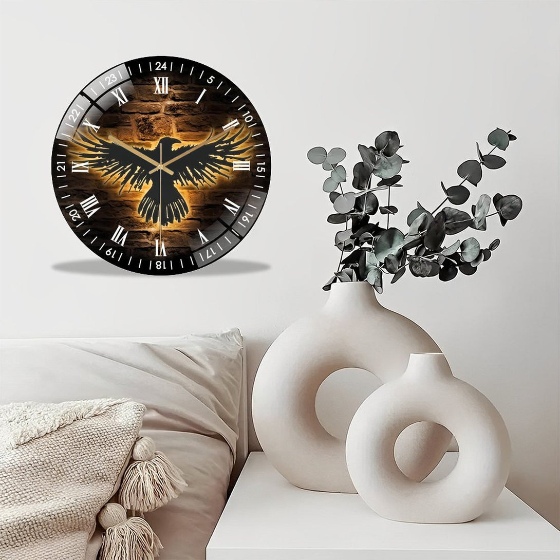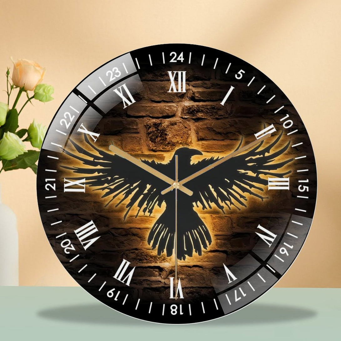 Decor Wall Clocks: Raven Glass Wall Clock,Black Horror Bird Decoration Wall Clock, for Homes, Bars, Offices, Man Caves, Garages, And Living Rooms. Halloween Nursery Decoration
