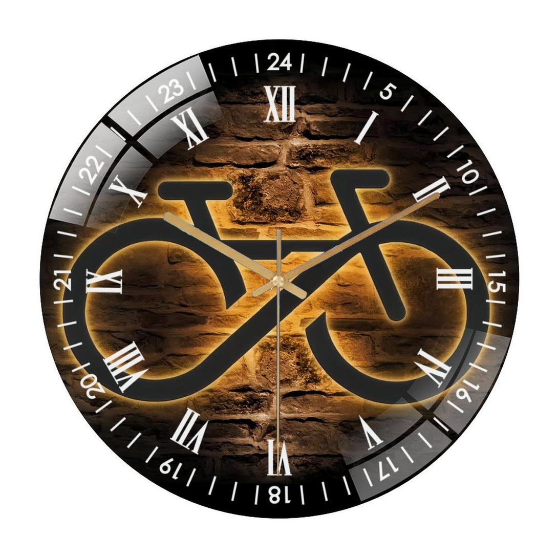 Decor Wall Clocks: Road Bike Racing Glass Wall Clock,Infinity Bike Forever Home Decor Wall Clock, for Homes, Bars, Offices, Man Caves, Garages, And Living Rooms. Style 12×12inch(30×30cm)