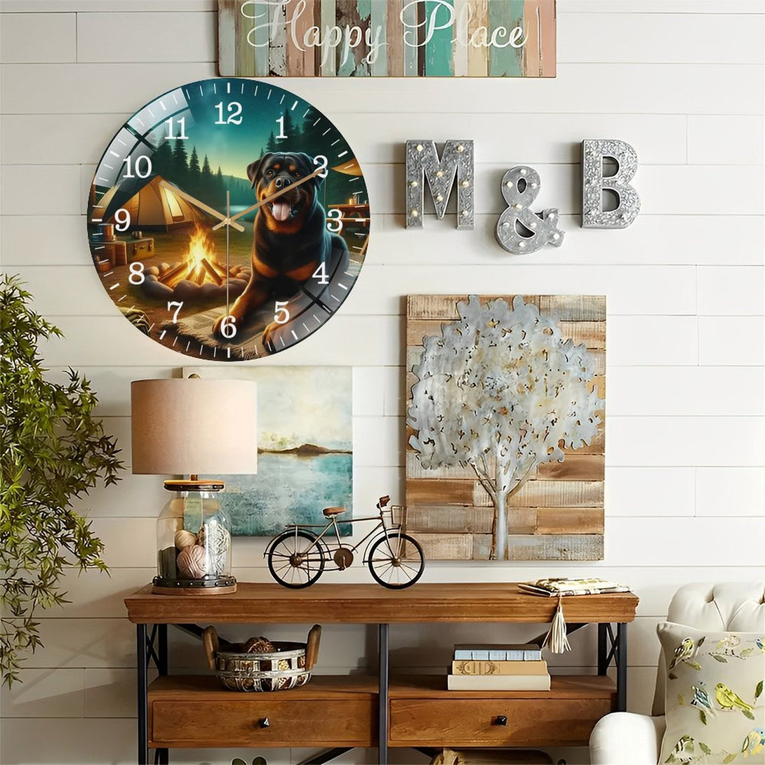 Rottweiler on A Adventure Glass Wall Clock for Homes, Bars, Offices, Man Caves, Garages, And Living Rooms. Hallo Ween Gift .Also Makes A Great Gift.,12×12inch(30×30cm)