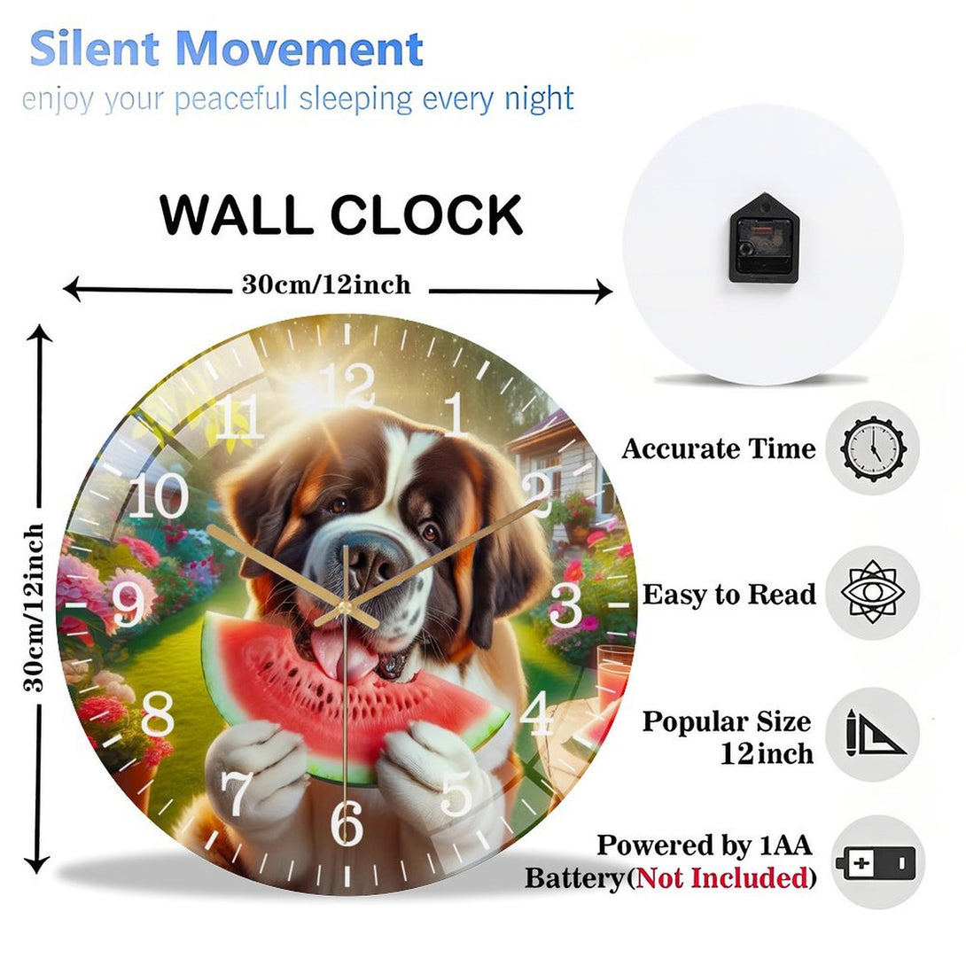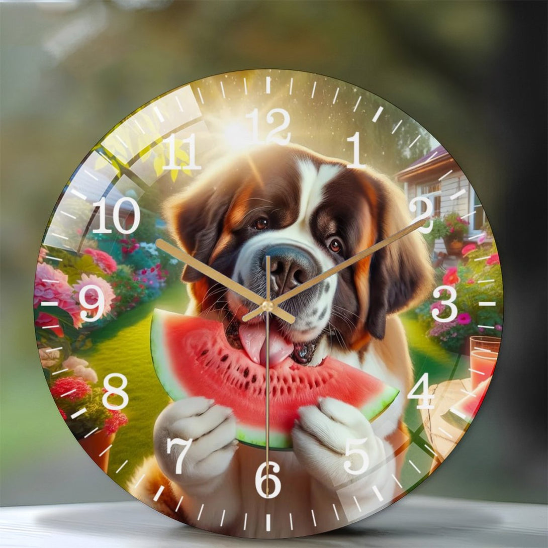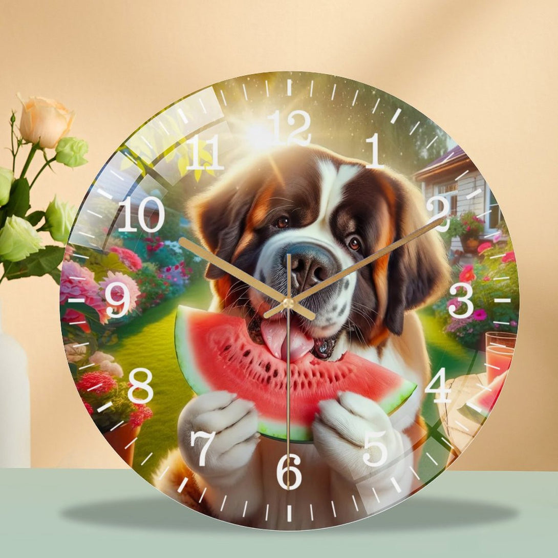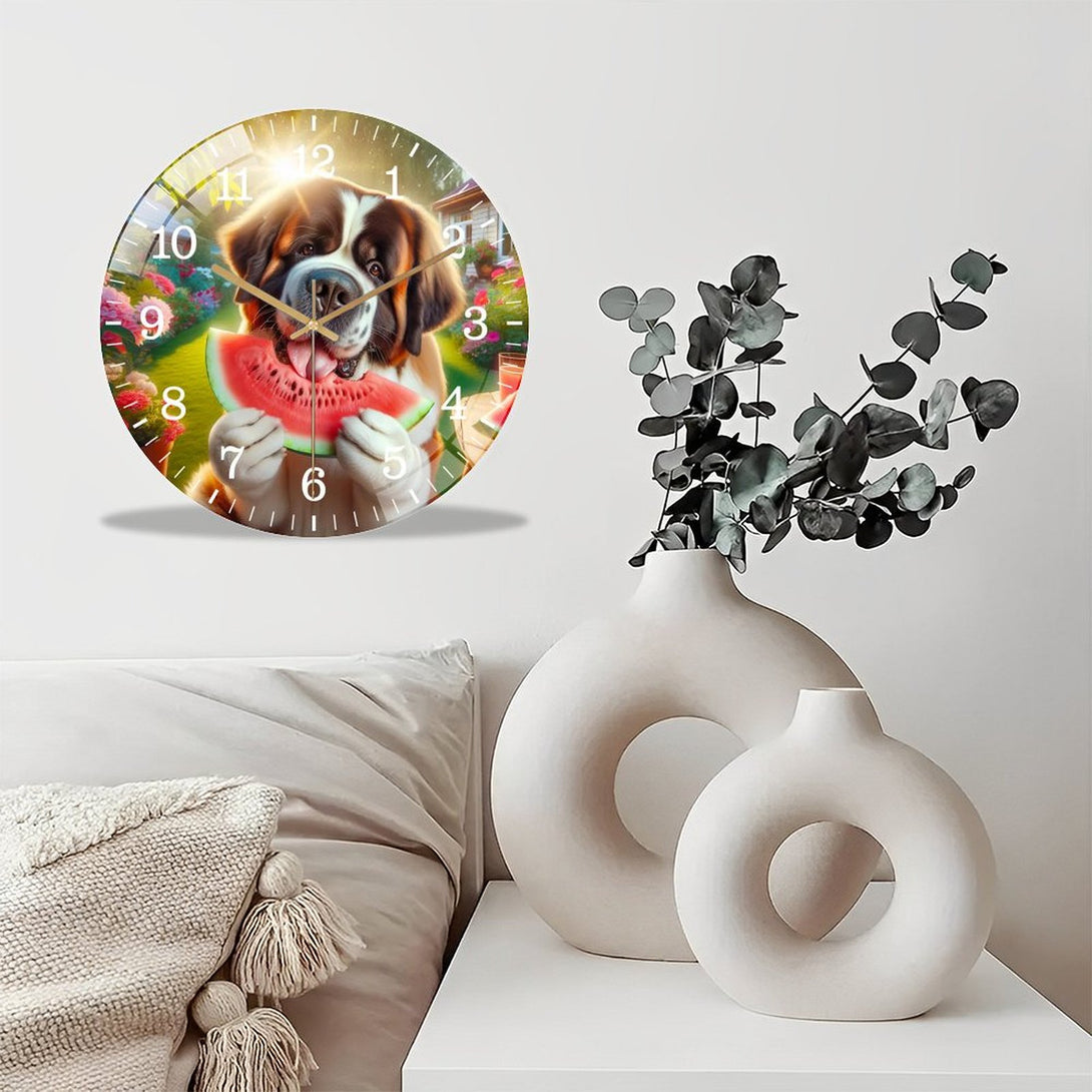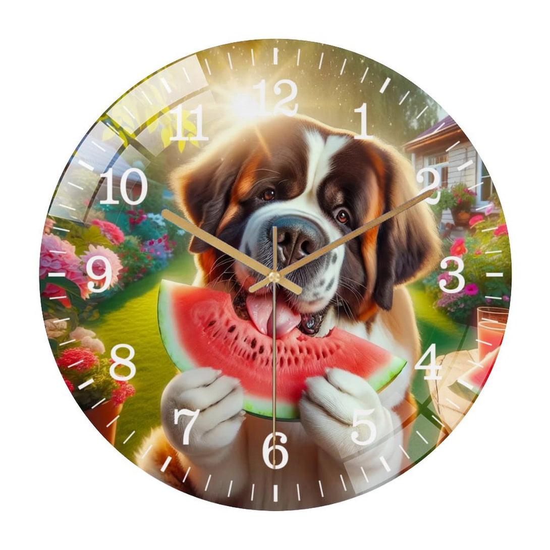 Saint Bernard Eating Watermelon Glass Wall Clock ,Dog Lover Wall Clock for Homes, Bars, Offices, Man Caves, Garages, And Living Rooms. .Also Makes A Great Gift.Housewarming Gift , Ho,12×12inch(30×30cm)
