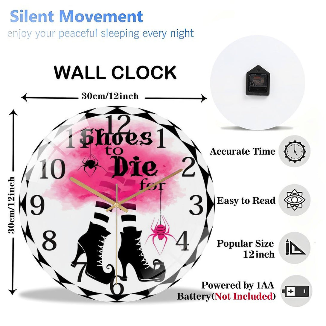Shoes to Die For Round Glass Wall Clock ,Gothic Witch Decor Wall Clock for Homes, Bars, Offices, Man Caves, Garages, And Living Rooms. Hallo-ween Gift,12×12inch(30×30cm)