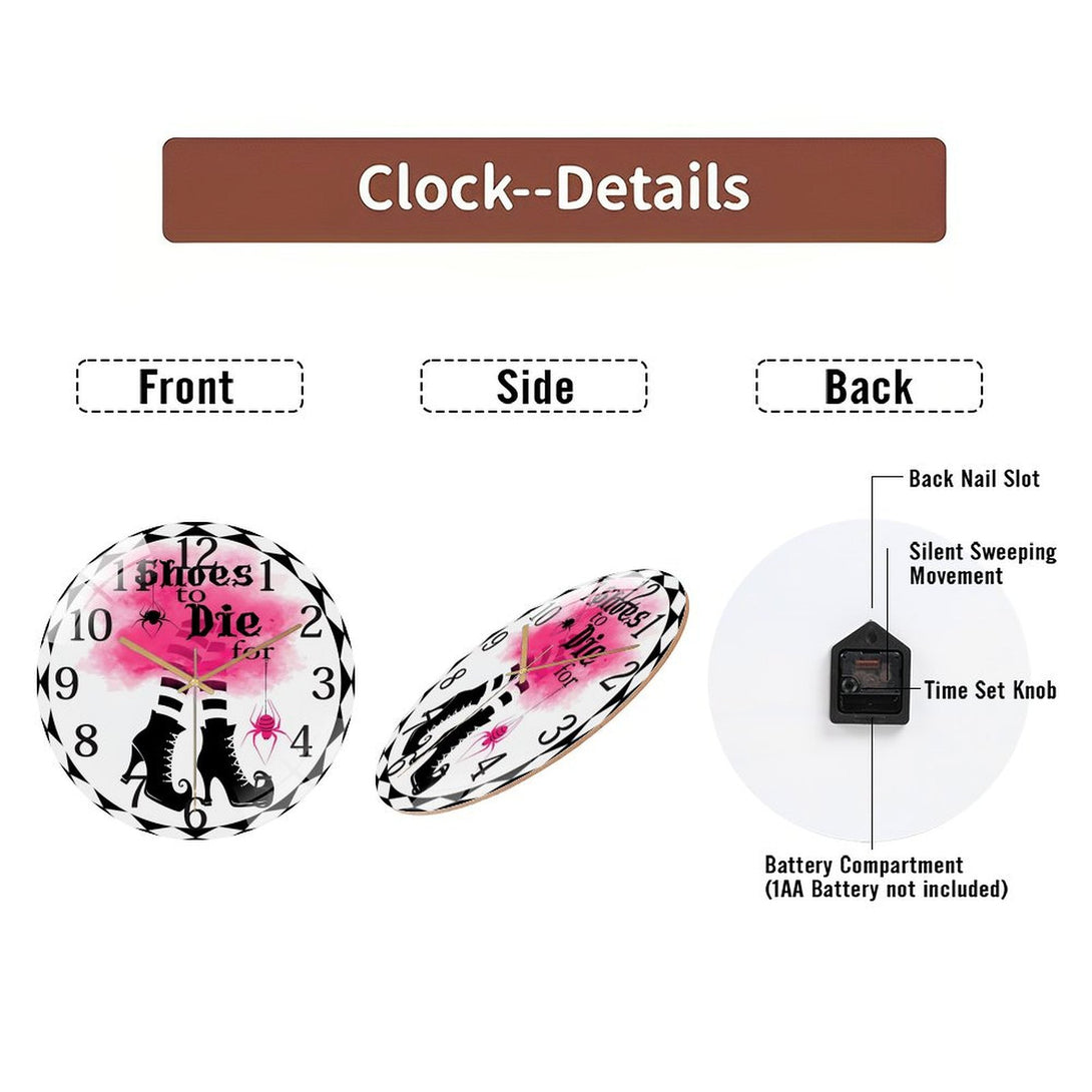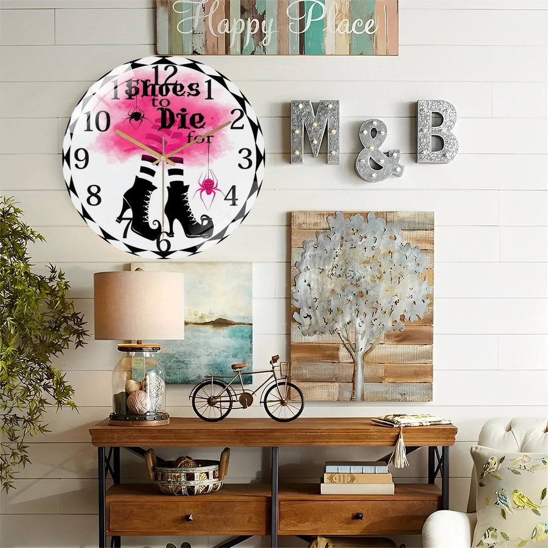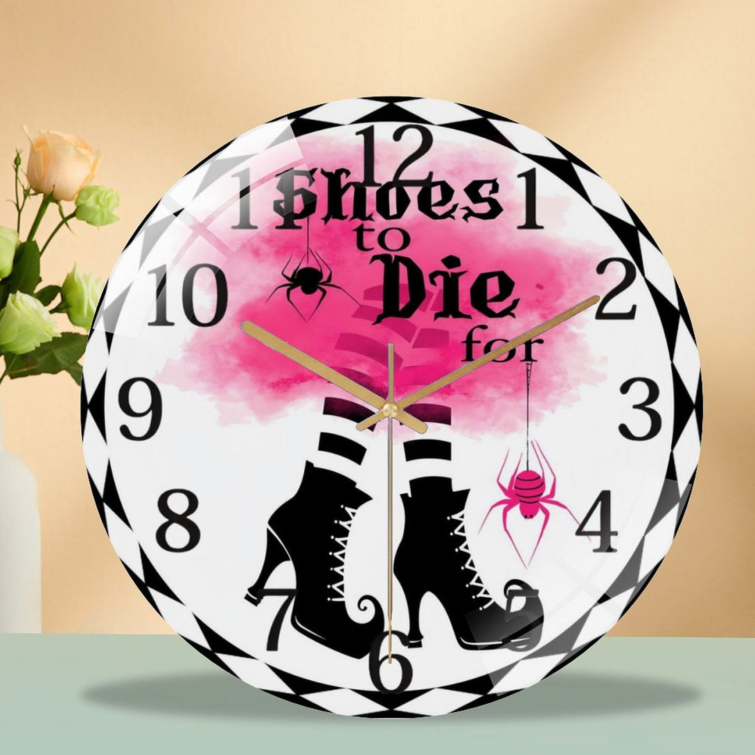 Decor Wall Clocks: Shoes to Die For Round Glass Wall Clock ,Gothic Witch Decor Wall Clock for Homes, Bars, Offices, Man Caves, Garages, And Living Rooms. Hallo-ween Gift Style 12×12inch(30×30cm)