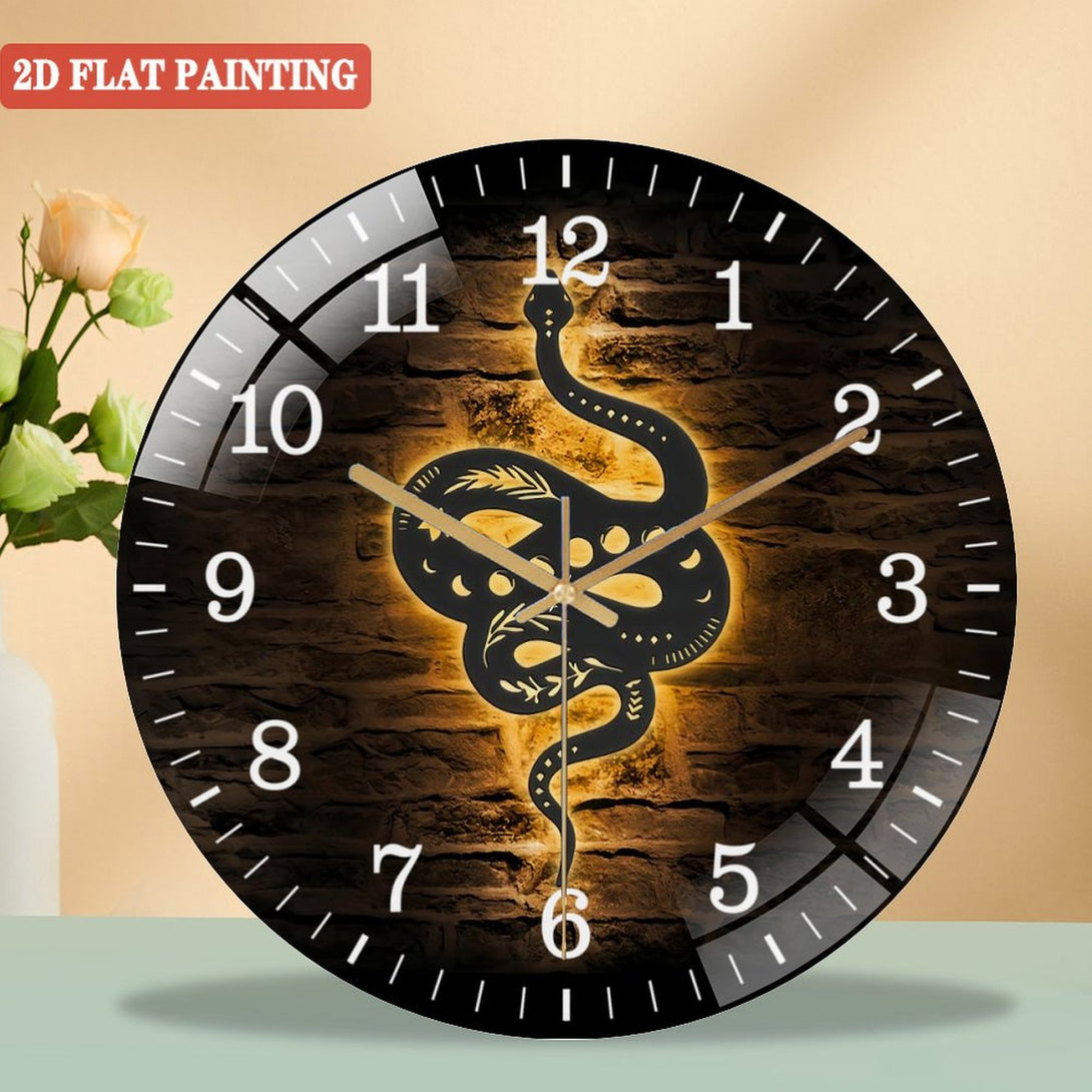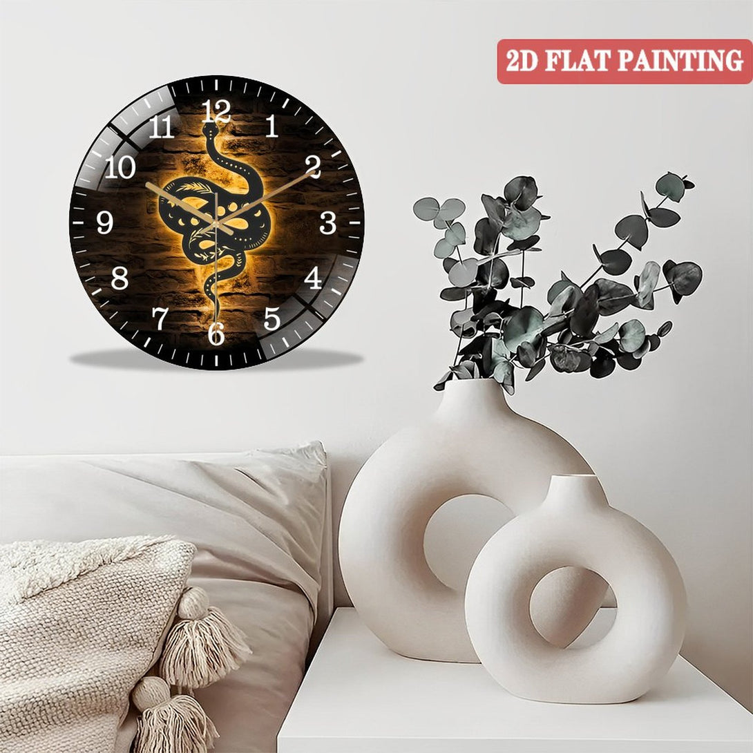 Snake Moon Phase Glass Wall Clocks, Celestial Snake Glass Wall Clocks,Home Decor Crescent Snake Decoration Hanging Door Birthday Xmas Gift