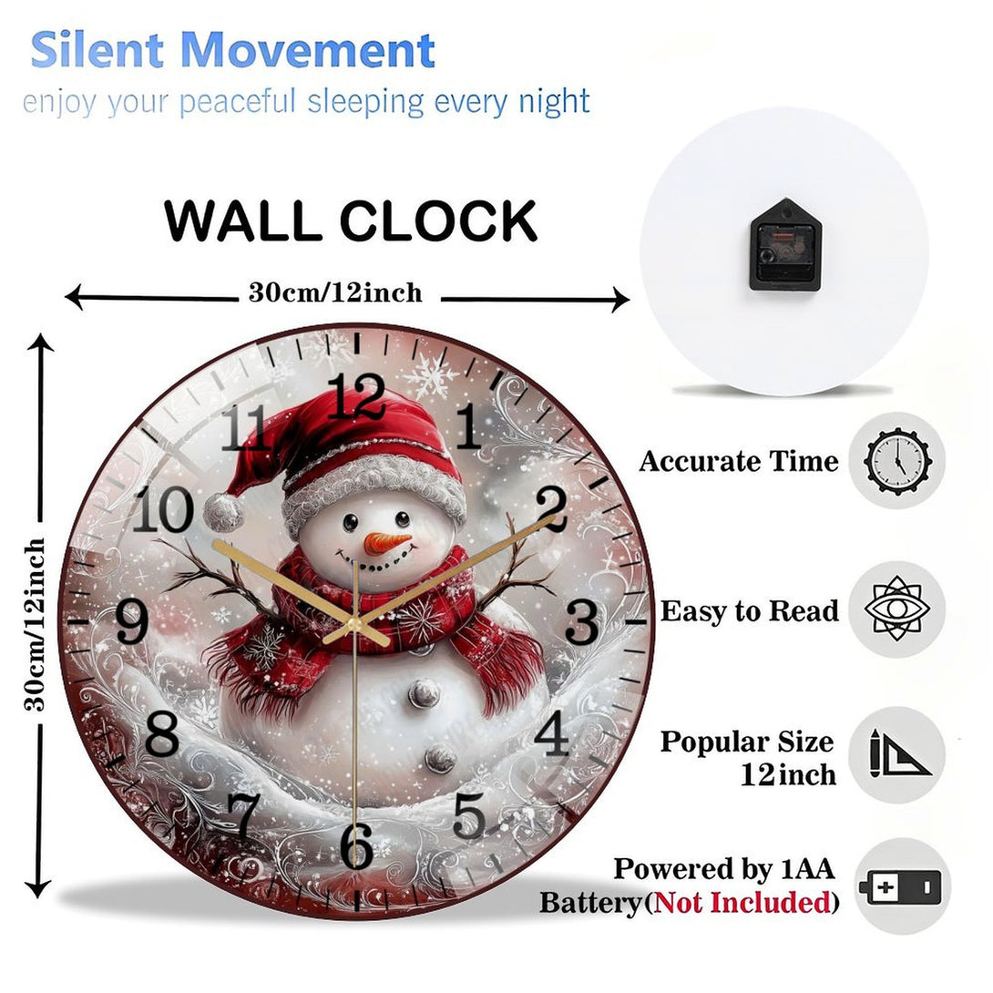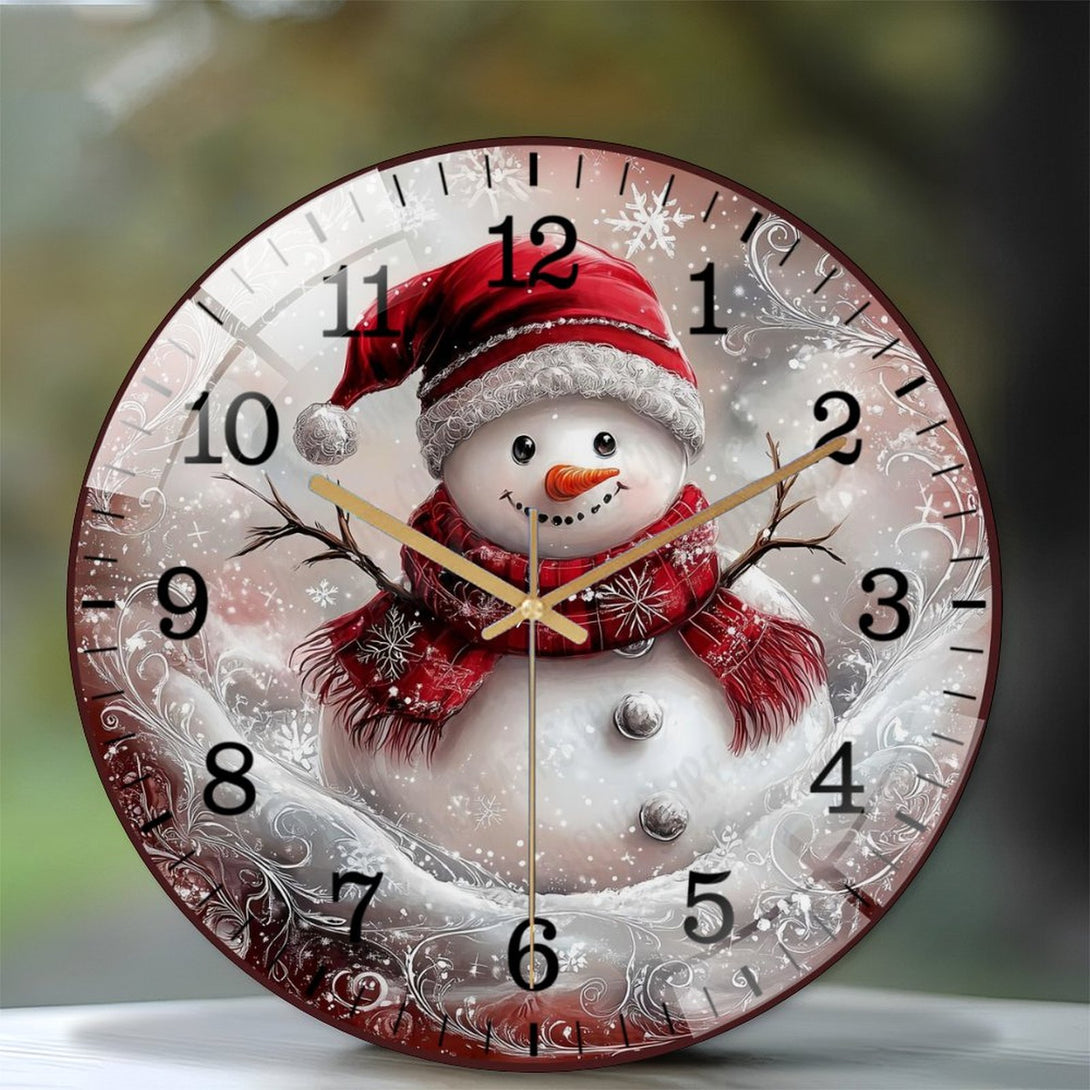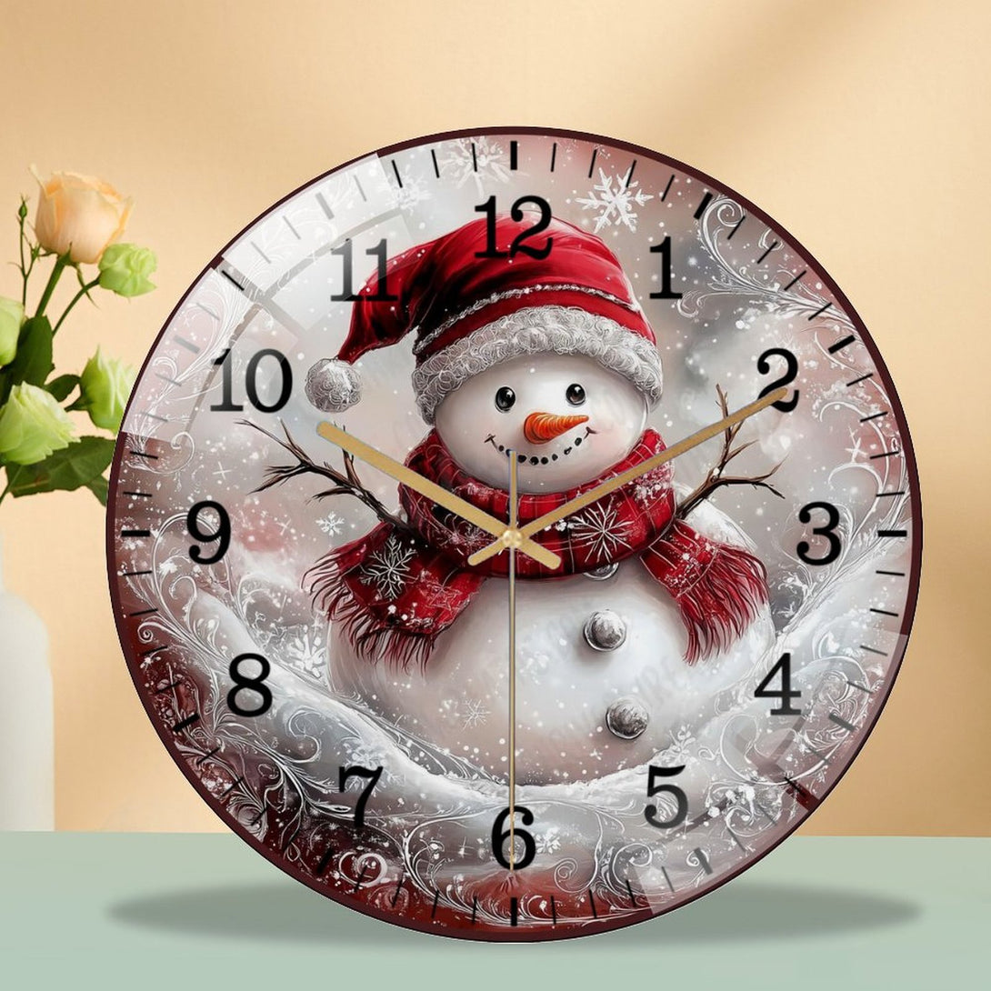Snowman, Christmas Snowman Glass Wall Clock ,Winter Decor Wall Clock for Homes, Bars, Offices, Man Caves, Garages, And Living Rooms. Also Makes A Great Gift.,12×12inch(30×30cm)