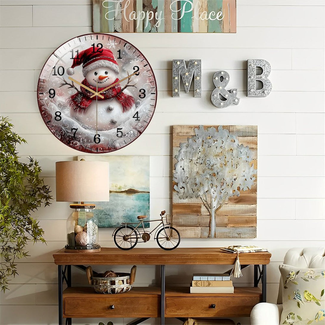 Decor Wall Clocks: Snowman, Christmas Snowman Glass Wall Clock ,Winter Decor Wall Clock for Homes, Bars, Offices, Man Caves, Garages, And Living Rooms. Also Makes A Great Gift.