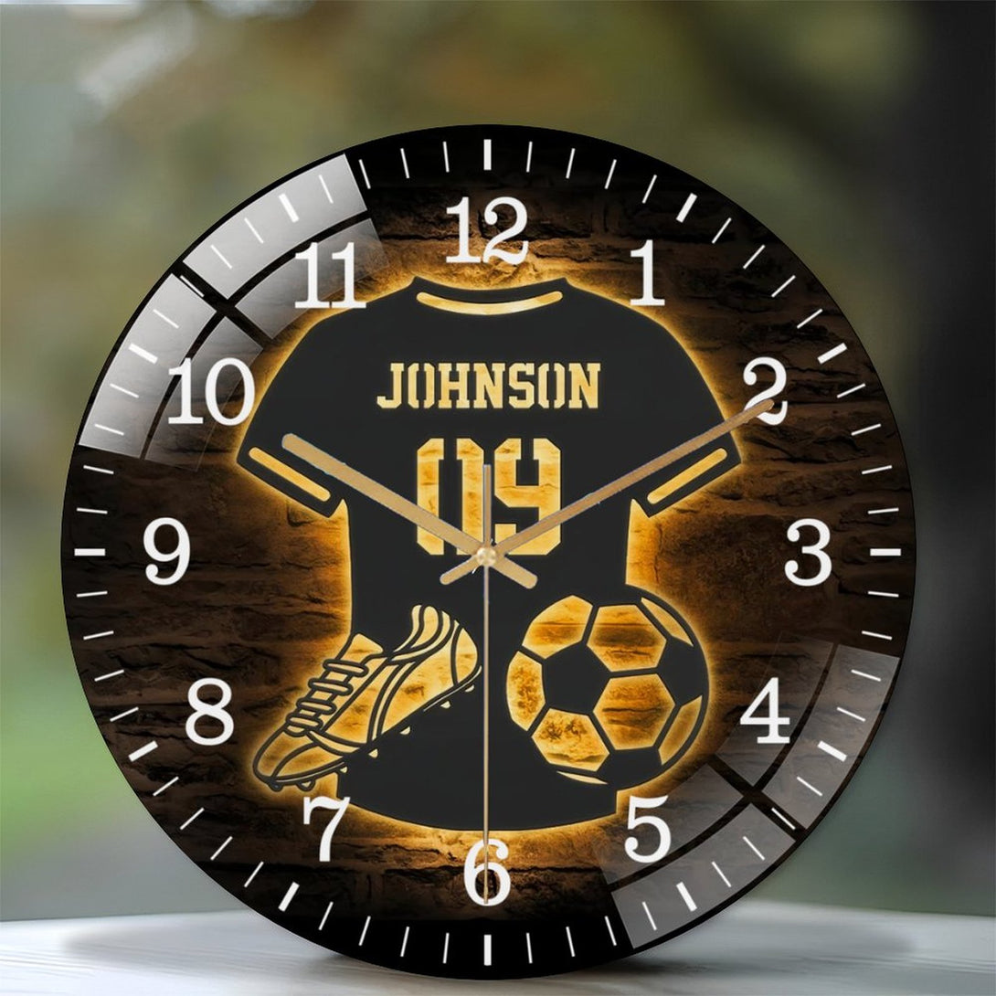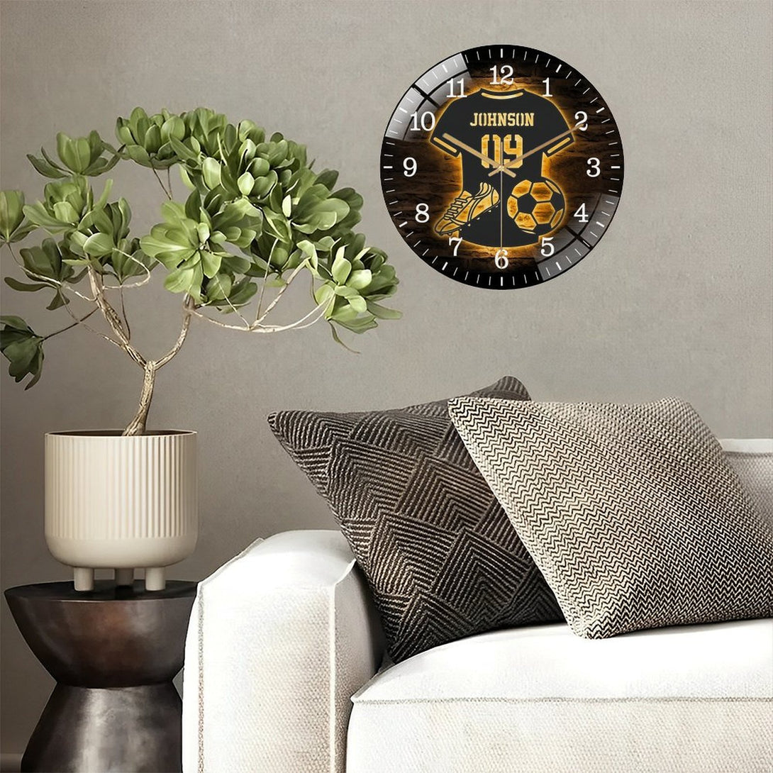 Decor Wall Clocks: Soccer Glass Wall Clock, Football Player Decor Kid Nursery Decoration Wall Clock for Homes, Bars, Offices, Man Caves, Garages, And Living Rooms. Also Makes A Great Gift.