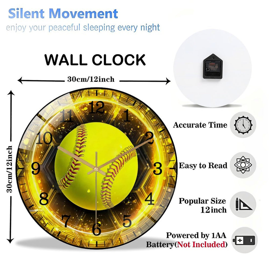 Softball Glass Wall Clock, Softball Welcome Wall Clock for Homes, Bars, Offices, Man Caves, Garages, And Living Rooms .Also Makes A Great Gift.,12×12inch(30×30cm)