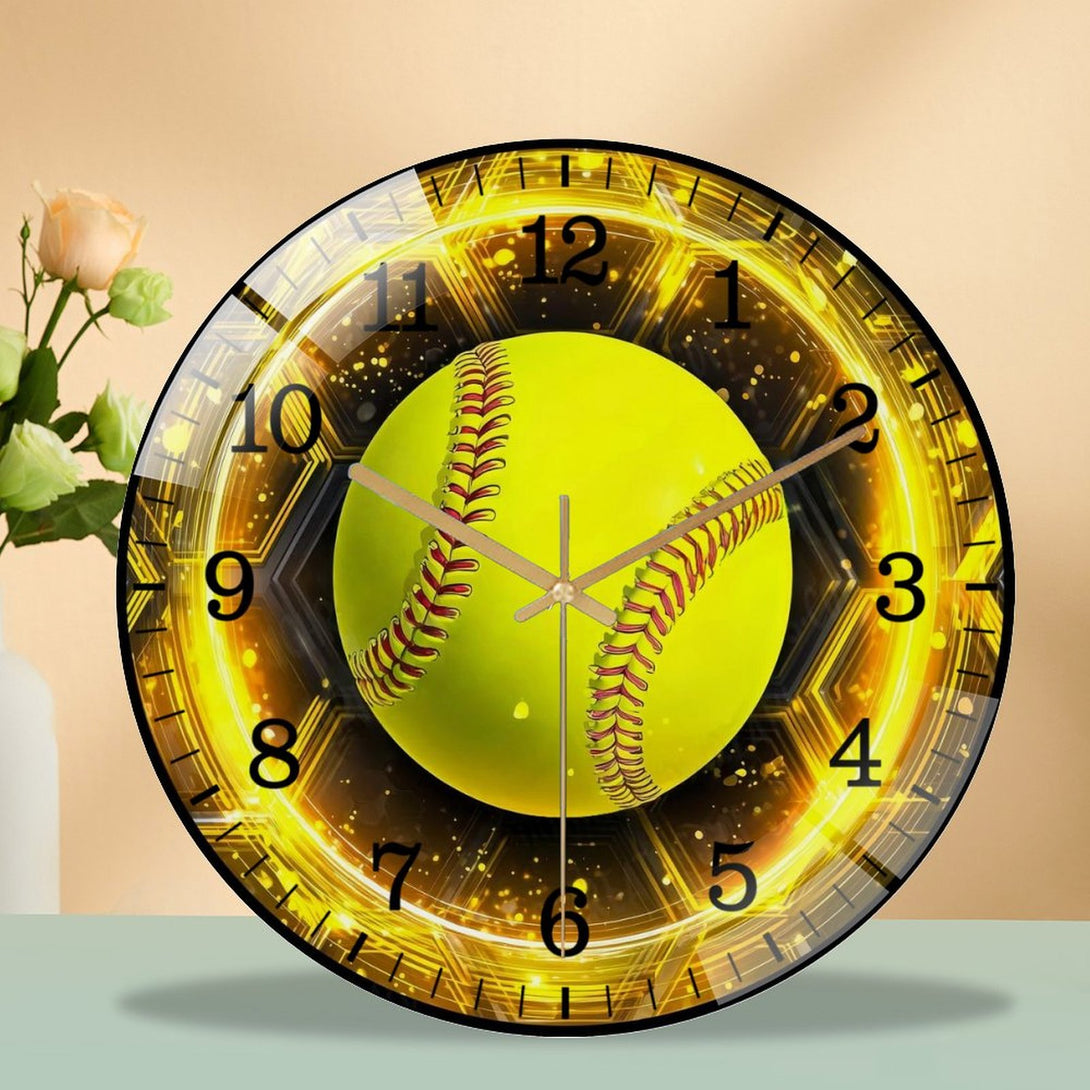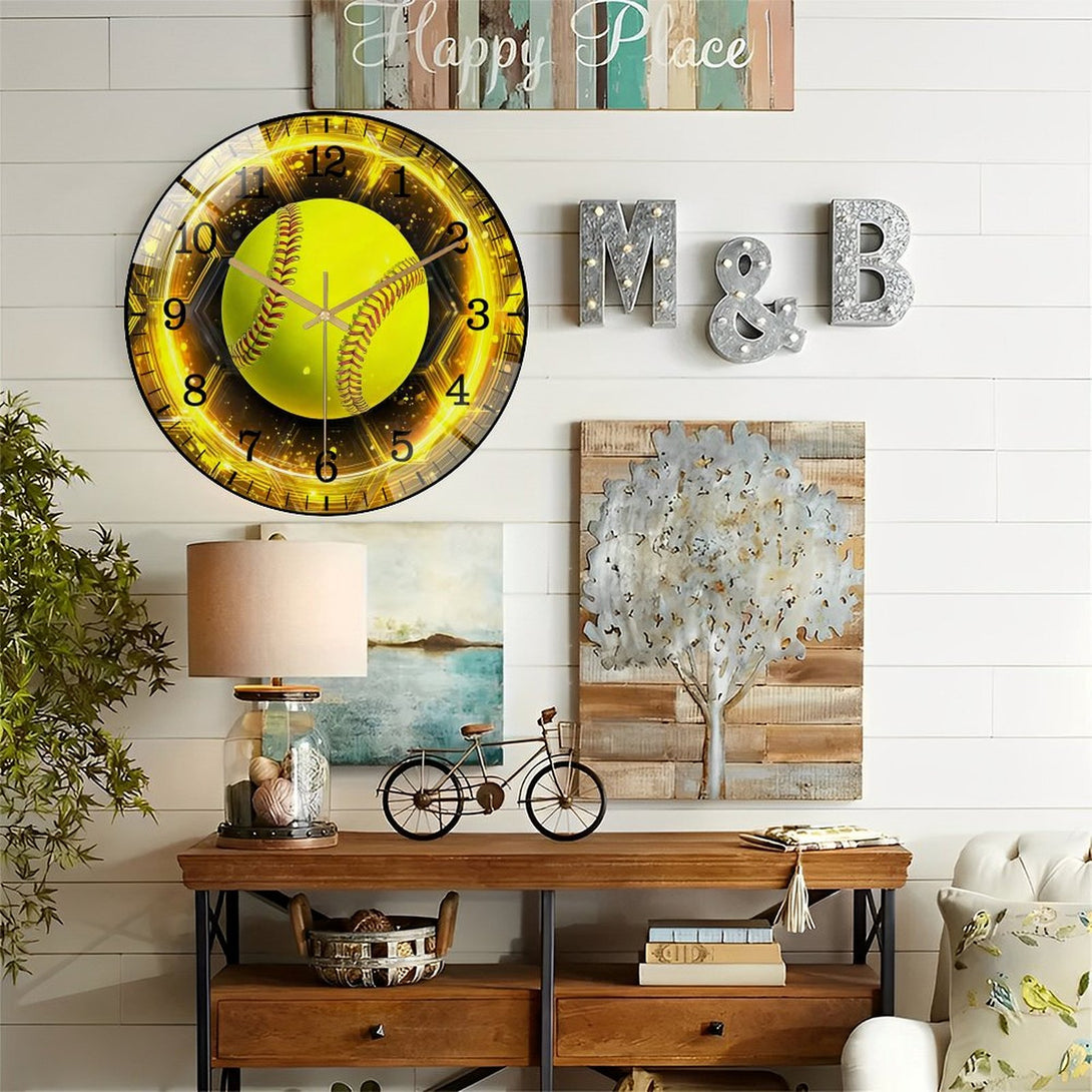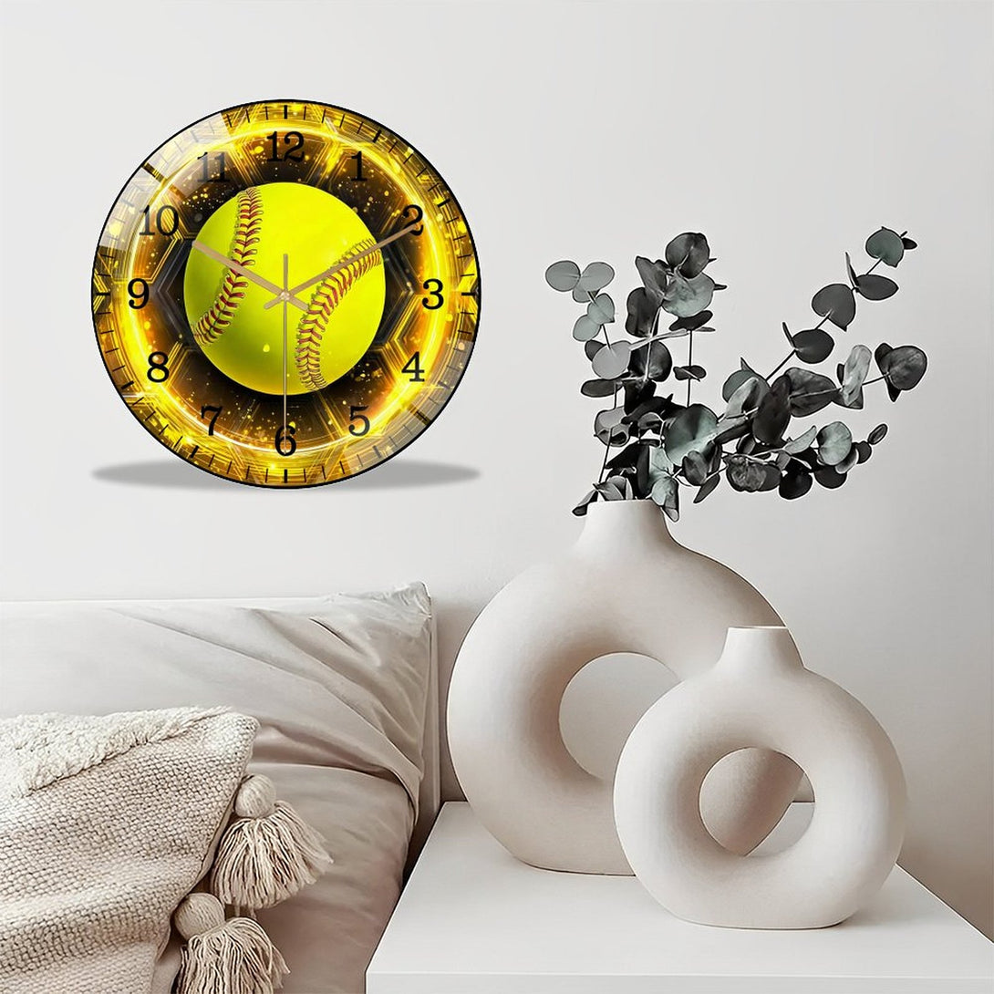 Decor Wall Clocks: Softball Glass Wall Clock, Softball Welcome Wall Clock for Homes, Bars, Offices, Man Caves, Garages, And Living Rooms .Also Makes A Great Gift. Style 12×12inch(30×30cm)