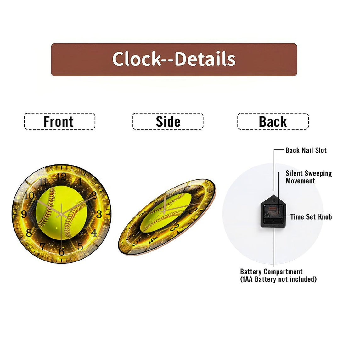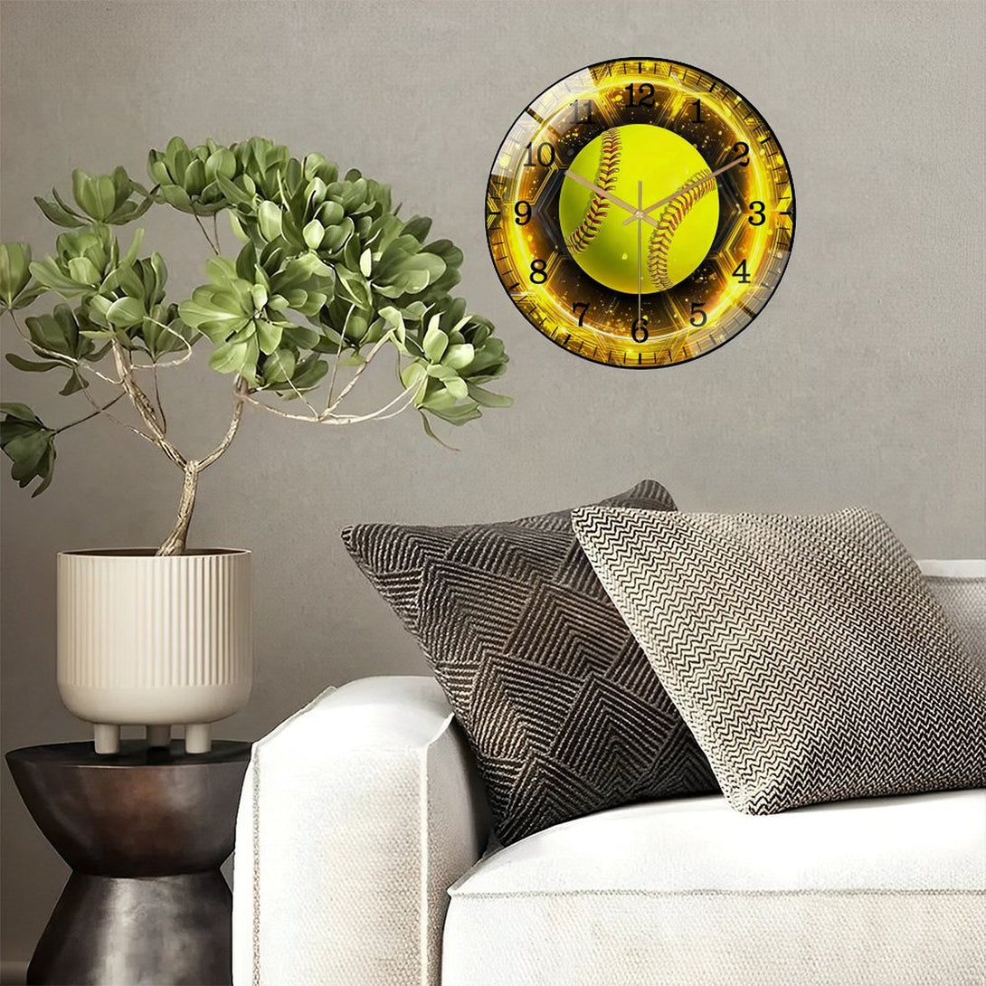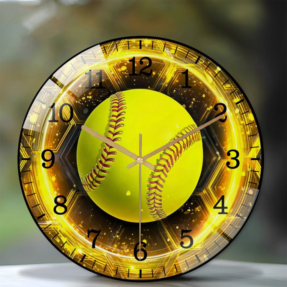 Decor Wall Clocks: Softball Glass Wall Clock, Softball Welcome Wall Clock for Homes, Bars, Offices, Man Caves, Garages, And Living Rooms .Also Makes A Great Gift. Style 12×12inch(30×30cm)