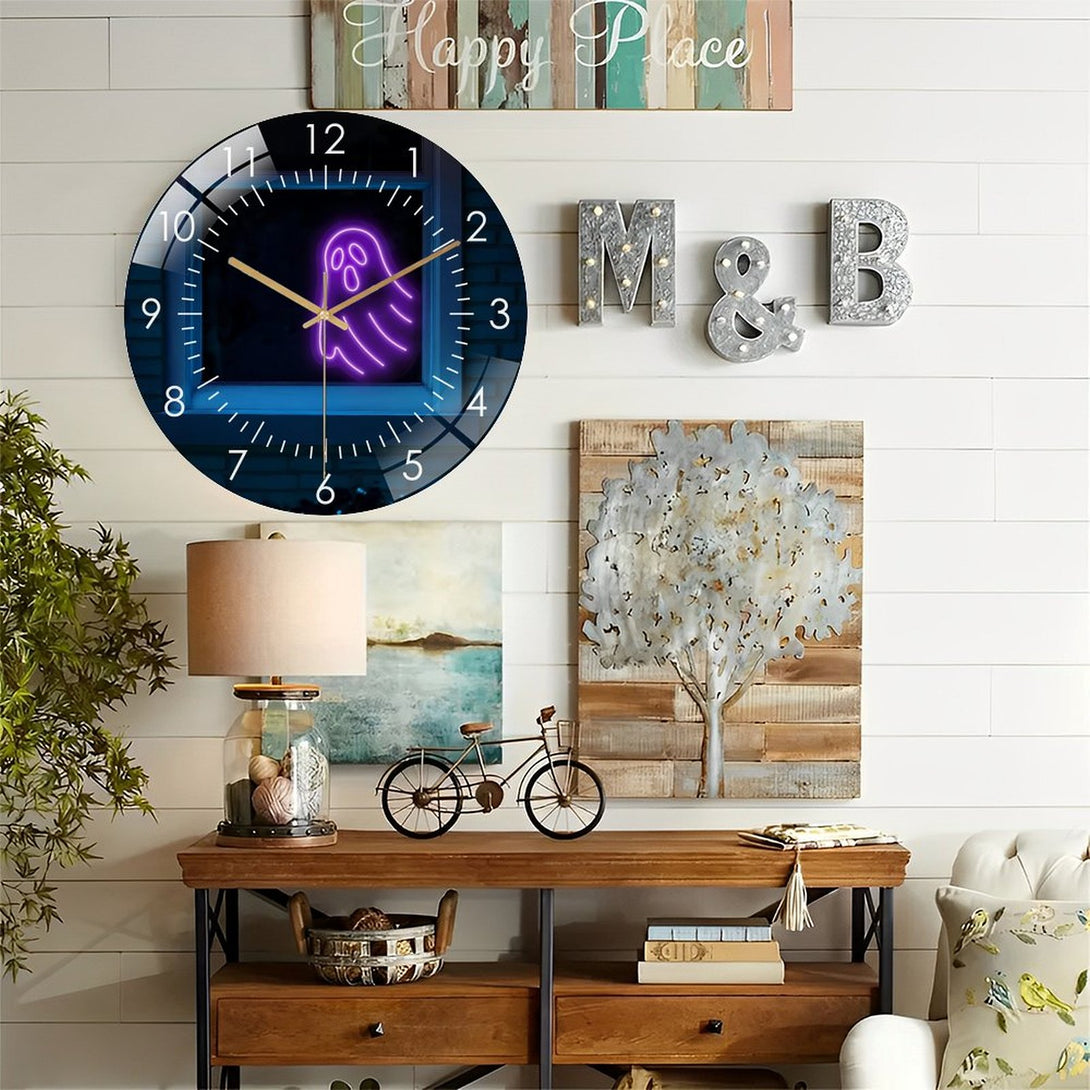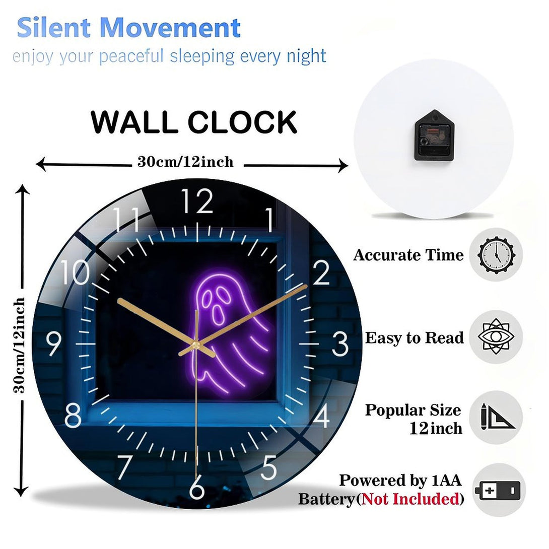 Decor Wall Clocks: Spooky Ghost Glass Wall Clock,Halloween- Window Decor Wall Clock, for Homes, Bars, Offices, Man Caves, Garages, And Living Rooms. Hallo-ween Gift .Also Makes A Grea. Style 12×12inch