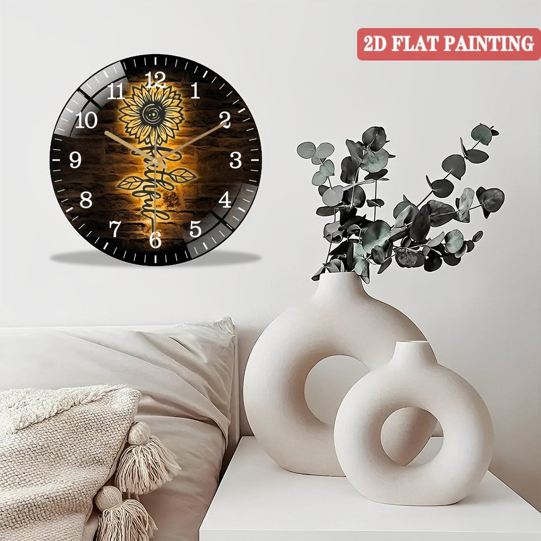 Sunflower Faith Glass Wall Clocks,Christ Glass Wall Clocks,Home Decor God Faith Cross Decoration Religious Lord Housewarming Christmas Birthday