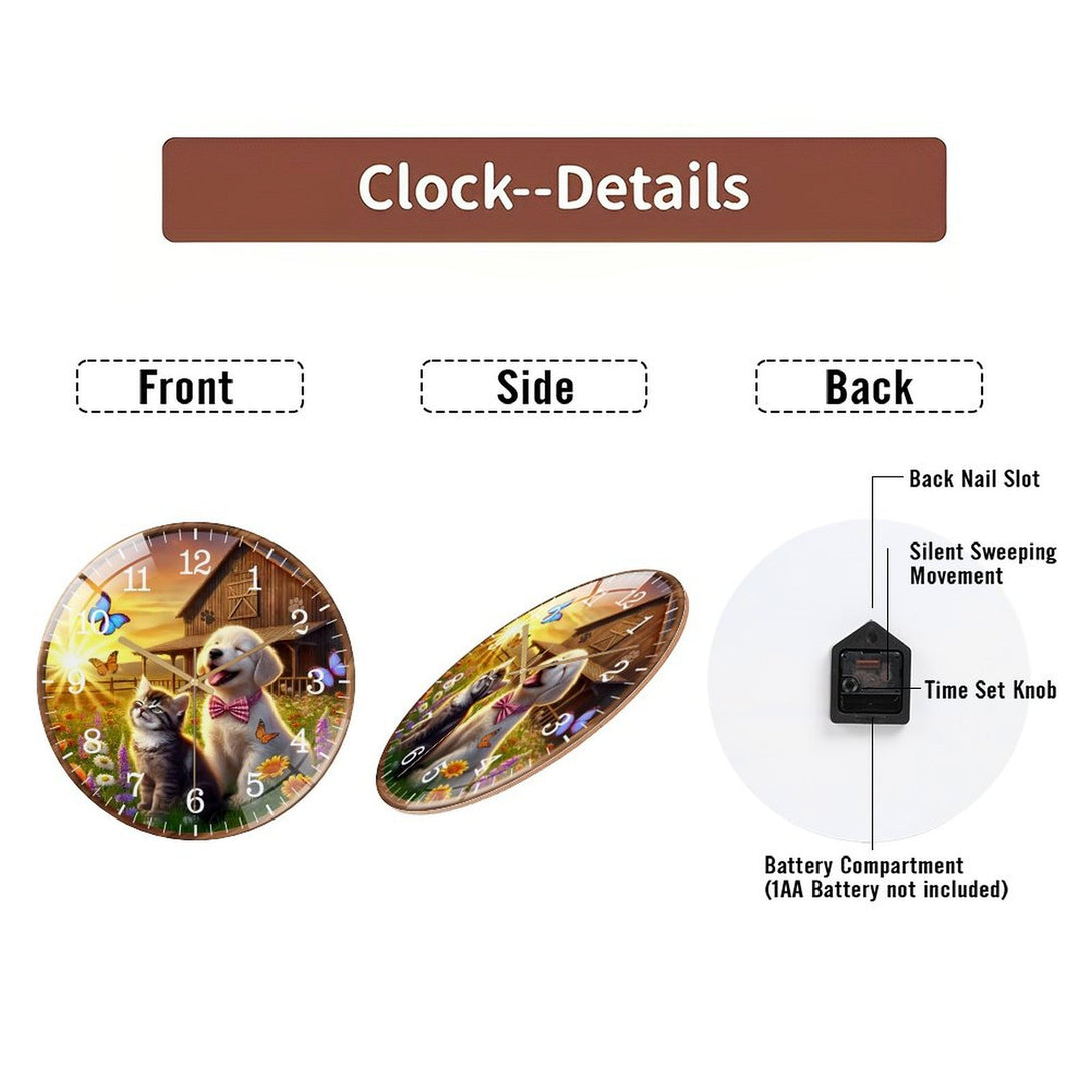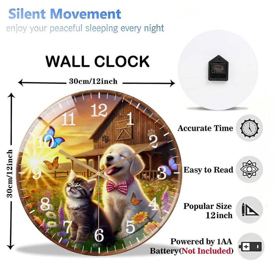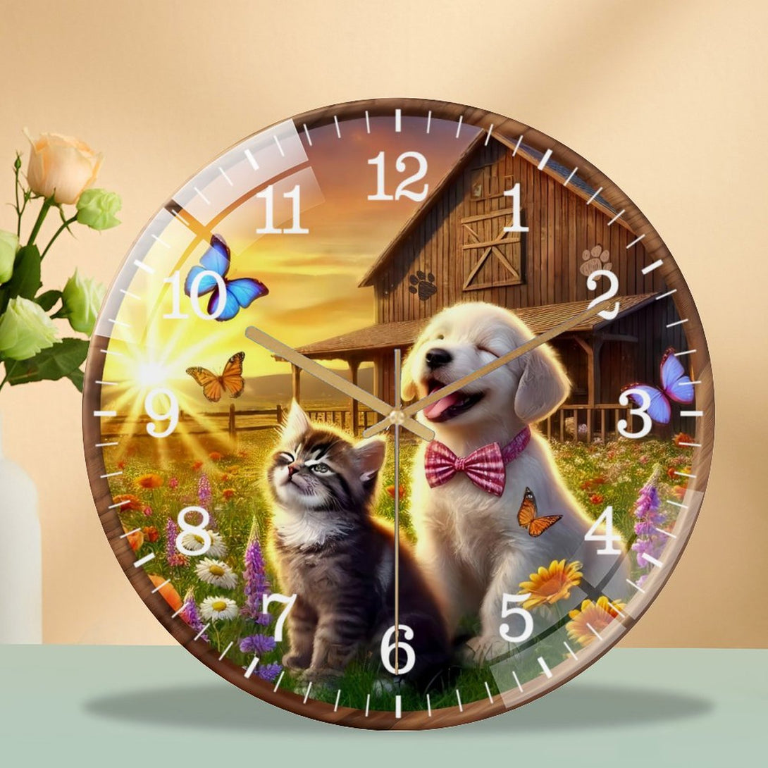 Sunshine & Paw Prints Glass Wall Clock,Rustic Farmhouse Dog And CatGlass Wall Clock for Homes, Bars, Offices, Man Caves, Garages, And Living Rooms. Also Makes A Great Gift.,12×12inch(30×30cm)