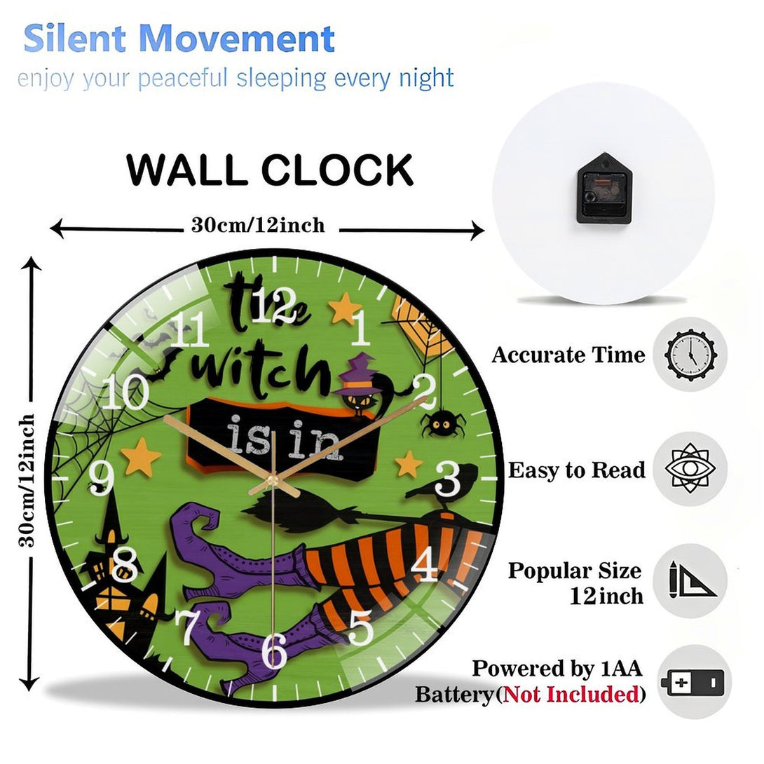 The Witch Is In Glass Wall Clock, Hallo-ween Decor, Spooky Season, Halloween Welcome Glass Wall Clock for Homes, Bars, Offices, Man Caves, Garages, And Living Rooms. Also Makes A Great,12×12inch(30×30cm)