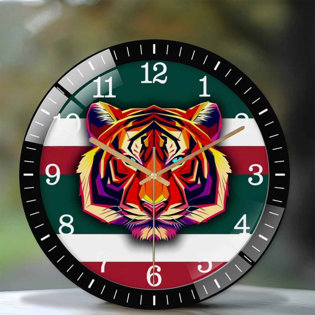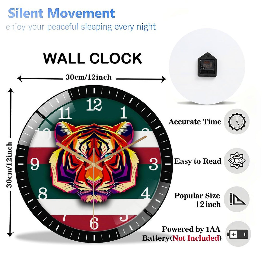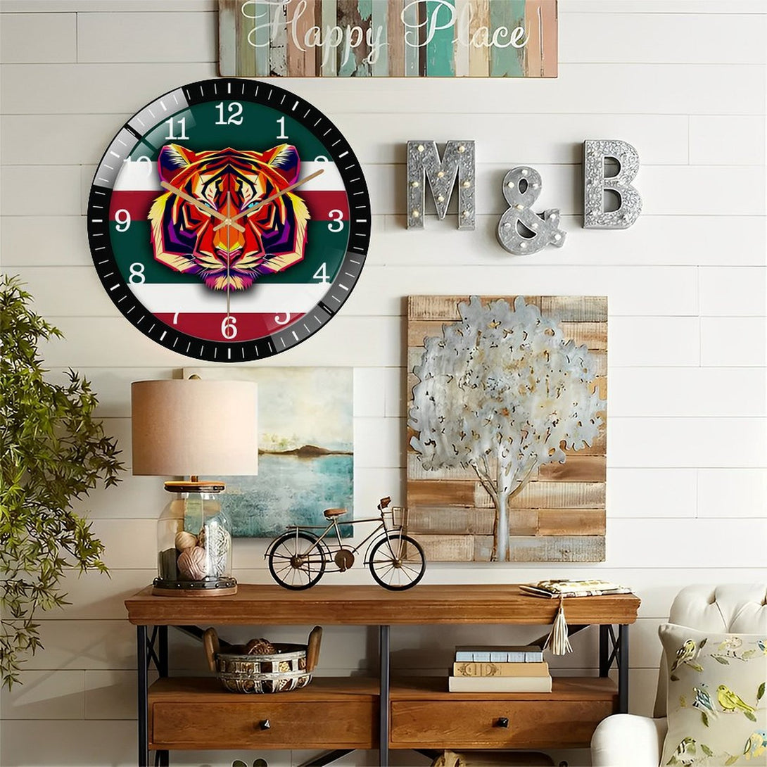 Decor Wall Clocks: Tigers Circula Glass Wall Clock for Homes, Bars, Offices, Man Caves, Garages, And Living Rooms. Also Makes A Great Gift. Style 12×12inch(30×30cm)