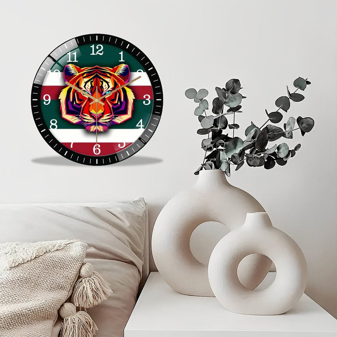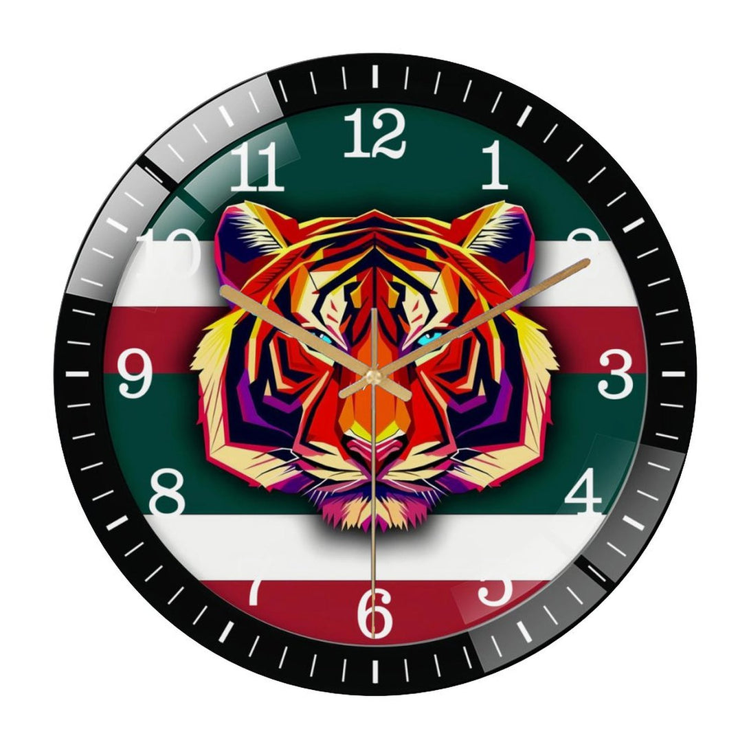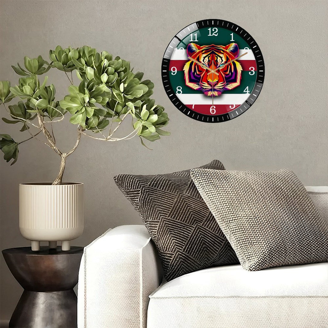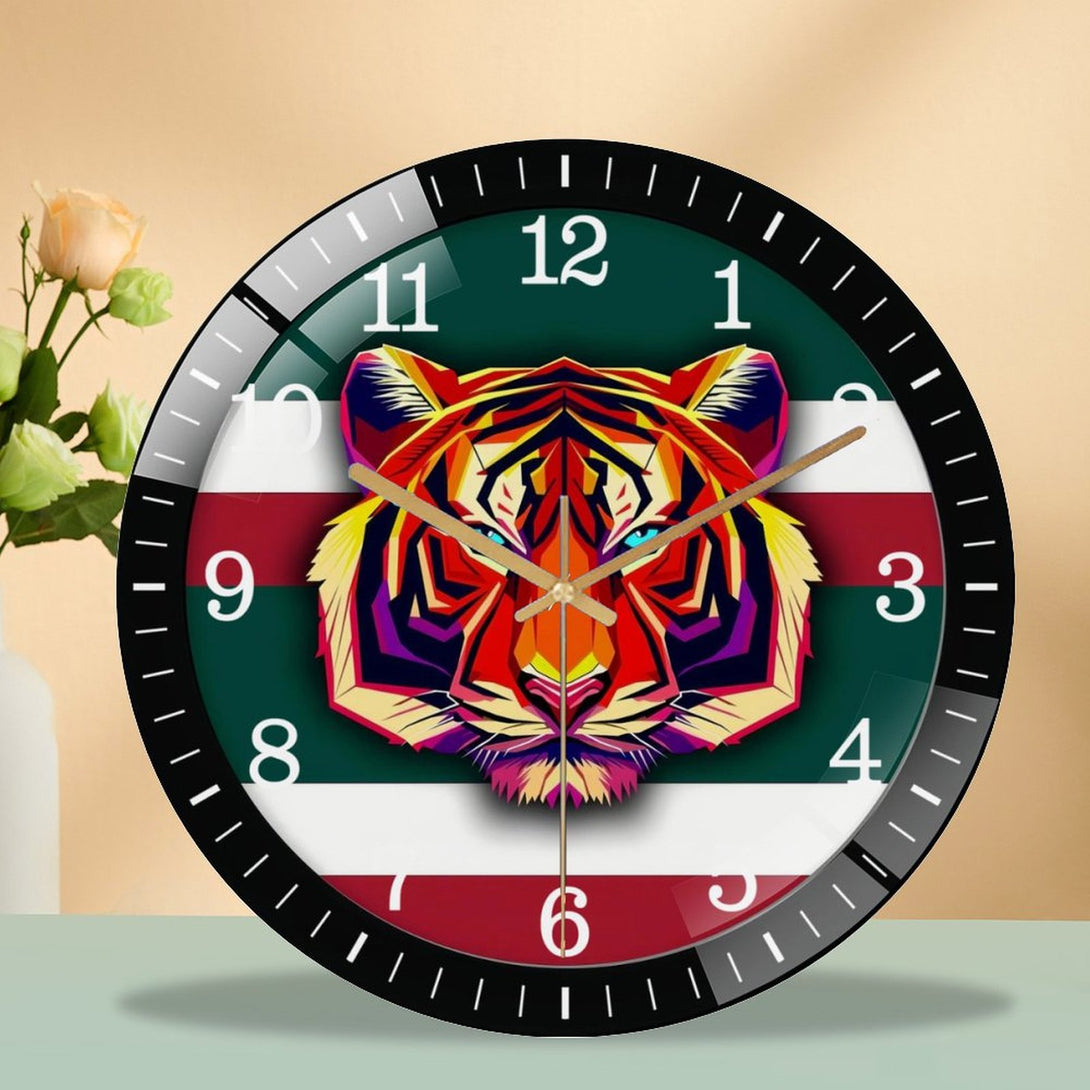 Decor Wall Clocks: Tigers Circula Glass Wall Clock for Homes, Bars, Offices, Man Caves, Garages, And Living Rooms. Also Makes A Great Gift. Style 12×12inch(30×30cm)