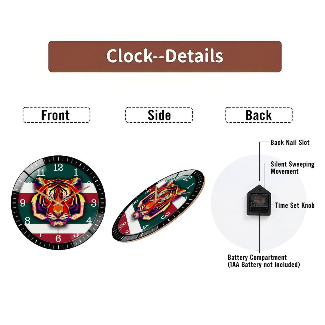 Tigers Circula Glass Wall Clock for Homes, Bars, Offices, Man Caves, Garages, And Living Rooms. Also Makes A Great Gift.,12×12inch(30×30cm)