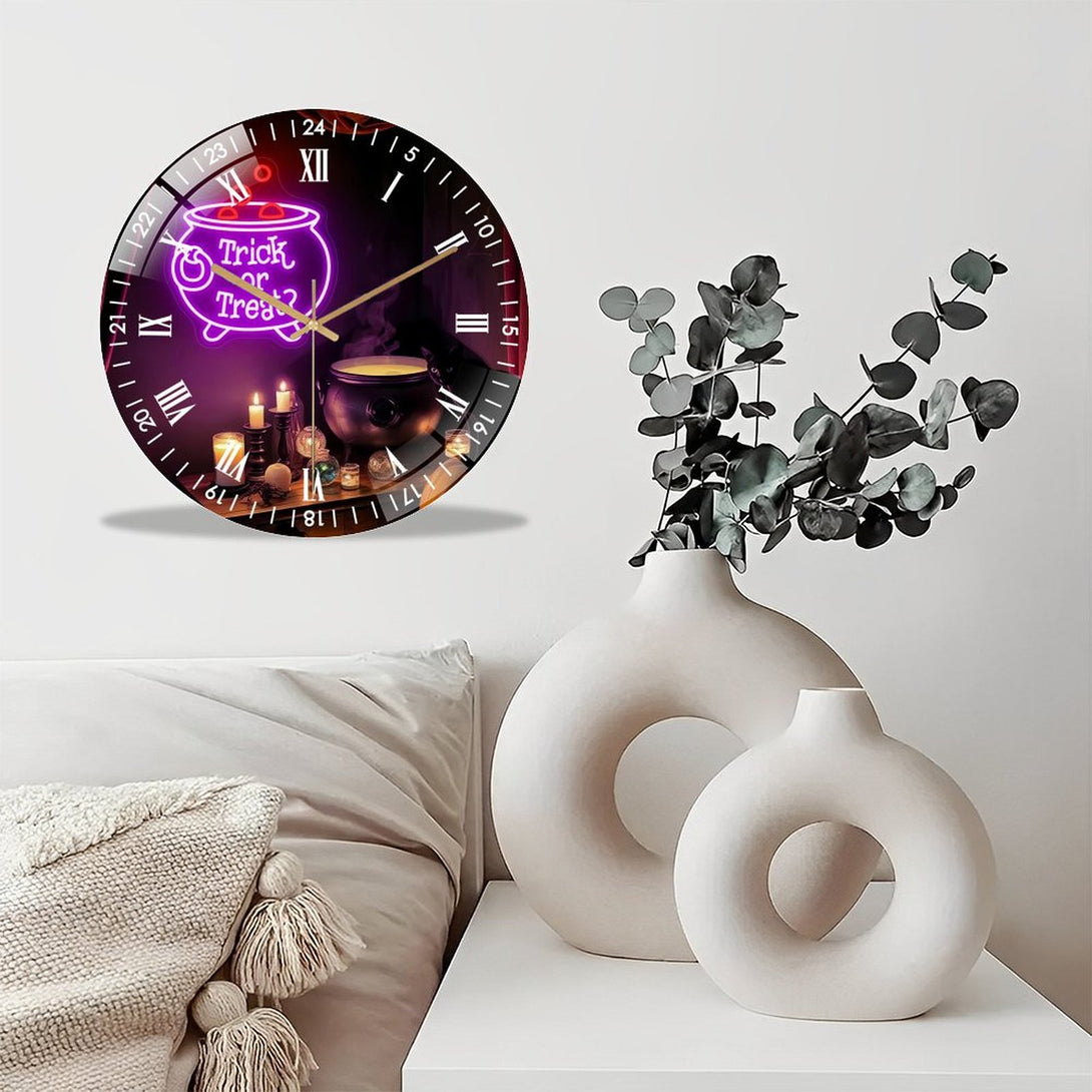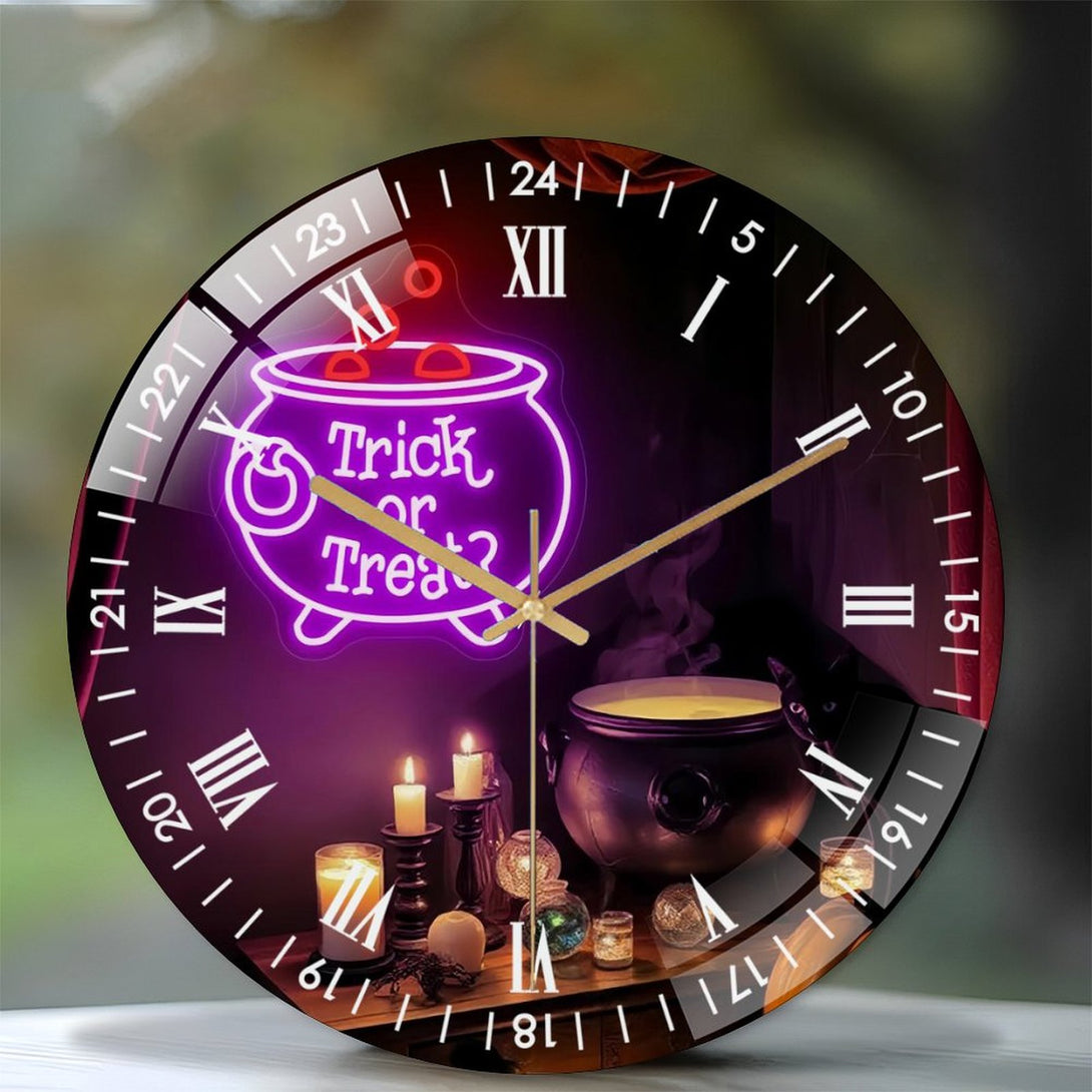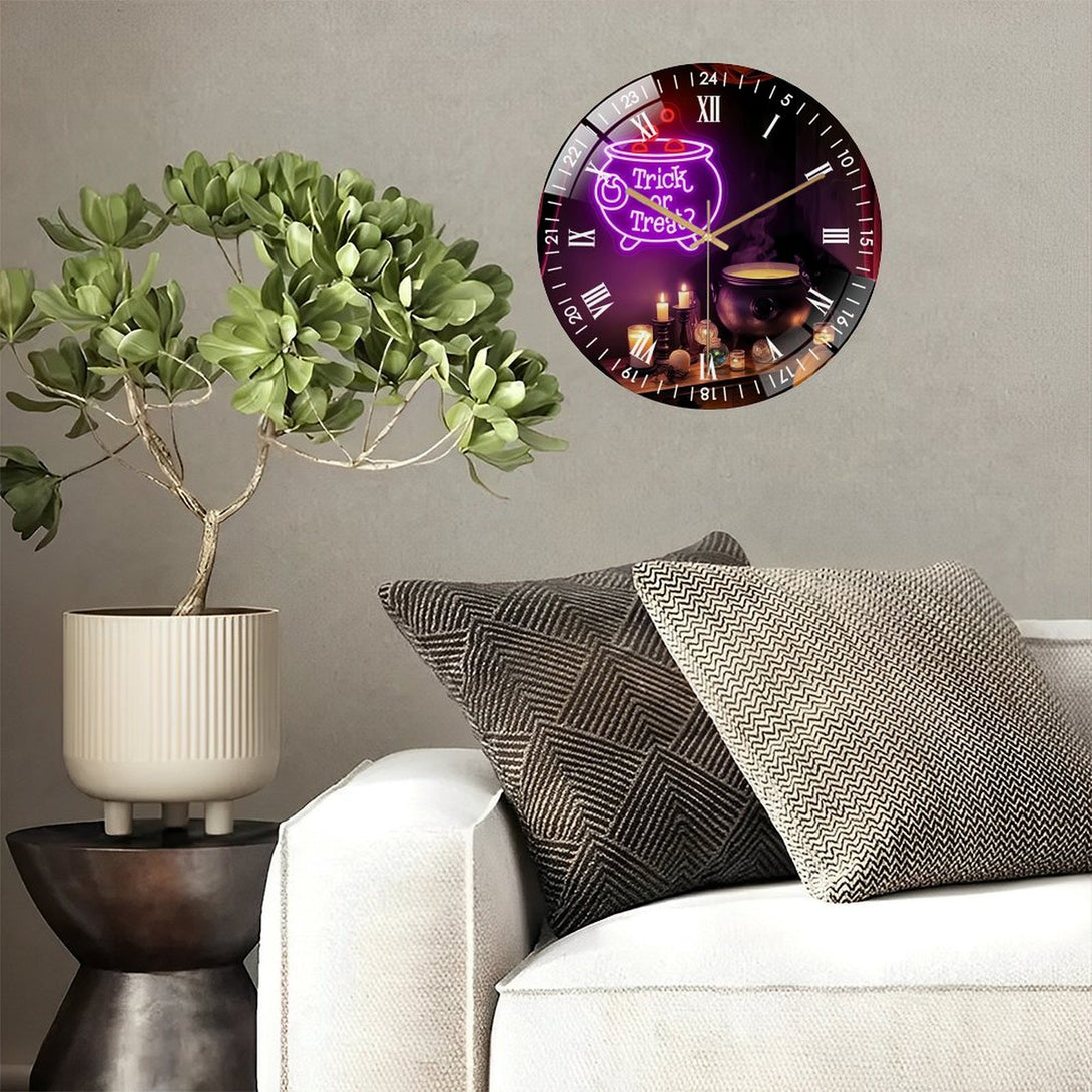 Decor Wall Clocks: Trick Or Treat Glass Wall Clock,Halloween Witch Cauldron Decor Wall Clock, for Homes, Bars, Offices, Man Caves, Garages, And Living Rooms. Hallo-ween Gift .Also Makes A Grea.