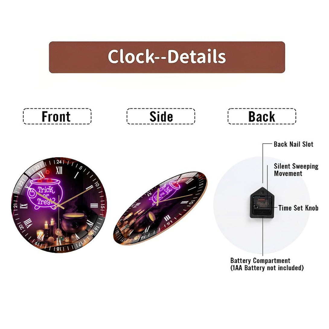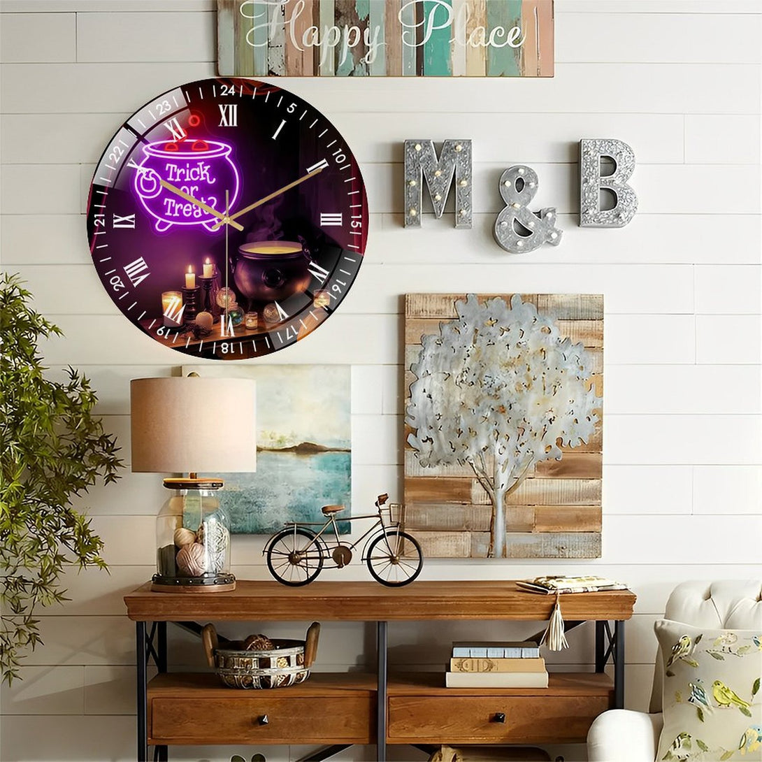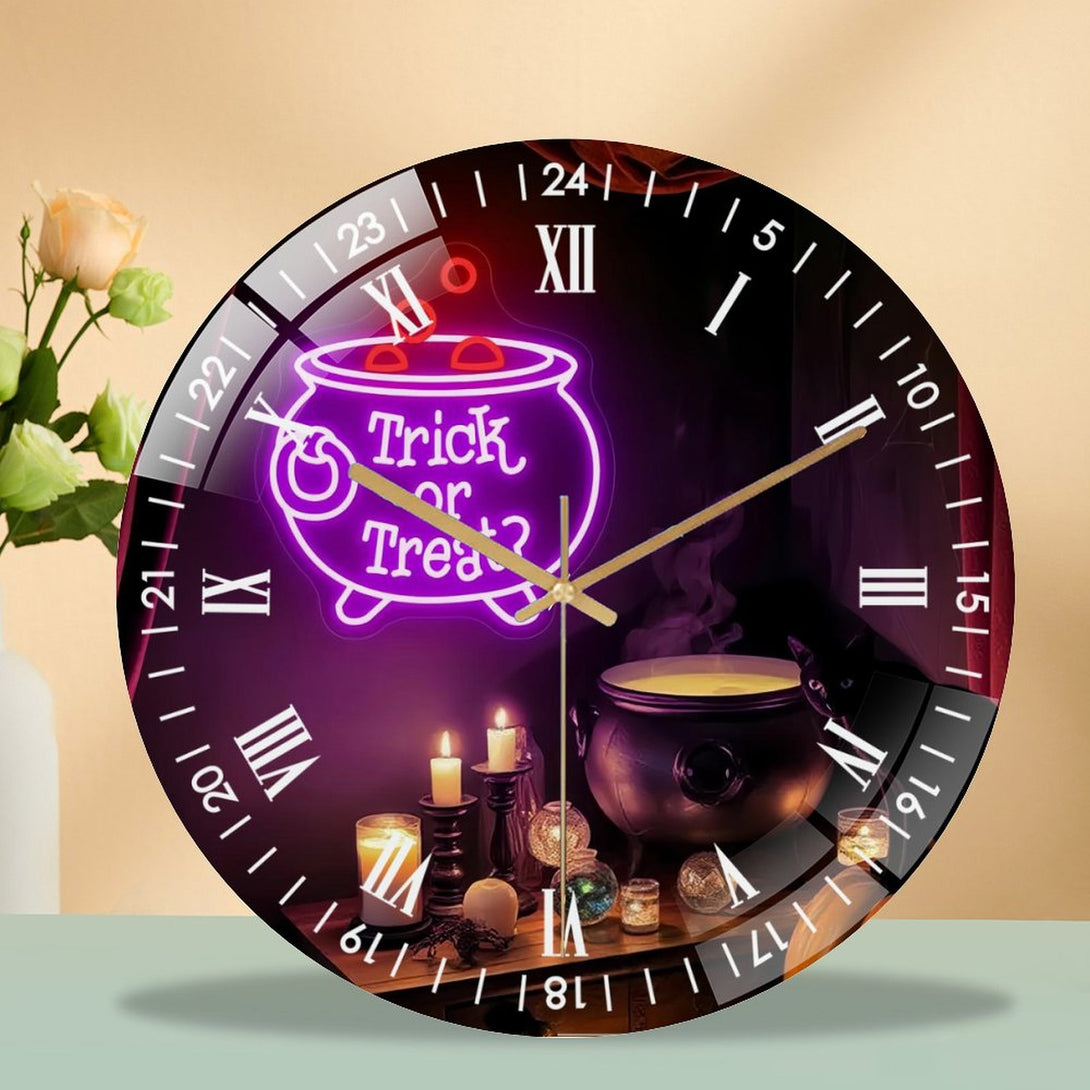 Decor Wall Clocks: Trick Or Treat Glass Wall Clock,Halloween Witch Cauldron Decor Wall Clock, for Homes, Bars, Offices, Man Caves, Garages, And Living Rooms. Hallo-ween Gift .Also Makes A Grea.
