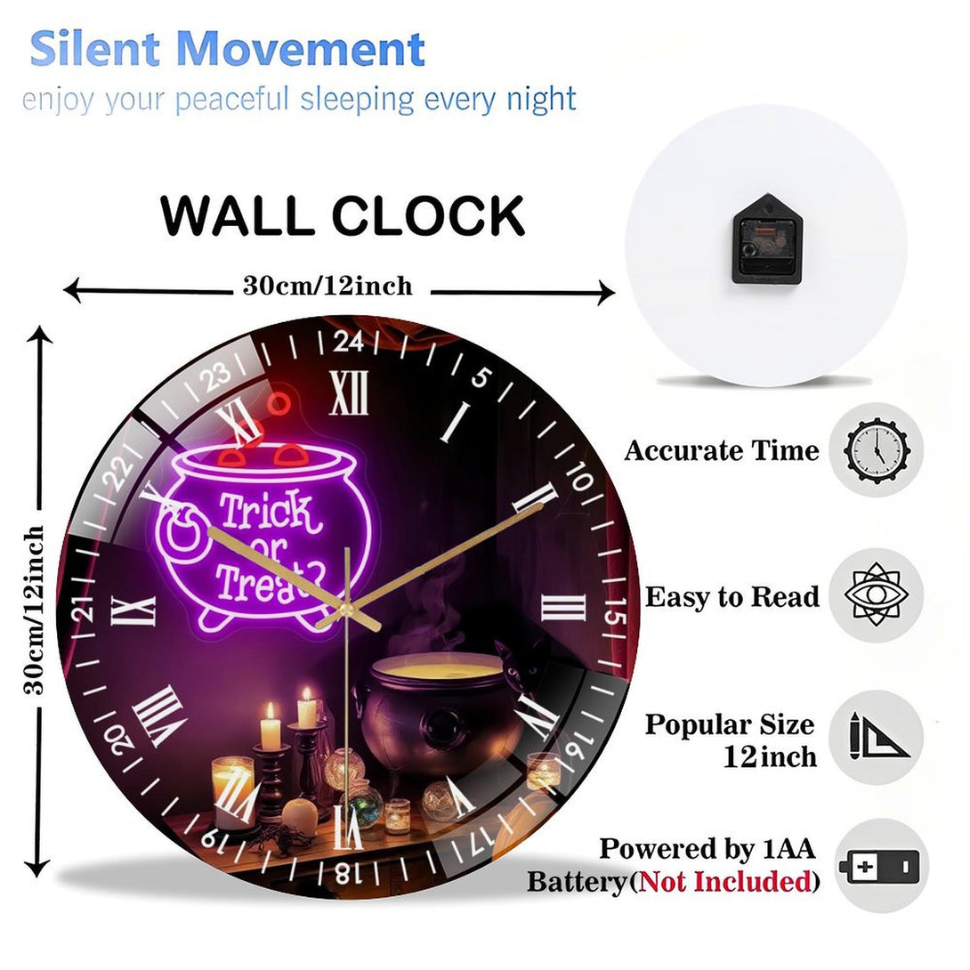 Trick Or Treat Glass Wall Clock,Halloween Witch Cauldron Decor Wall Clock, for Homes, Bars, Offices, Man Caves, Garages, And Living Rooms. Hallo-ween Gift .Also Makes A Grea.,12×12inch(30×30cm)