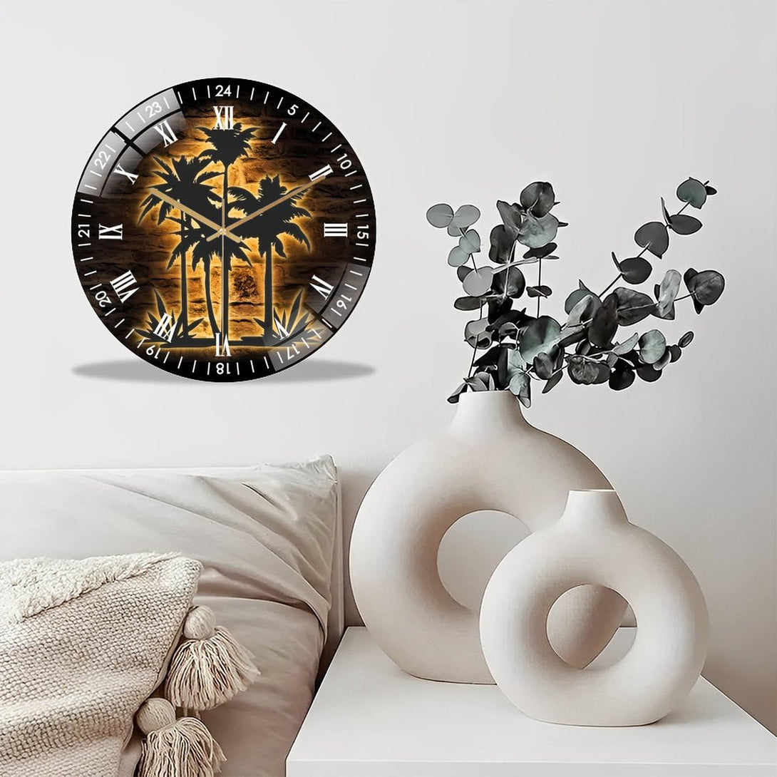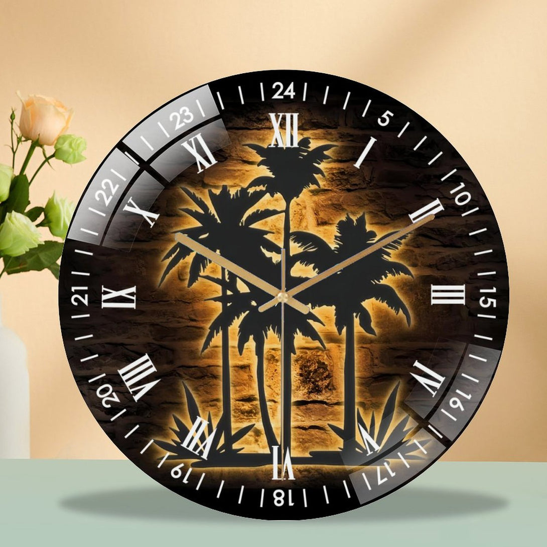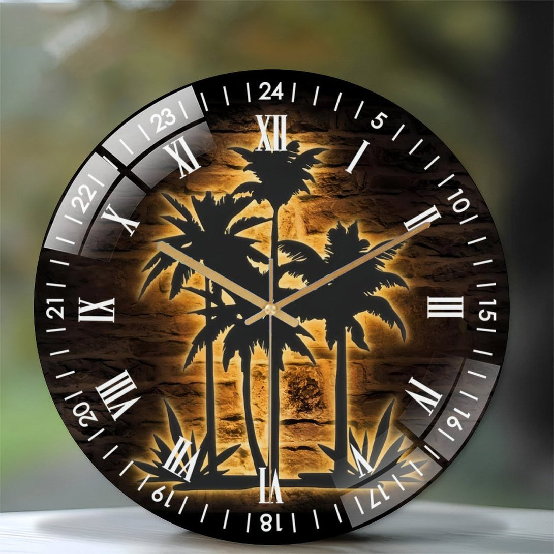 Decor Wall Clocks: Tropical Palm Tree Glass Wall Clock,Beach House Decoration Wall Clock, for Homes, Bars, Offices, Man Caves, Garages, And Living Rooms. Halloween Nursery Decoration