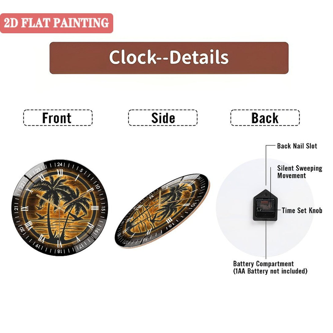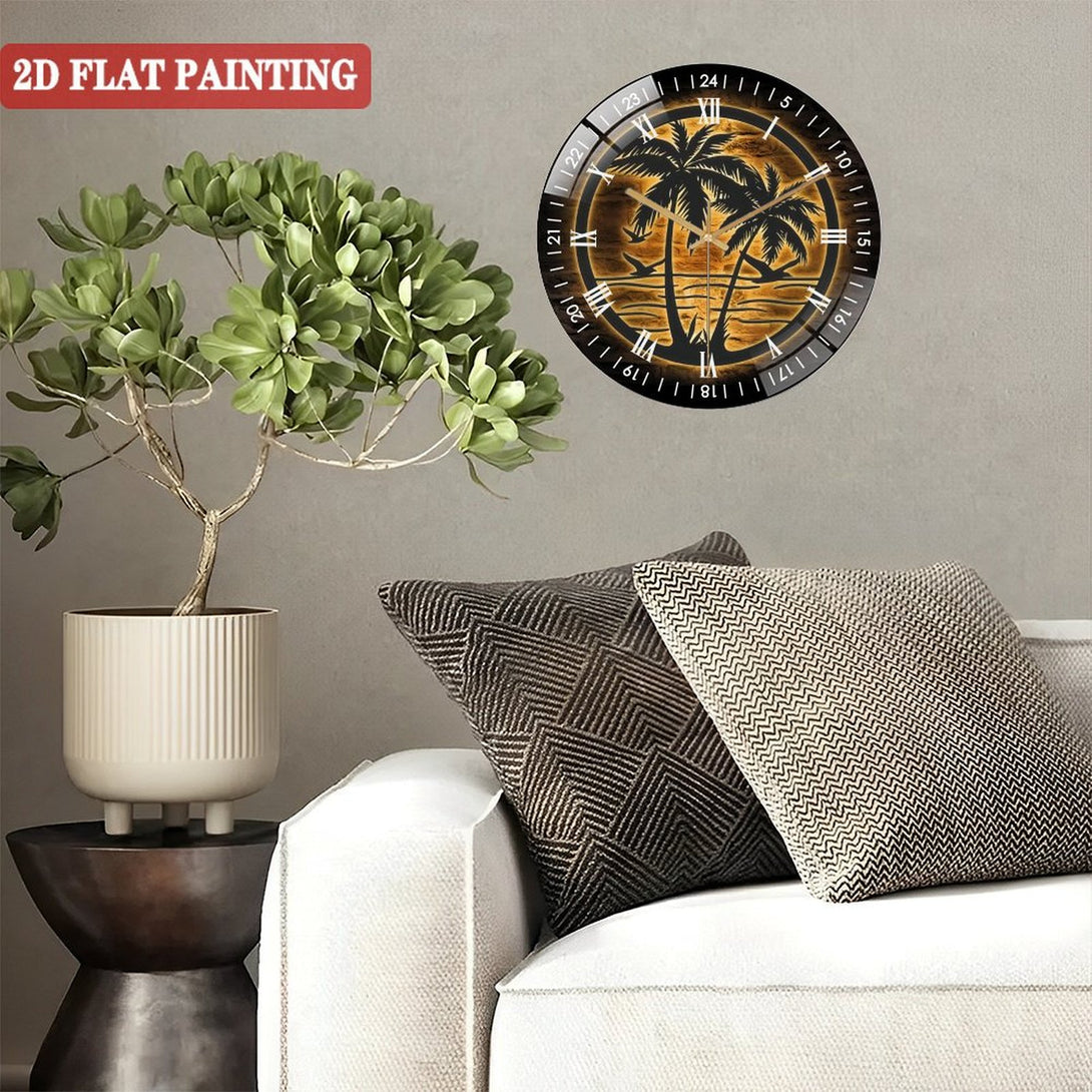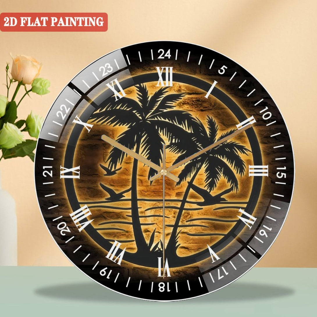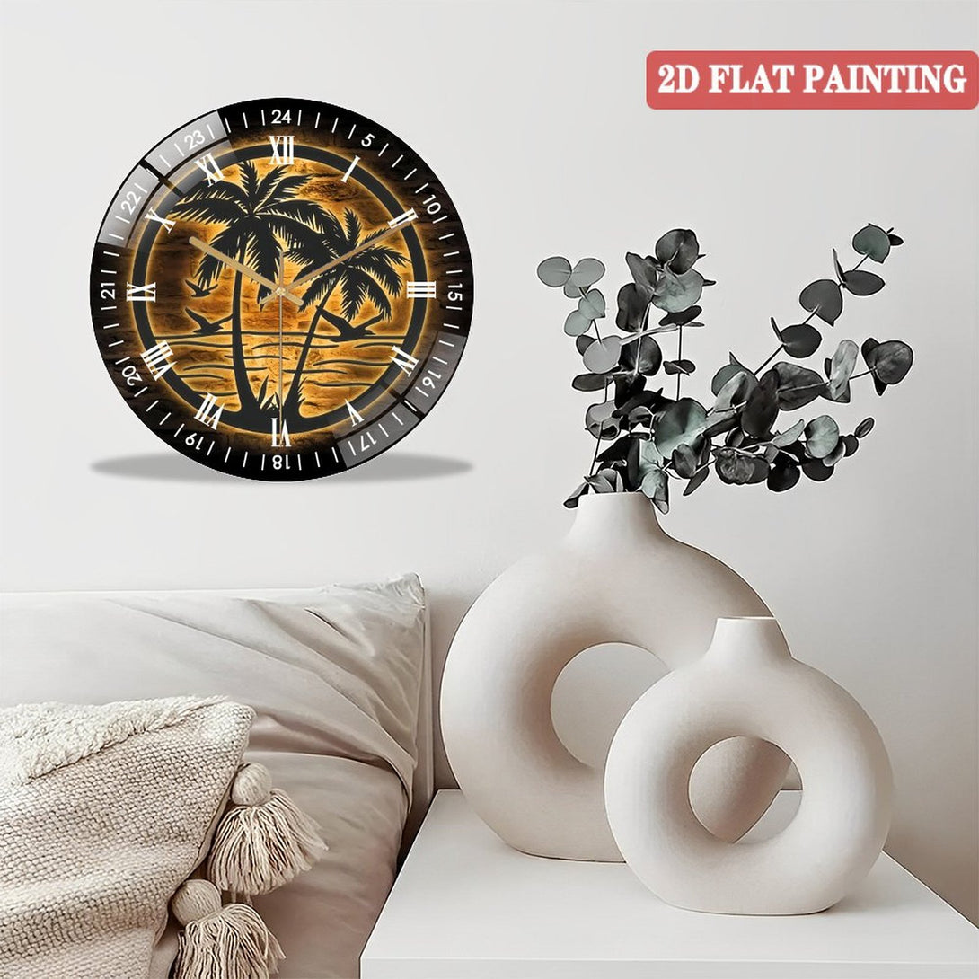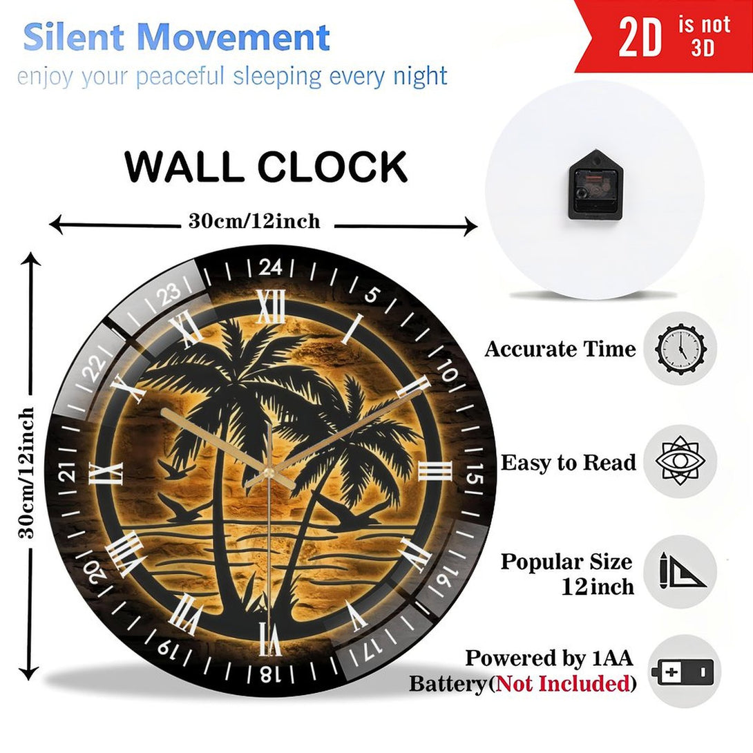 Tropical Palm Tree Glass Wall Clock,Welcome Beach House Decoration Wall Clock, for Homes, Bars, Offices, Man Caves, Garages, And Living Rooms. Halloween Nursery Decoration Man Cave Housewarming Bi,12×12inch(30×30cm)
