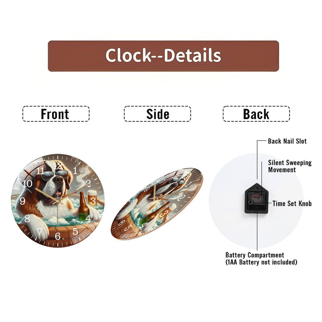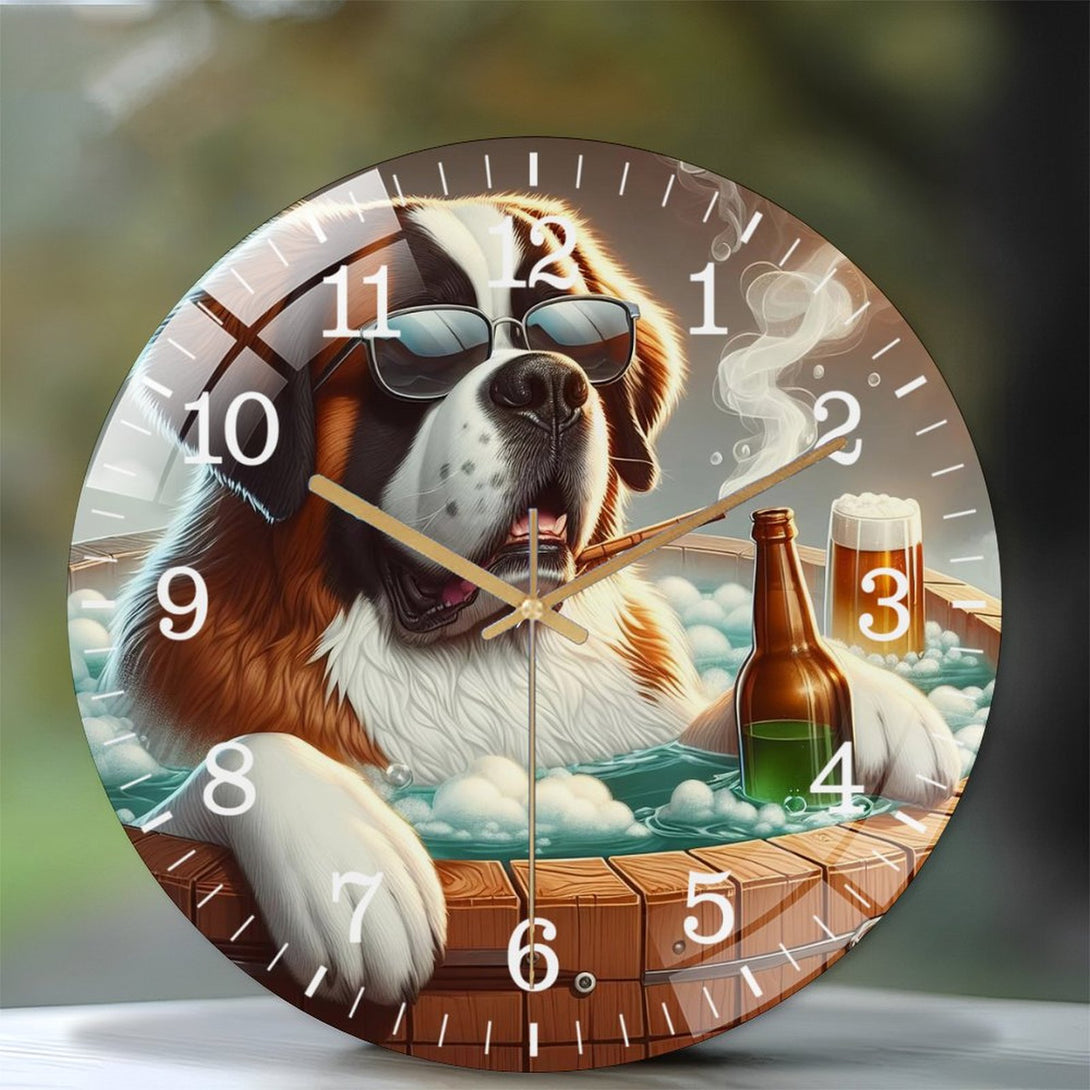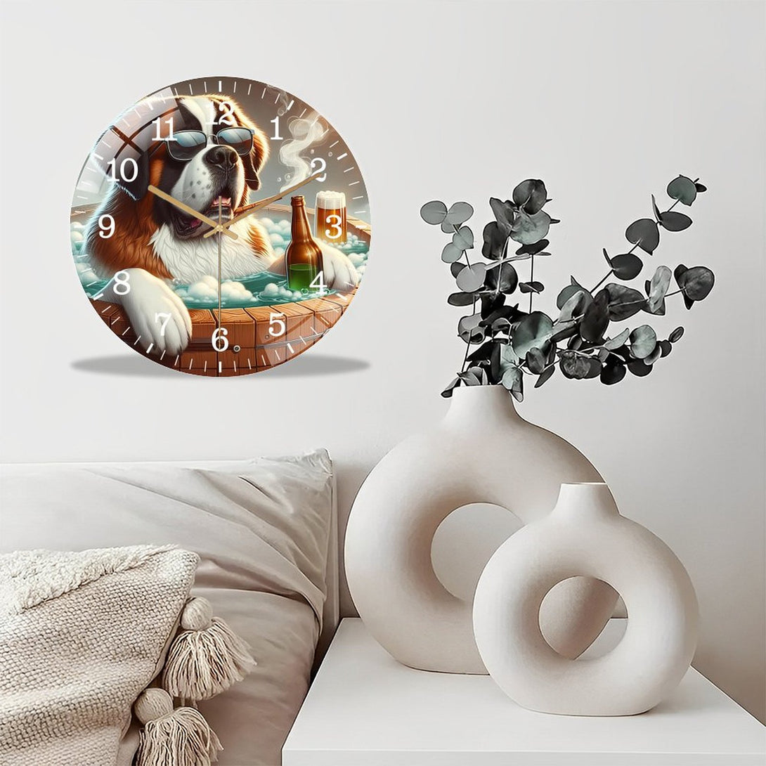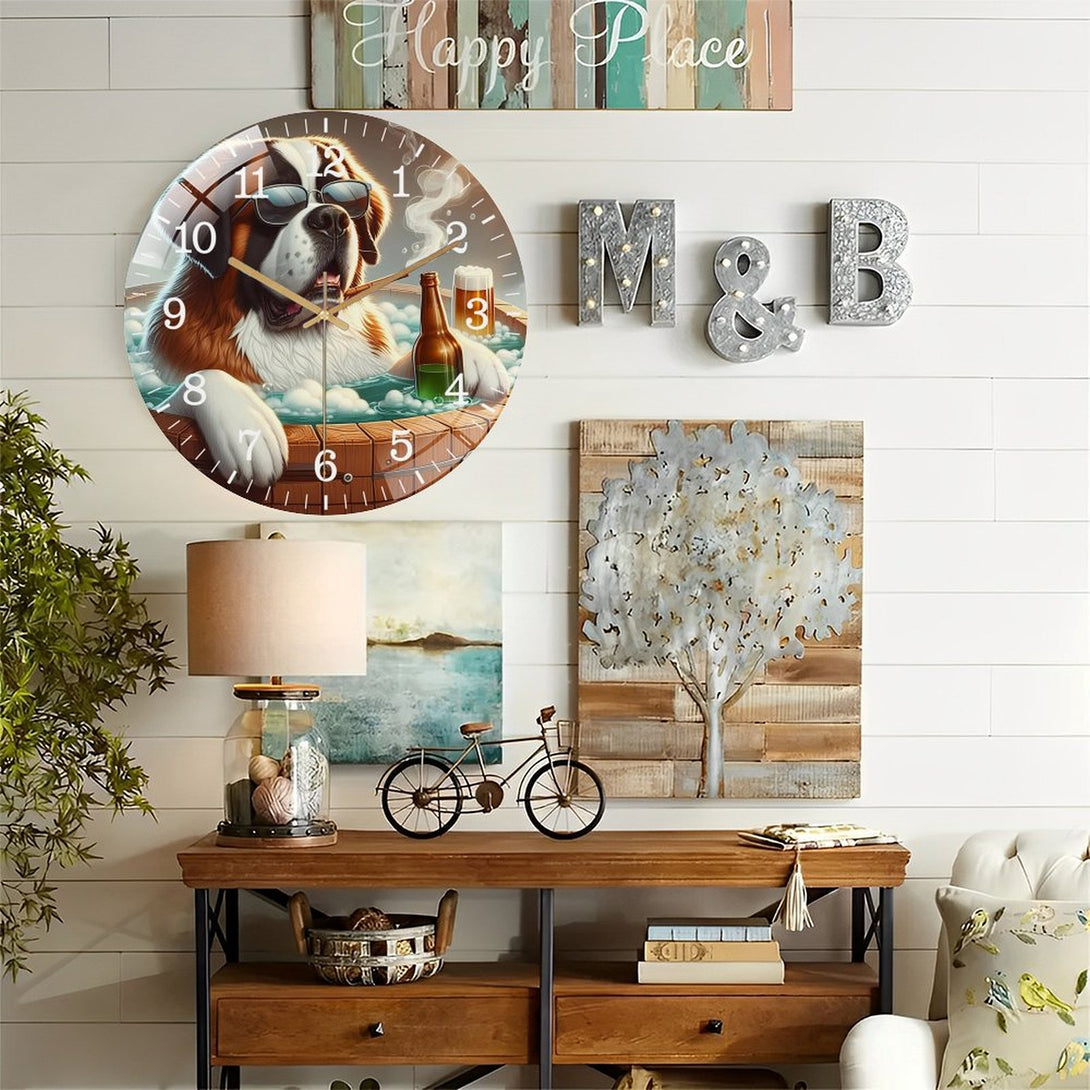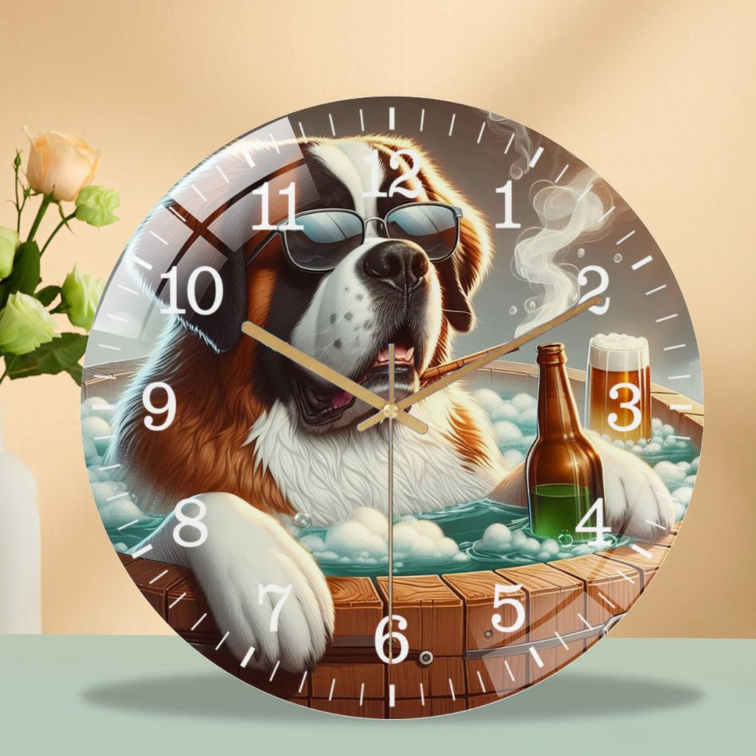 Decor Wall Clocks: Unwind with Your Saint Bernard in A Hot Tub Glass Wall Clock ,Pet Portrait Wall Clock ,Dog Lover Wall Clock for Homes, Bars, Offices, Man Caves, Garages, And Living Rooms.