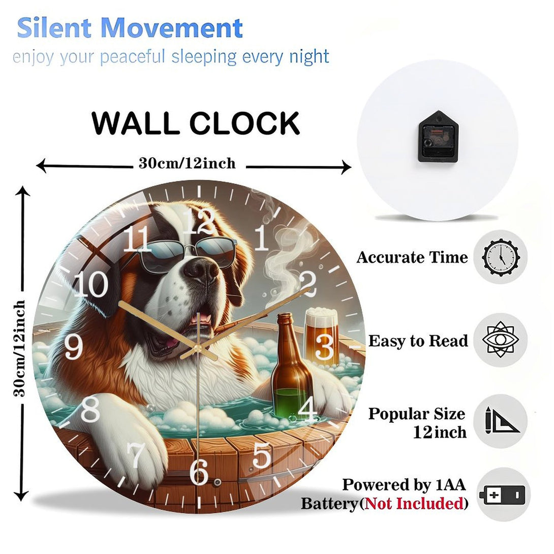 Unwind with Your Saint Bernard in A Hot Tub Glass Wall Clock ,Pet Portrait Wall Clock ,Dog Lover Wall Clock for Homes, Bars, Offices, Man Caves, Garages, And Living Rooms.,12×12inch(30×30cm)