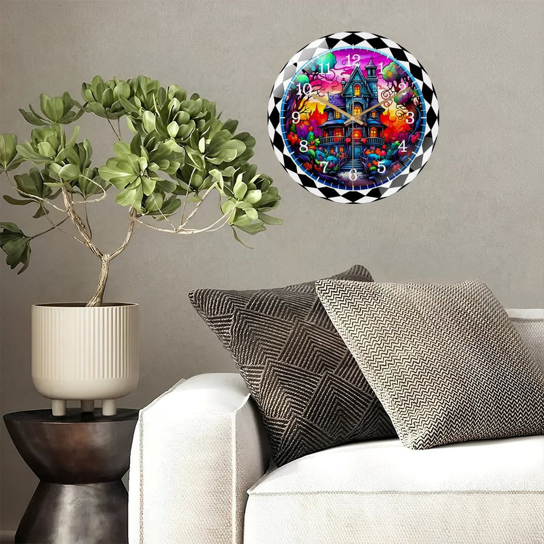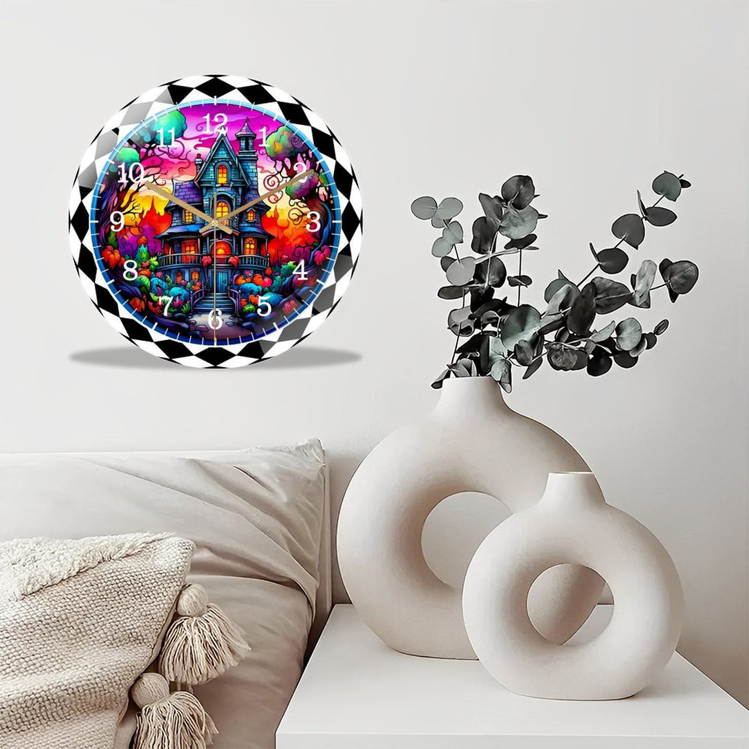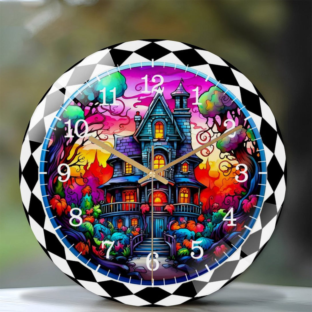 Decor Wall Clocks: Vibrant Hallo-ween Haunted House Glass Wall Clock ,Spooky Decor Wall Clock for Homes, Bars, Offices, Man Caves, Garages, And Living Rooms. Hallo-ween Gift
