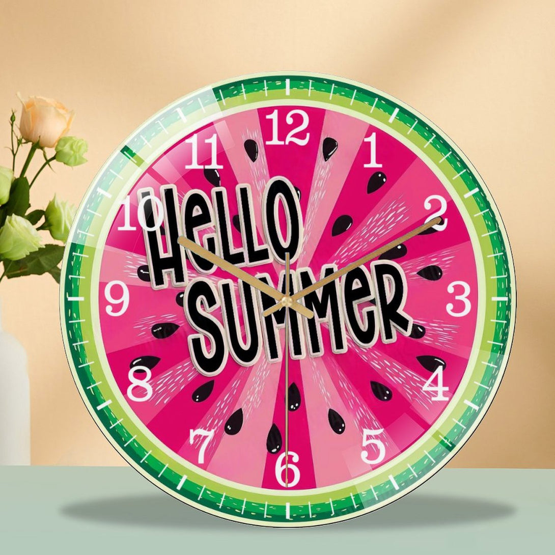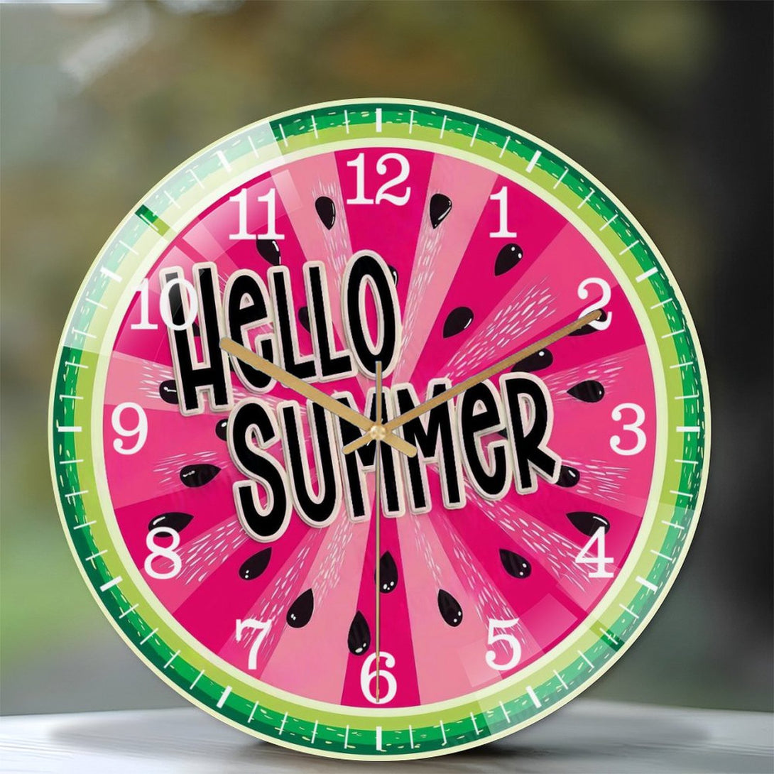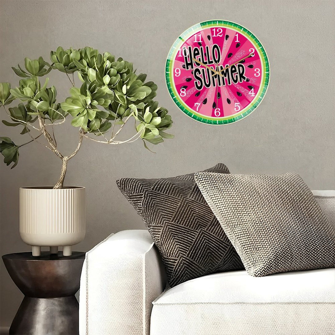 Decor Wall Clocks: Watermelon Glass Wall Clock, Hello Summer Decor Wall Clock for Homes, Bars, Offices, Man Caves, Garages, And Living Rooms .Also Makes A Great Gift. Style 12×12inch(30×30cm)