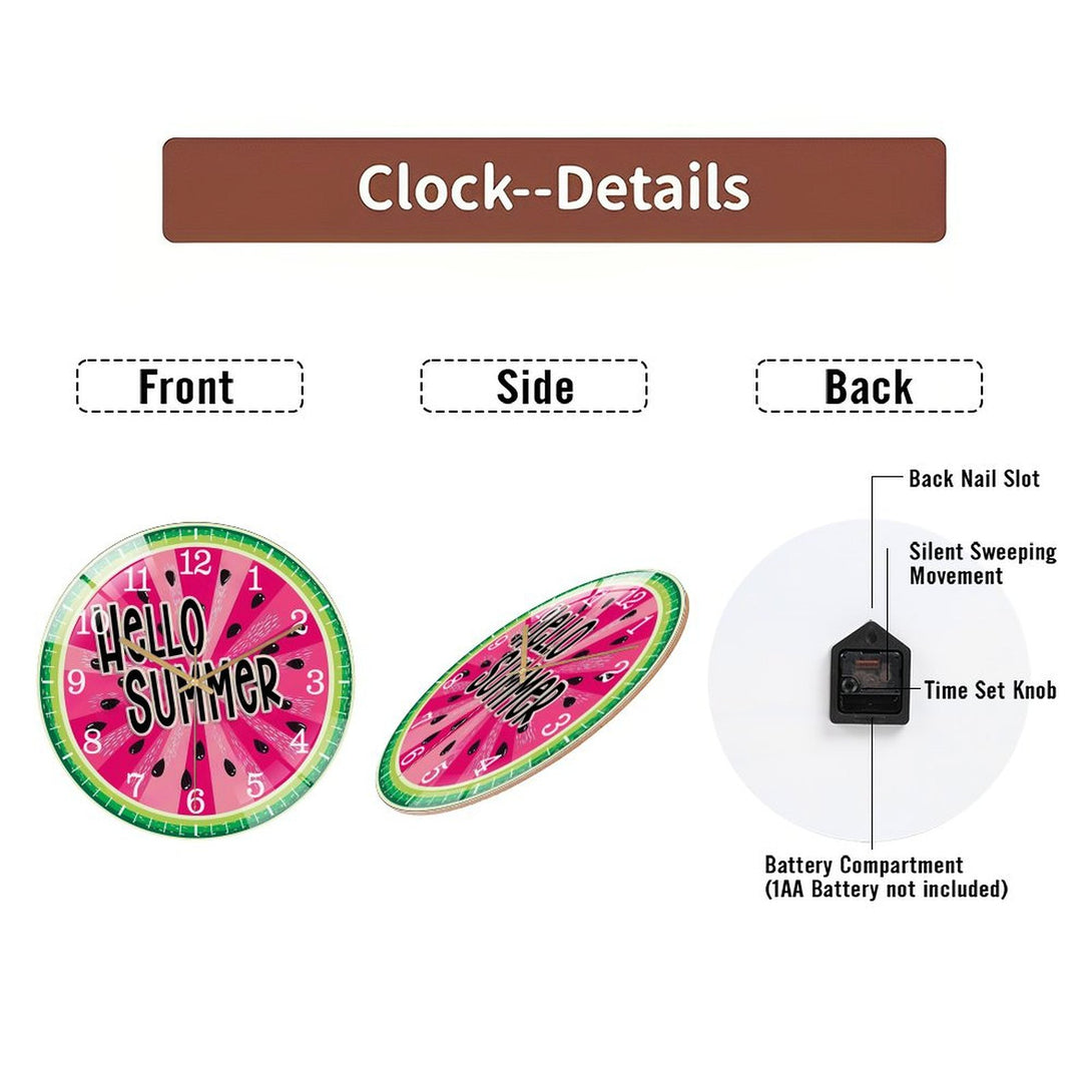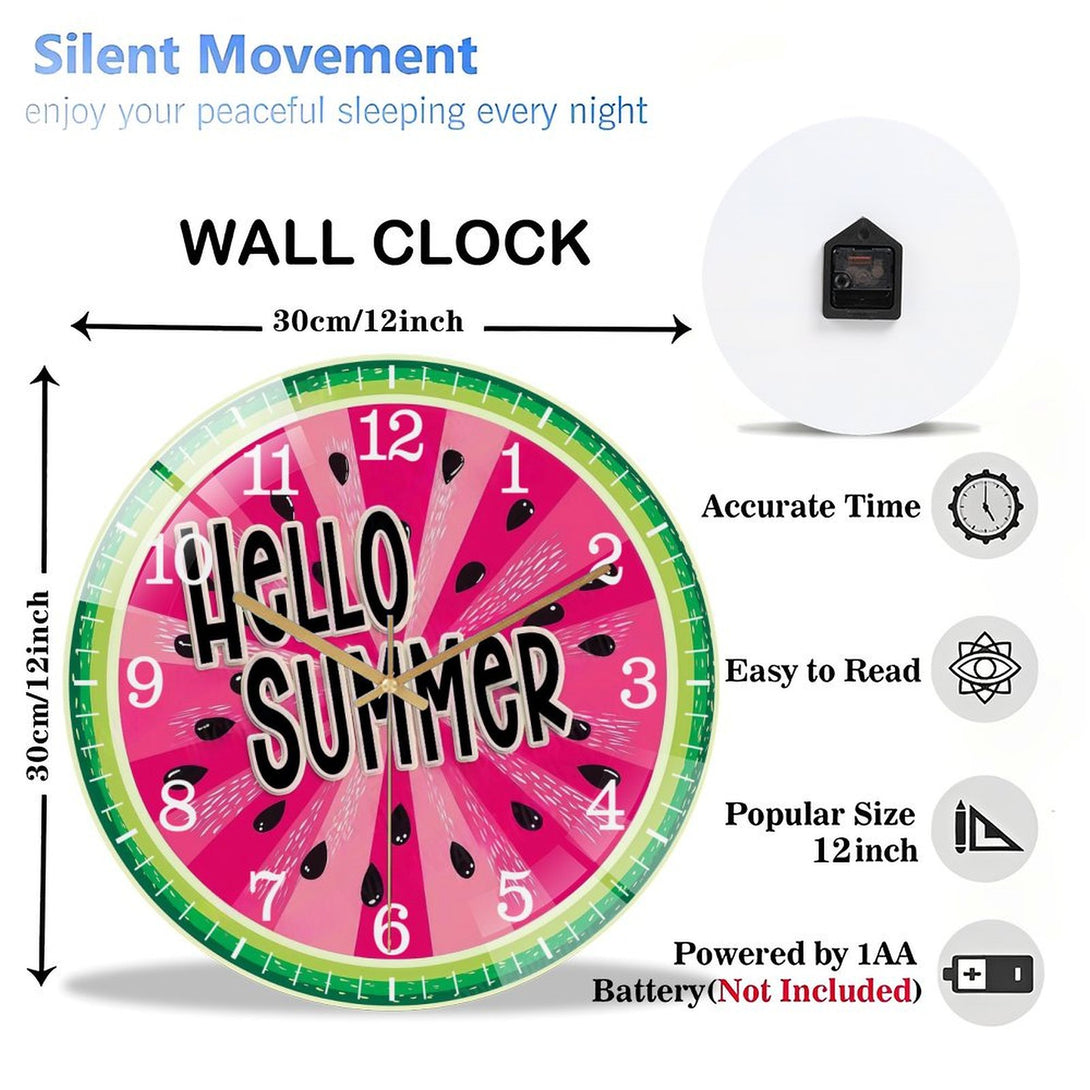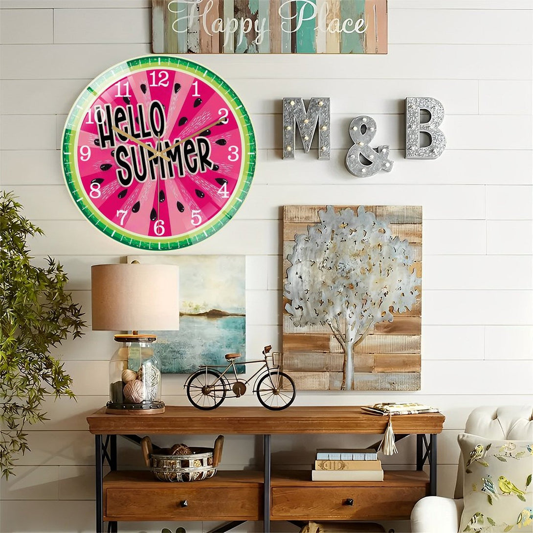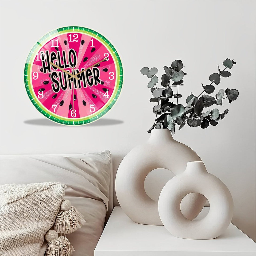 Decor Wall Clocks: Watermelon Glass Wall Clock, Hello Summer Decor Wall Clock for Homes, Bars, Offices, Man Caves, Garages, And Living Rooms .Also Makes A Great Gift. Style 12×12inch(30×30cm)